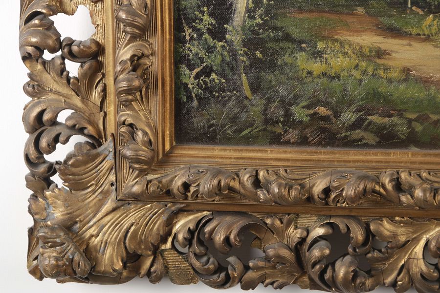 Landschaft Chateau Chillon Leman See, Schweiz Ölbild auf Leinwand 19 Jh. im durchbrochenen Holzrahmen |