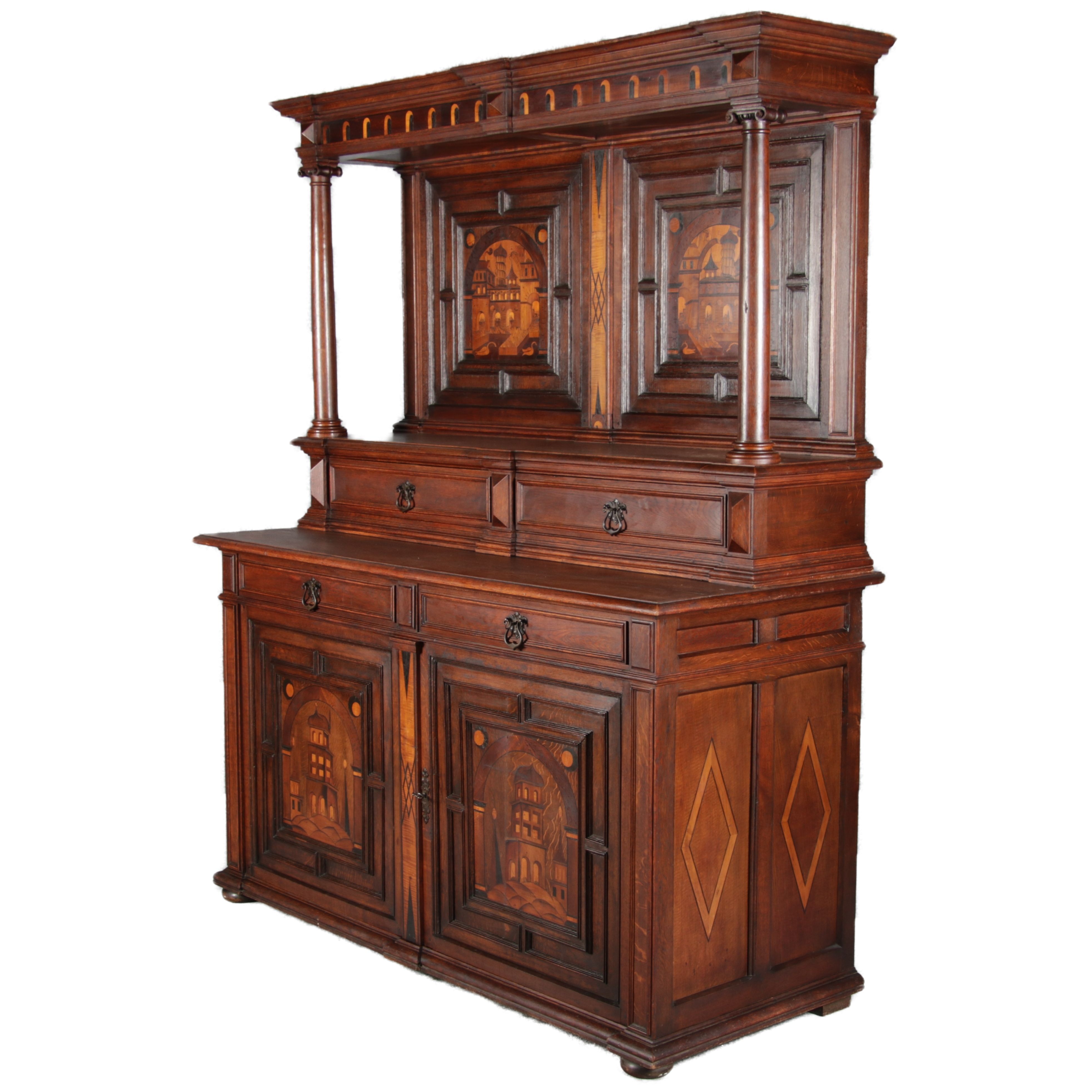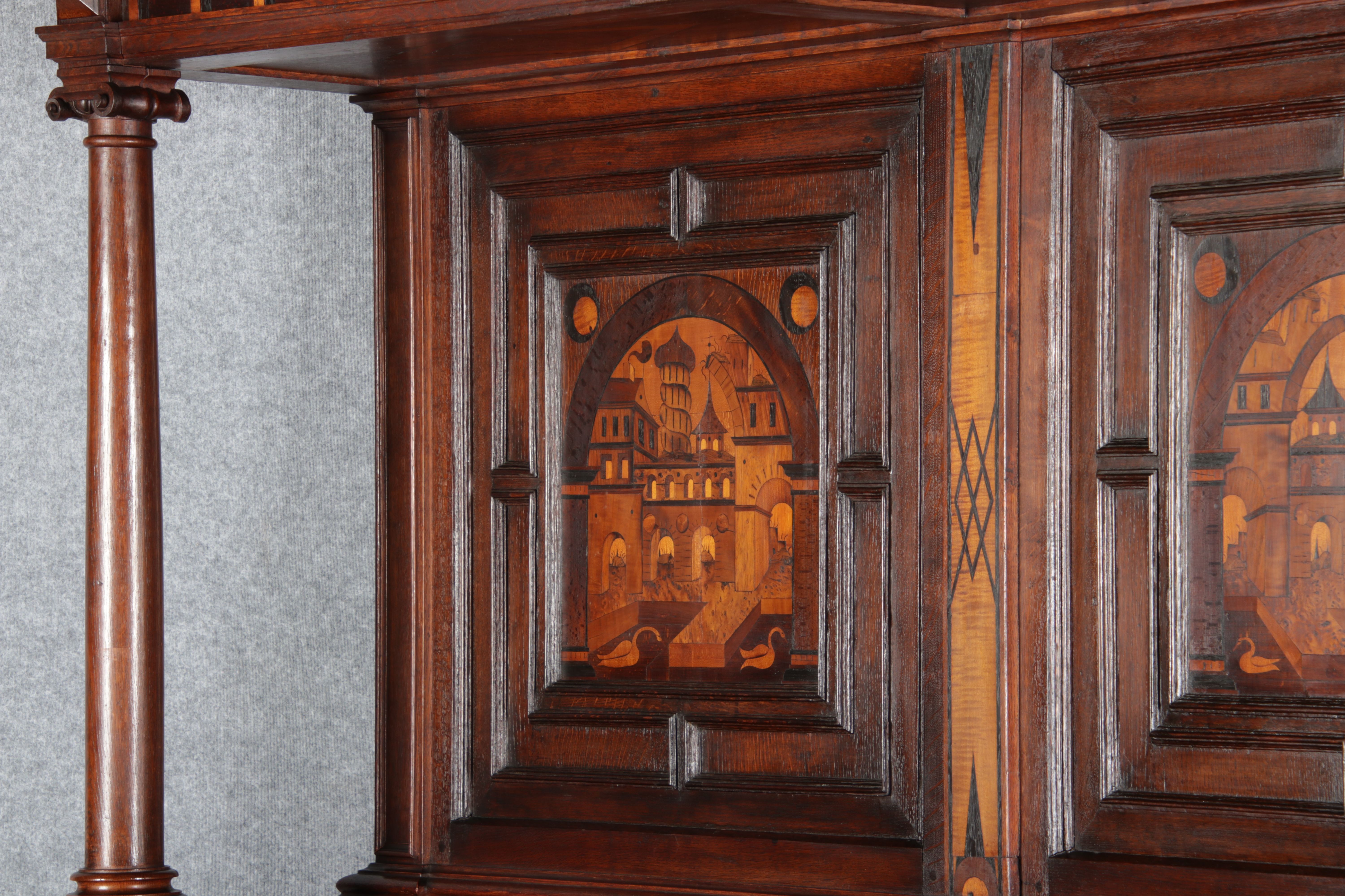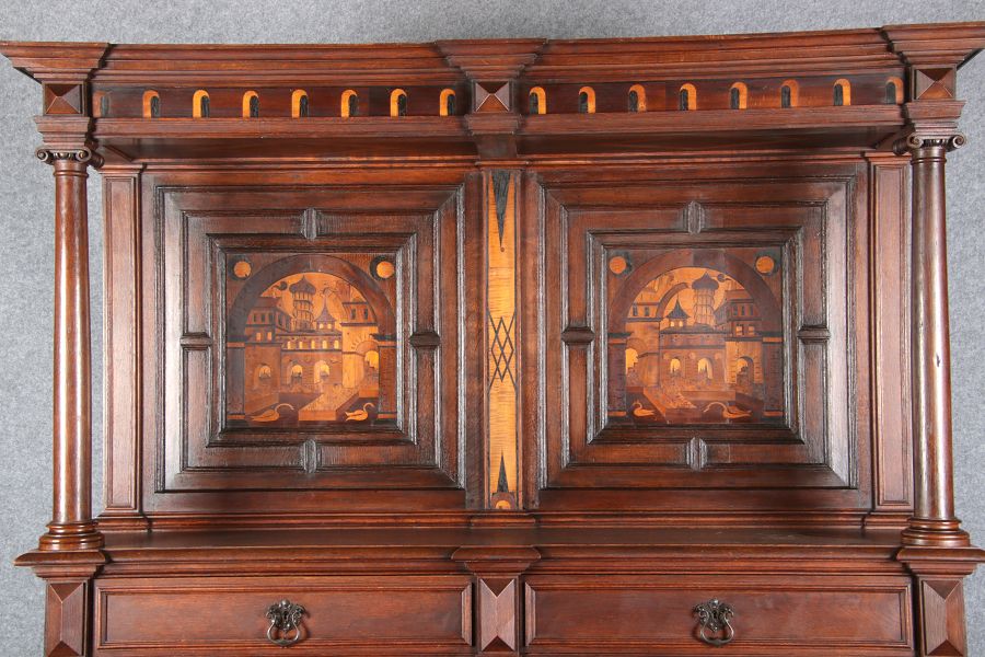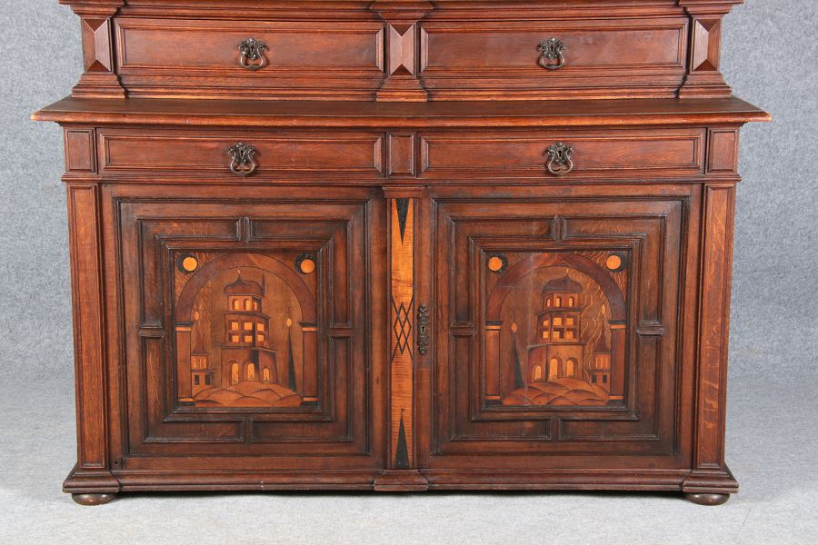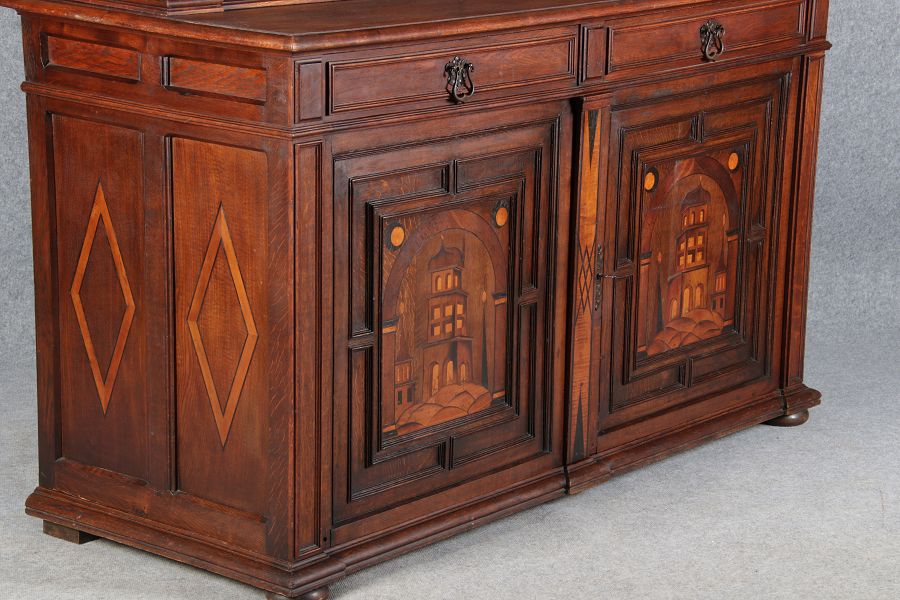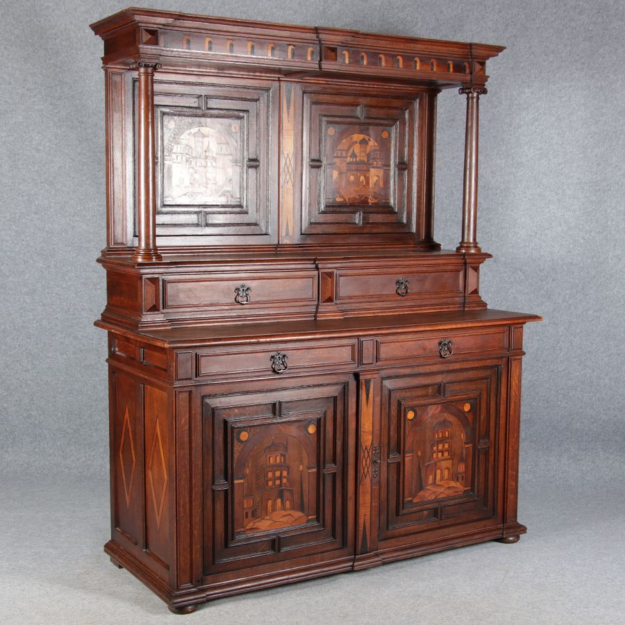 | Historismus Büffet mit Architektur Intarsien 19 Jh. | ||||||||||||||||||||||||||||||||||||||||||||||||||||||||||||||||||