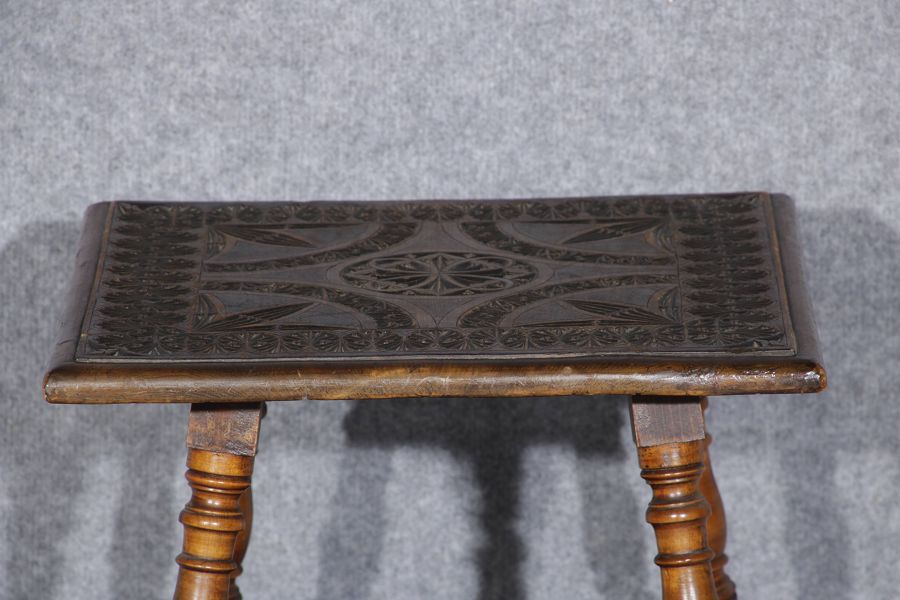 | Kleiner Blumentisch Beistelltisch um 1890 mit Kerbschnitzerei | ||||