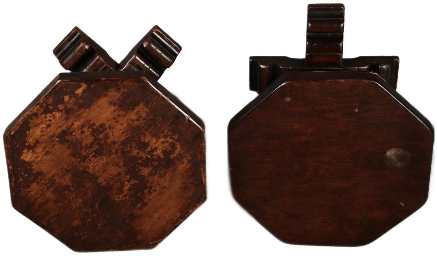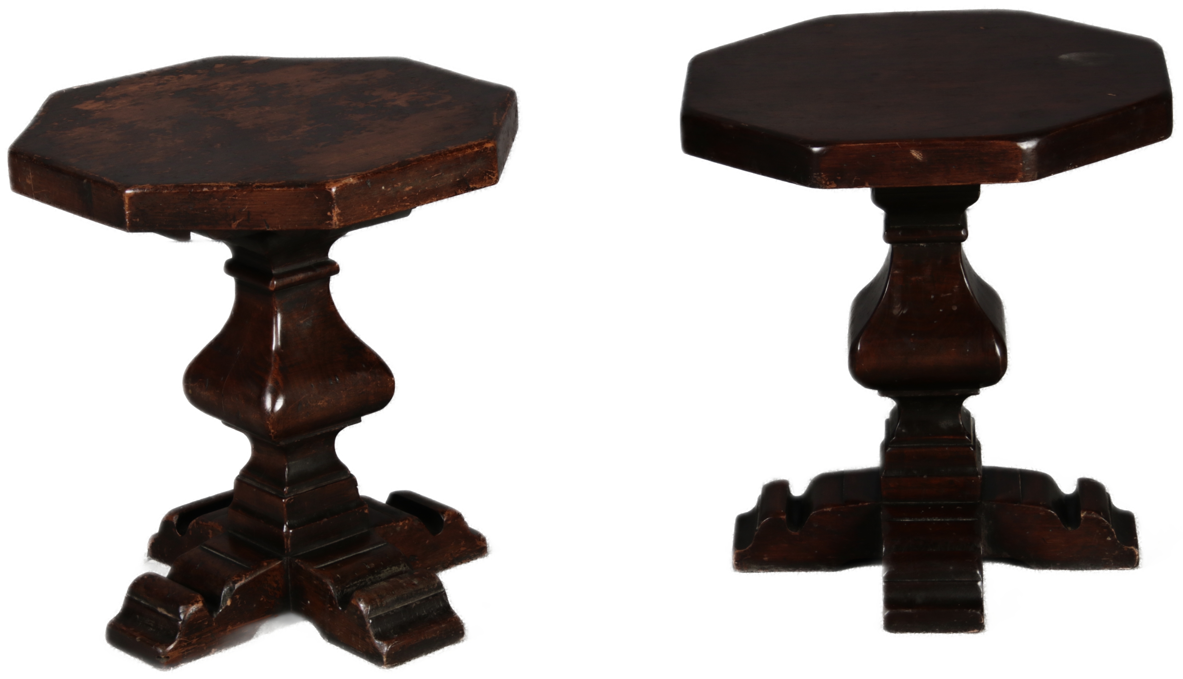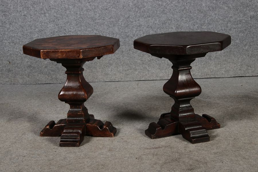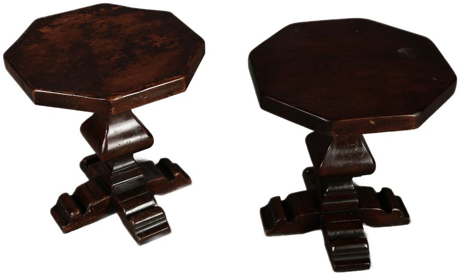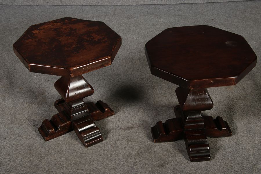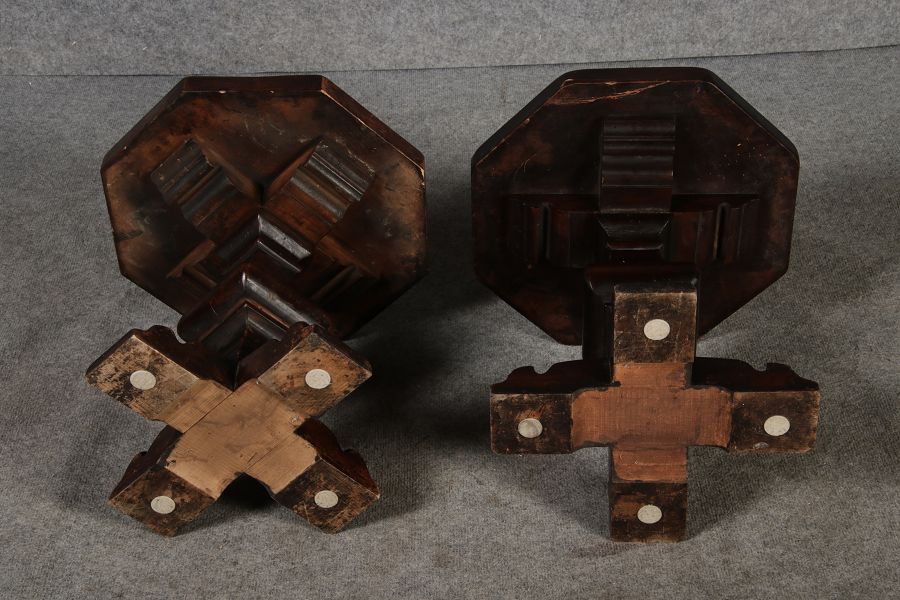 | zwei Antike Blumen Tischchen Oktogonal um 1880 Nussbaum | ||