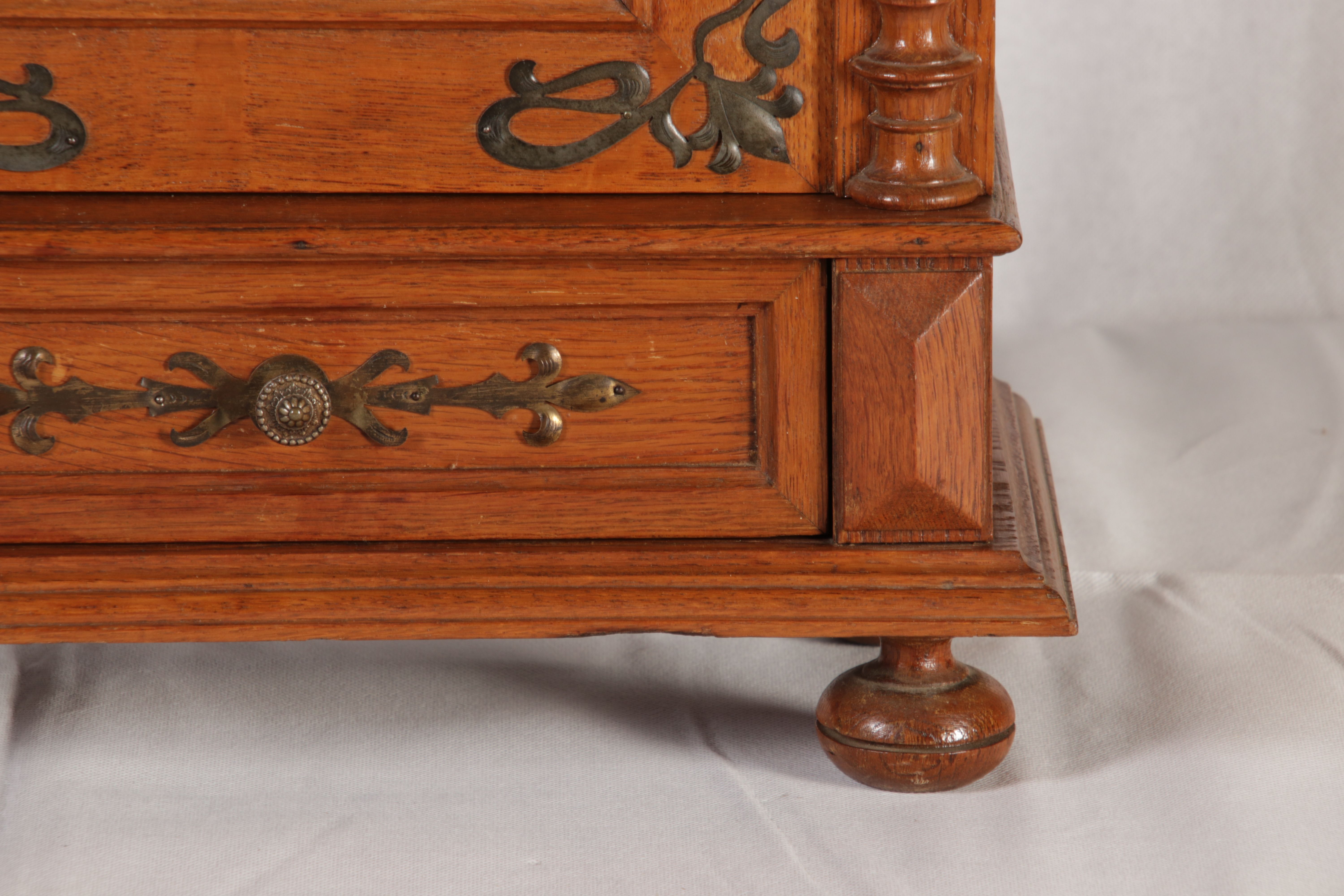Masse/dimensions: Höhe/Height ca. 65 cm, Breite /Broad ca. 40,5 cm, Tiefe /Deep ca. 21,05 cm, Material/material Das Material ist Eiche und Messing