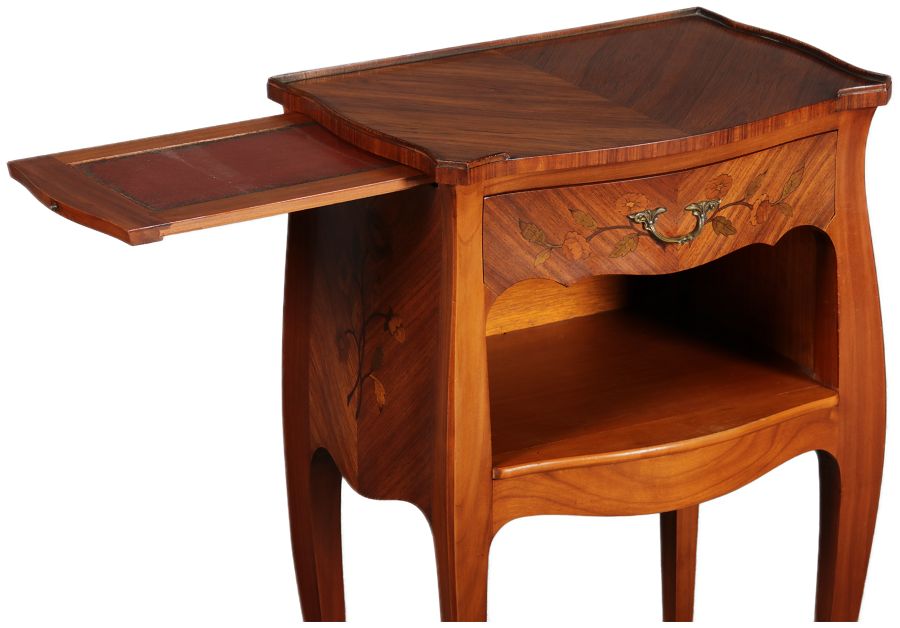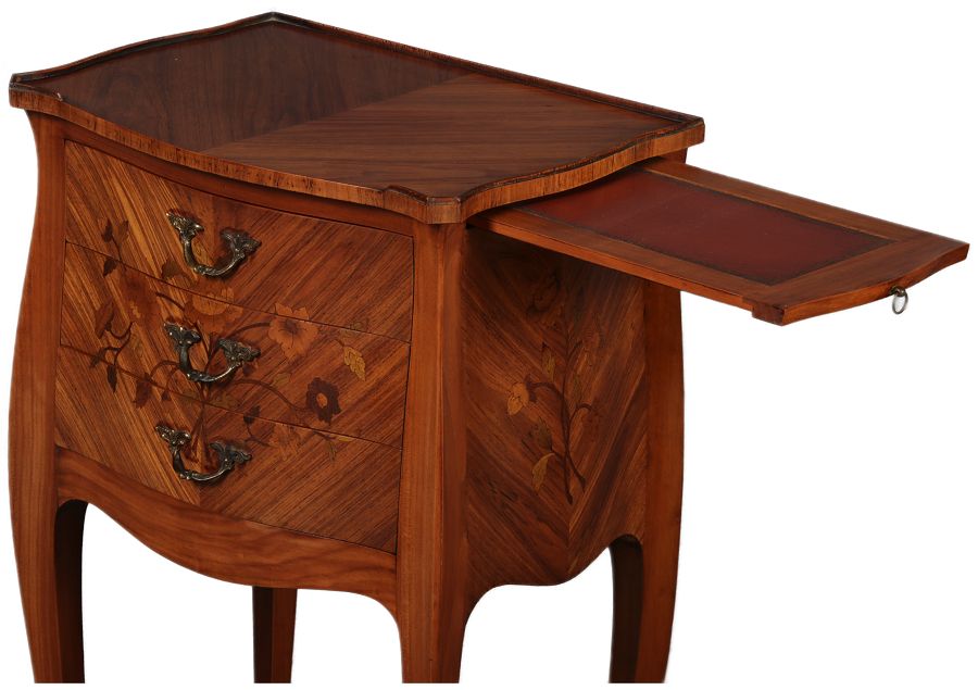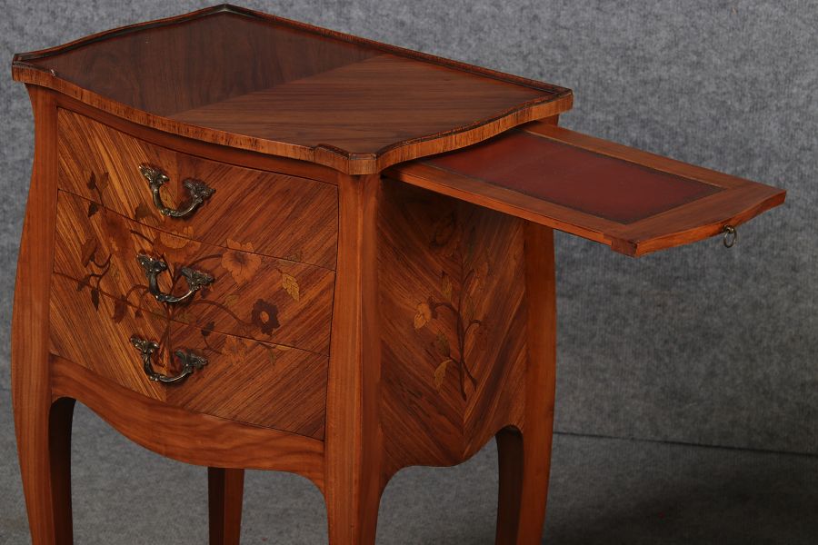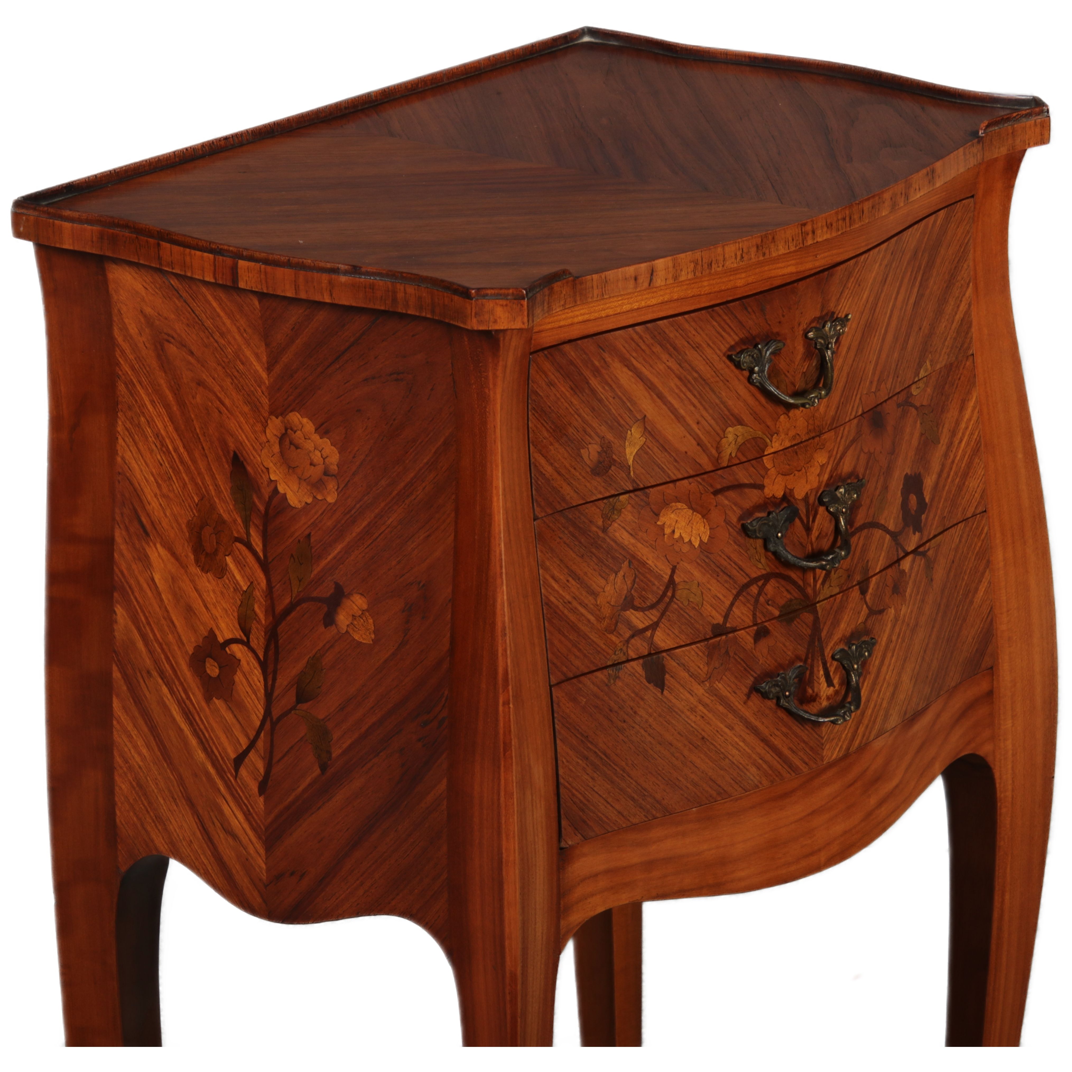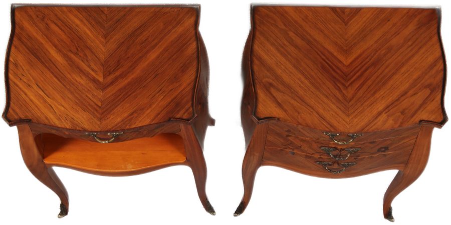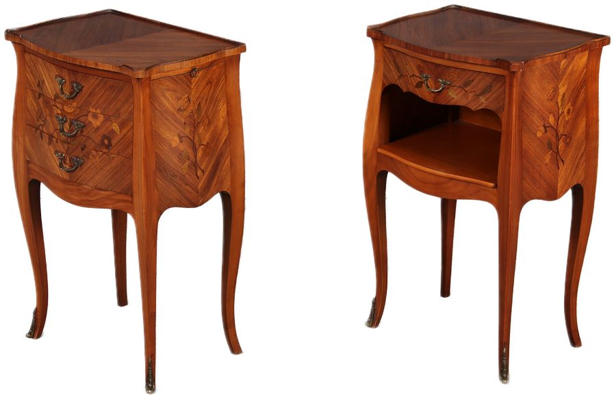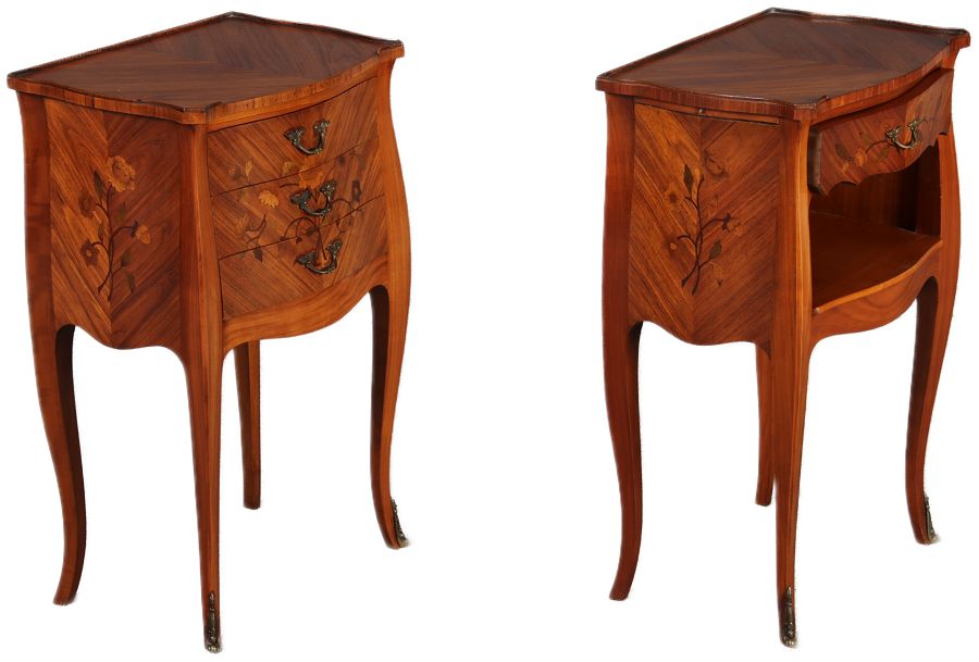 zwei Antike Nachttische mit Blumen Intarsien im Louis XV Stil |