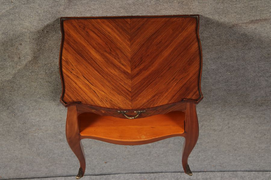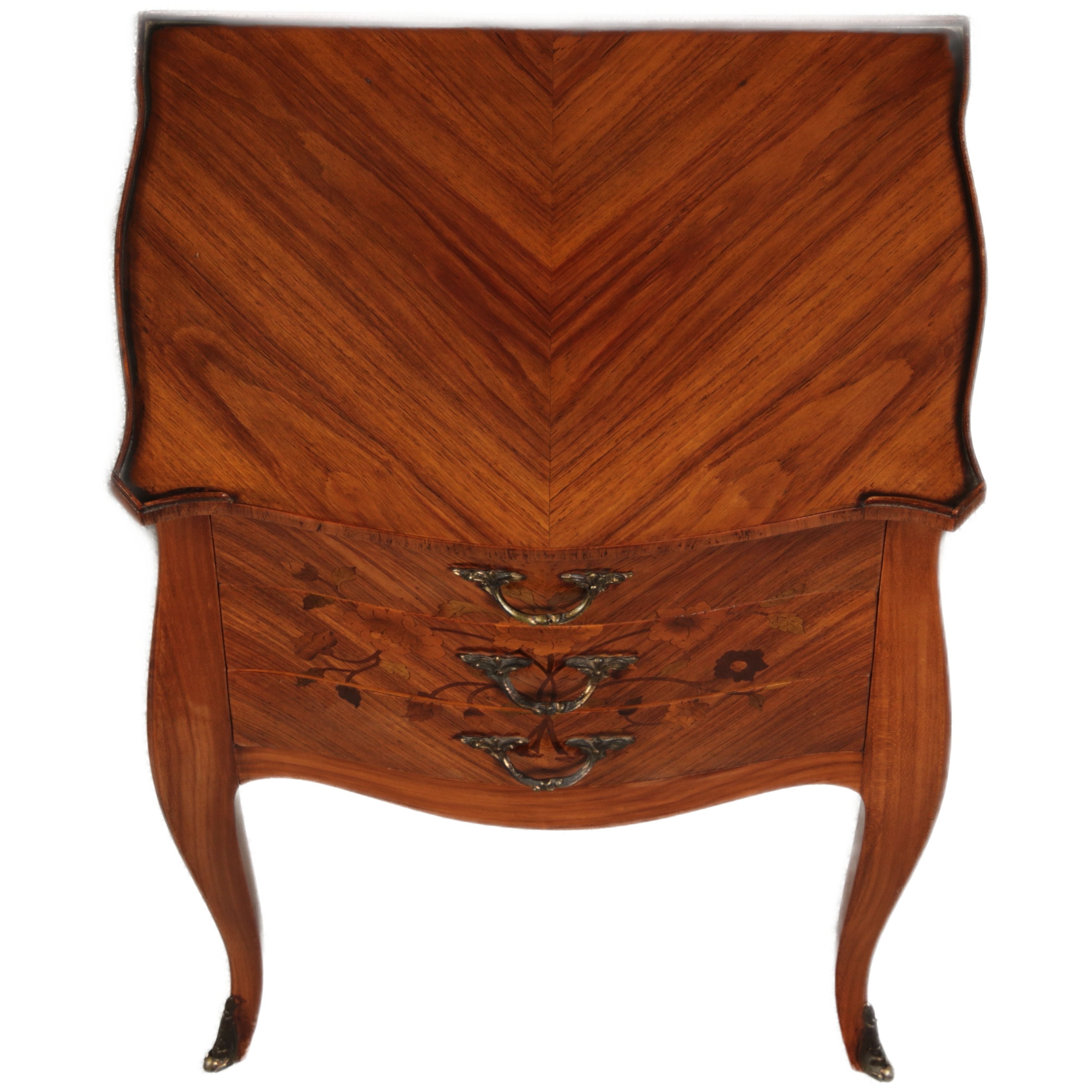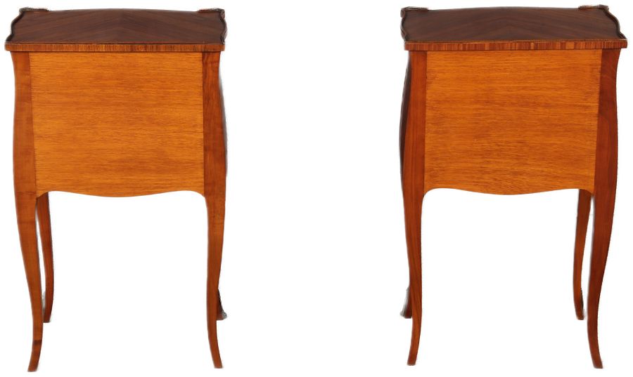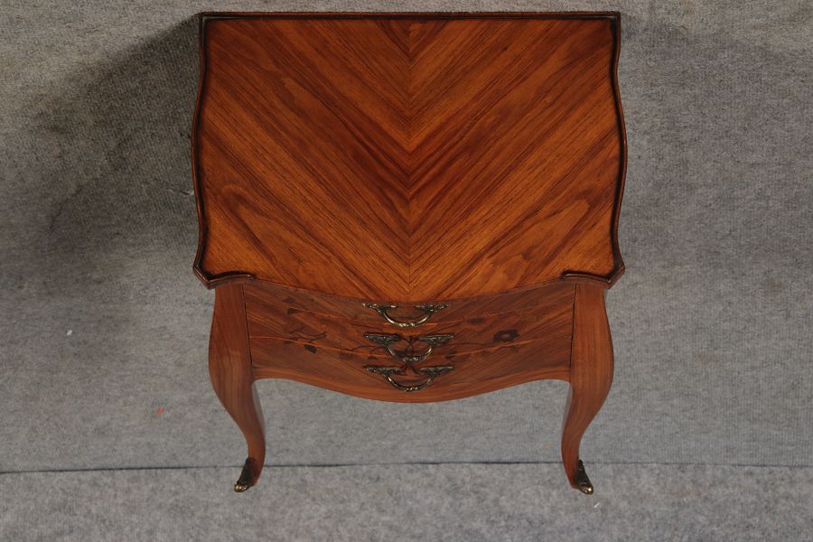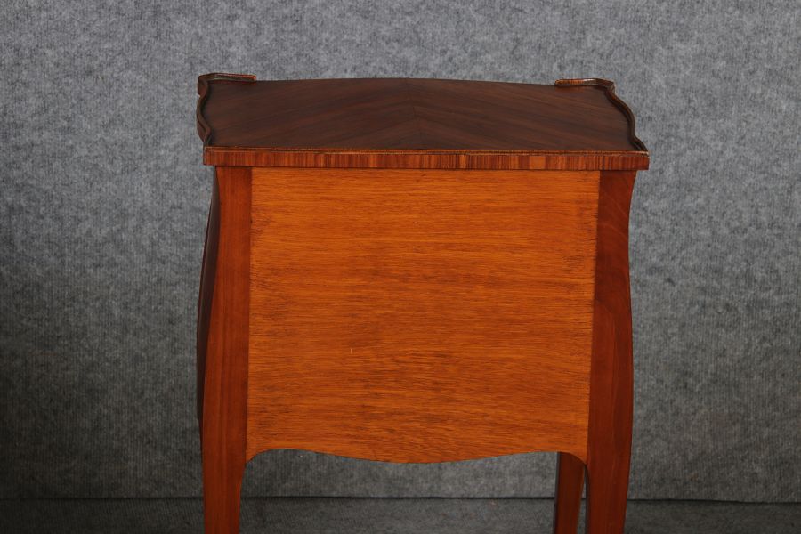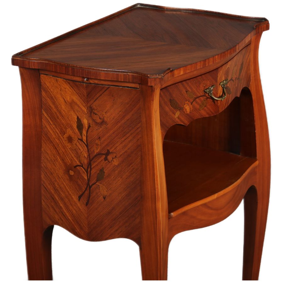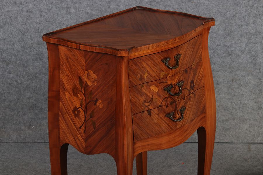 | zwei Antike Nachttische Blumen Intarsien Louis XV Stil | ||