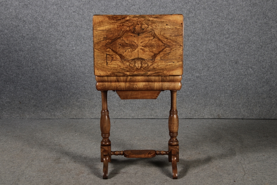 | Antiker Näh- Beistell- Tisch Biedermeier Nussbaum 19 Jh. | ||
