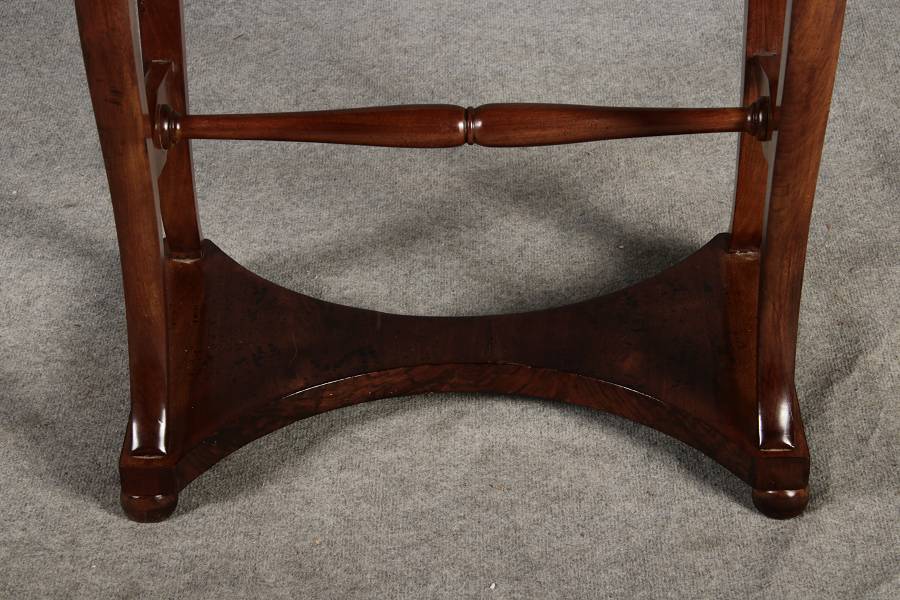 riginal Biedermeier Beistelltisch / Nähtisch aus Nussbaum – ca. 1820–1840 Dieser elegante Biedermeier-Tisch ist ein echtes Highlight für Liebhaber klassischer Möbel. Das warme, fein gemaserte Nussbaumholz und die stiltypisch geschwungenen Formen verleihen dem Stück eine hochwertige und zeitlose Ausstrahlung. Durch seine kompakte Größe eignet er sich ideal als Beistelltisch, kleiner Schreib- oder Nähtisch in Wohn- und Arbeitsbereichen. Merkmale