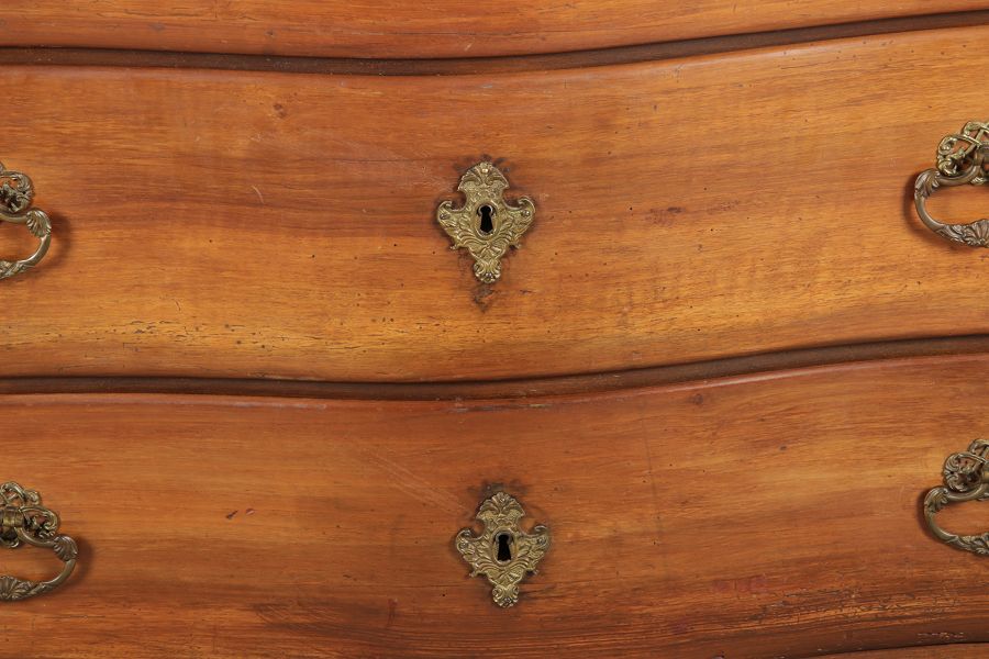 Geschweifte Barockkommode massiv Nussbaum 18 Jh. |