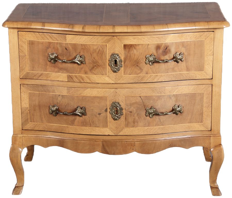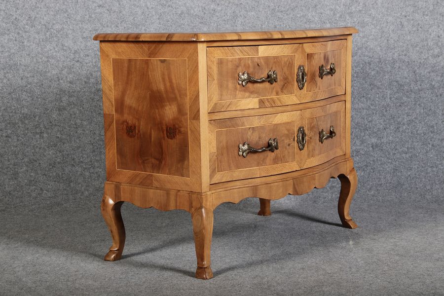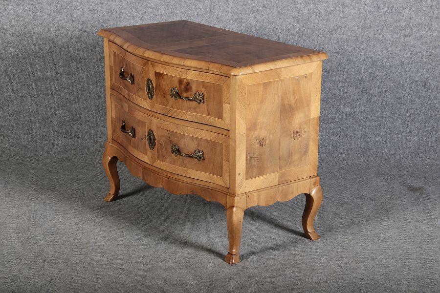 | Antike kleine Barockkommode Nussbaum um1800. |