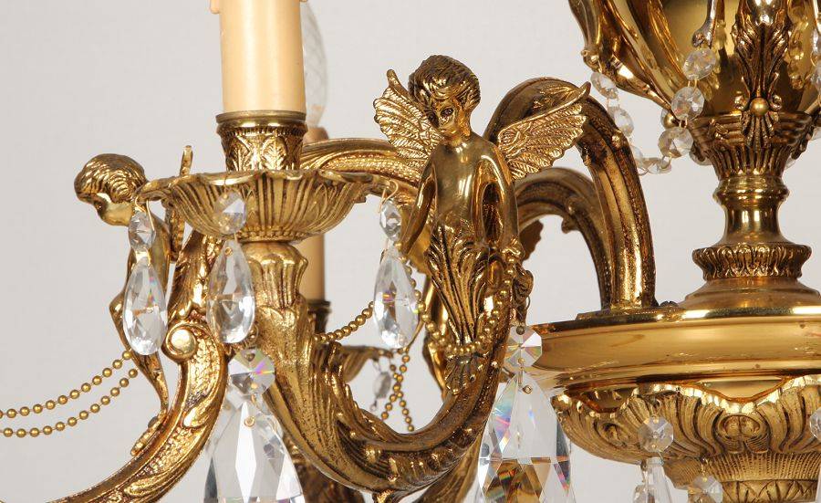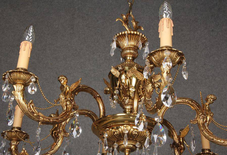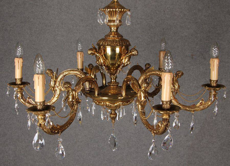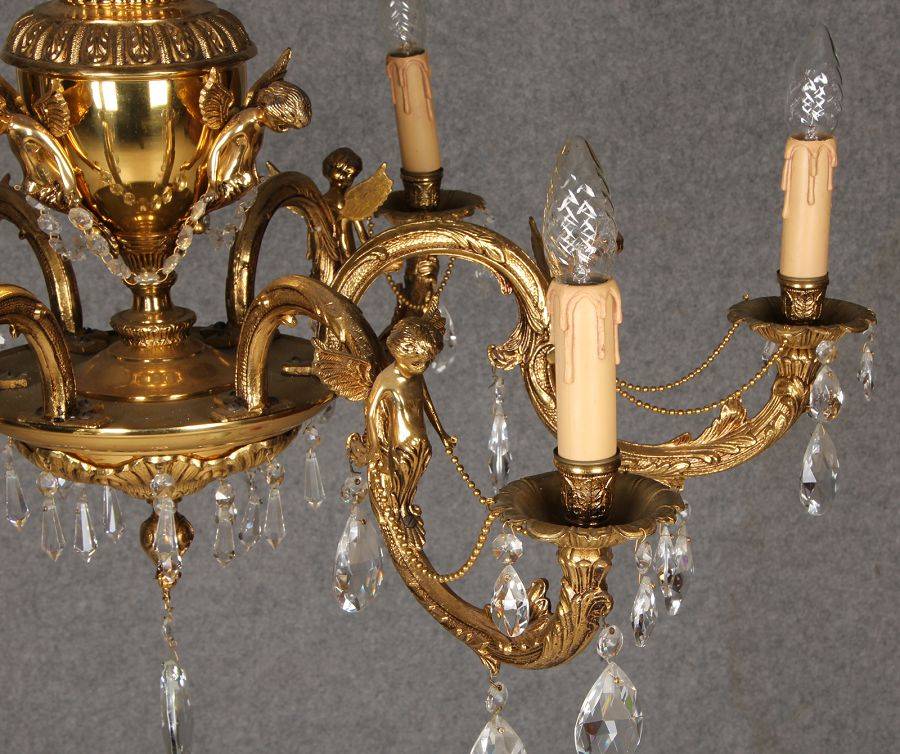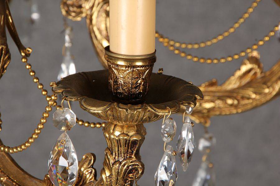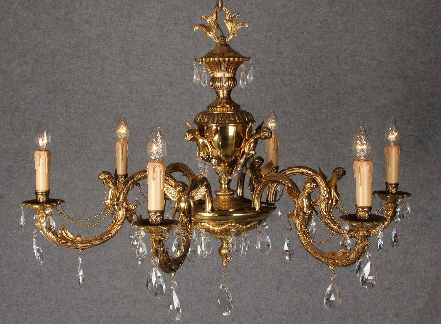 Durchmesser/diameter ca. 80 cm. Material, Brennstellen/material, Hotspots: Die Lampe wurde aus Bronze und Messing gefertigt und hat 6 Brennstellen mit E14 Fassung