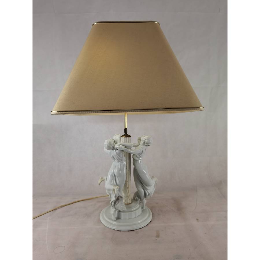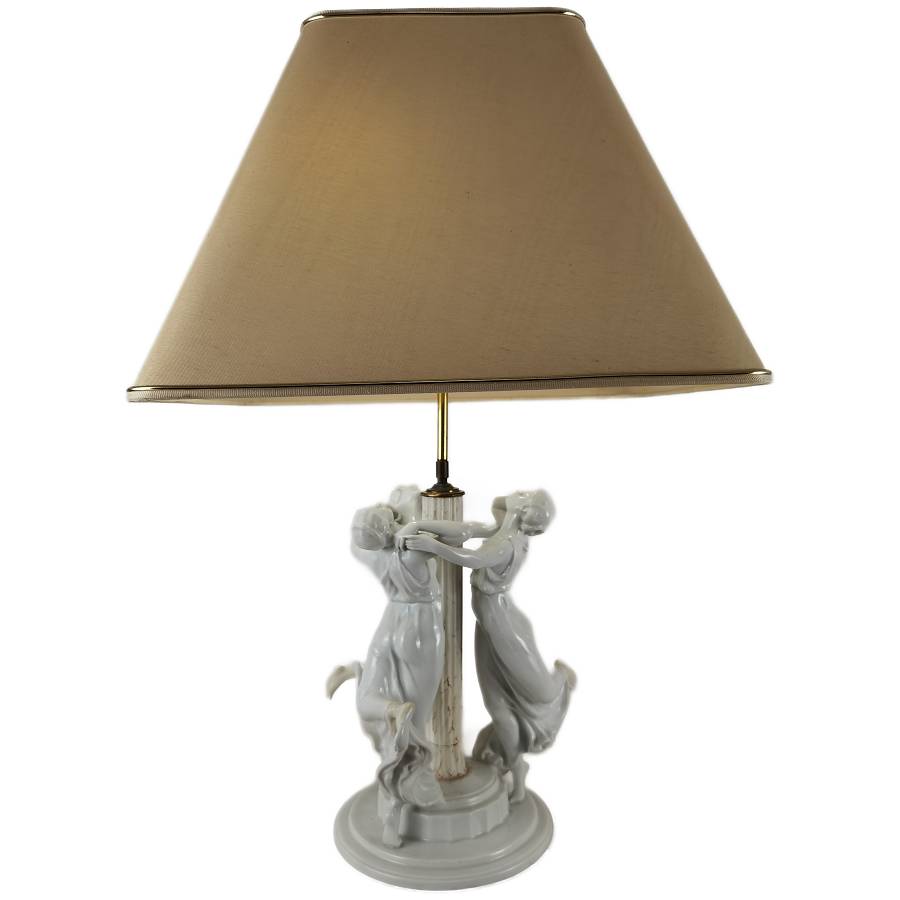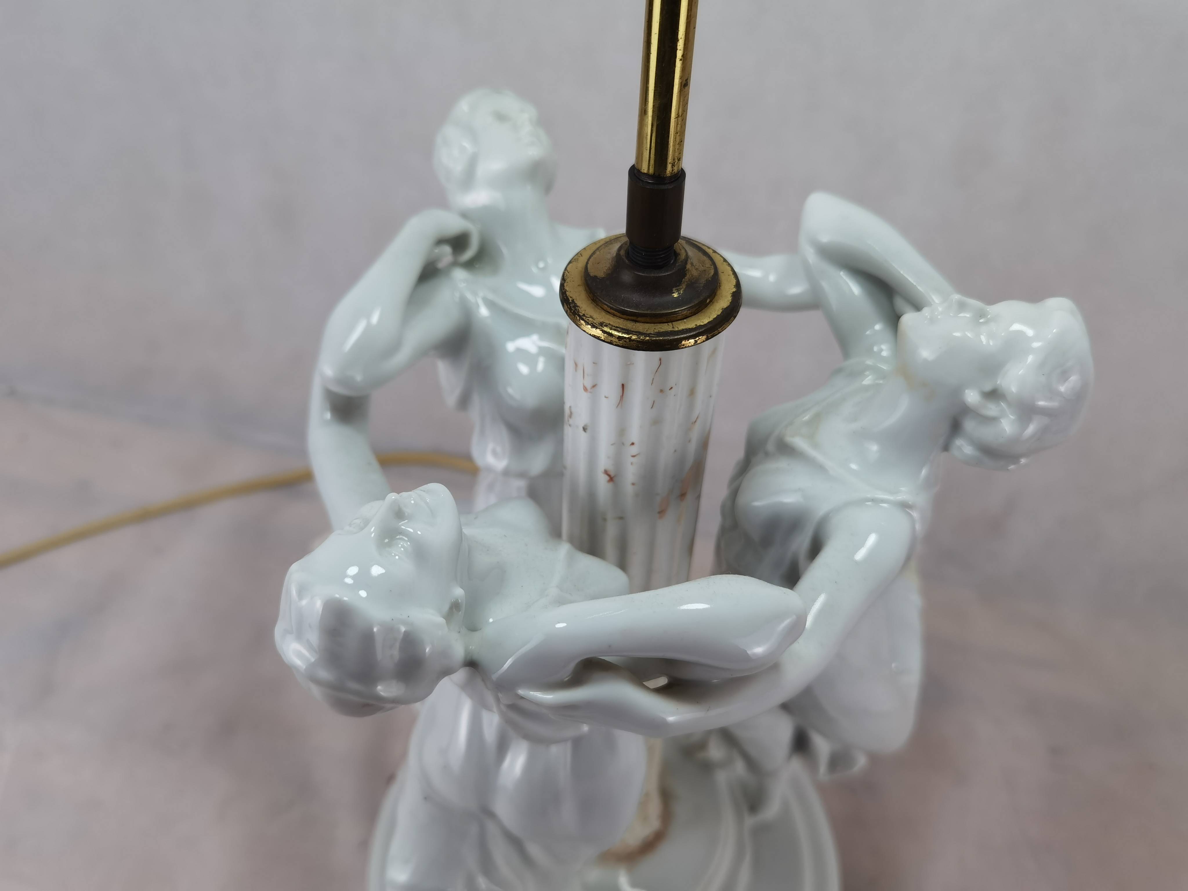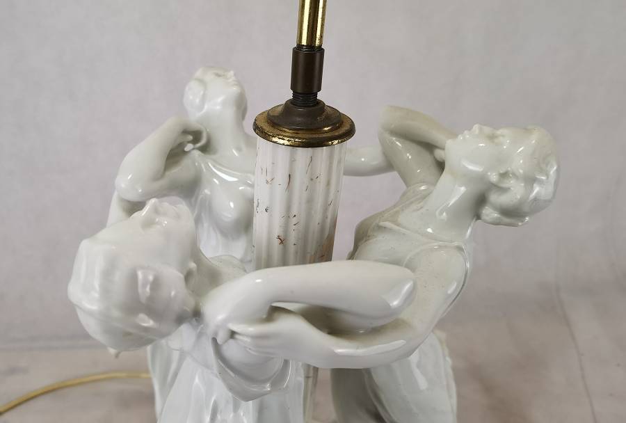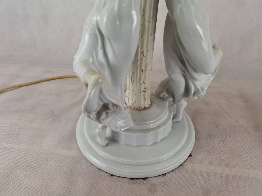 Masse/dimensions: Höhe/Height ca. 75 cm, Maximale Breite /Maximumum width ca. 45 cm Maximale Tiefe/Maximumum depth ca. 45 cm Material, Brennstellen/material, Hotspots: Die Lampe wurde aus Porzelan gefertigt und hat 2 Brennstellen mit E27 Fassung