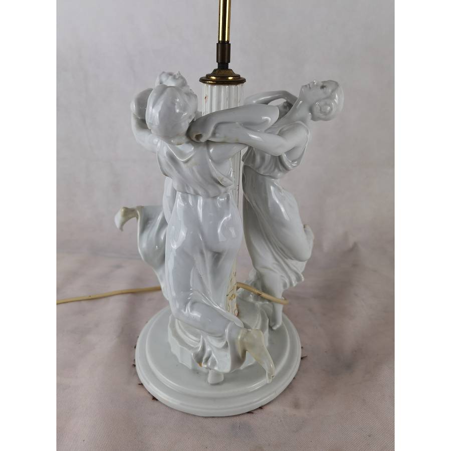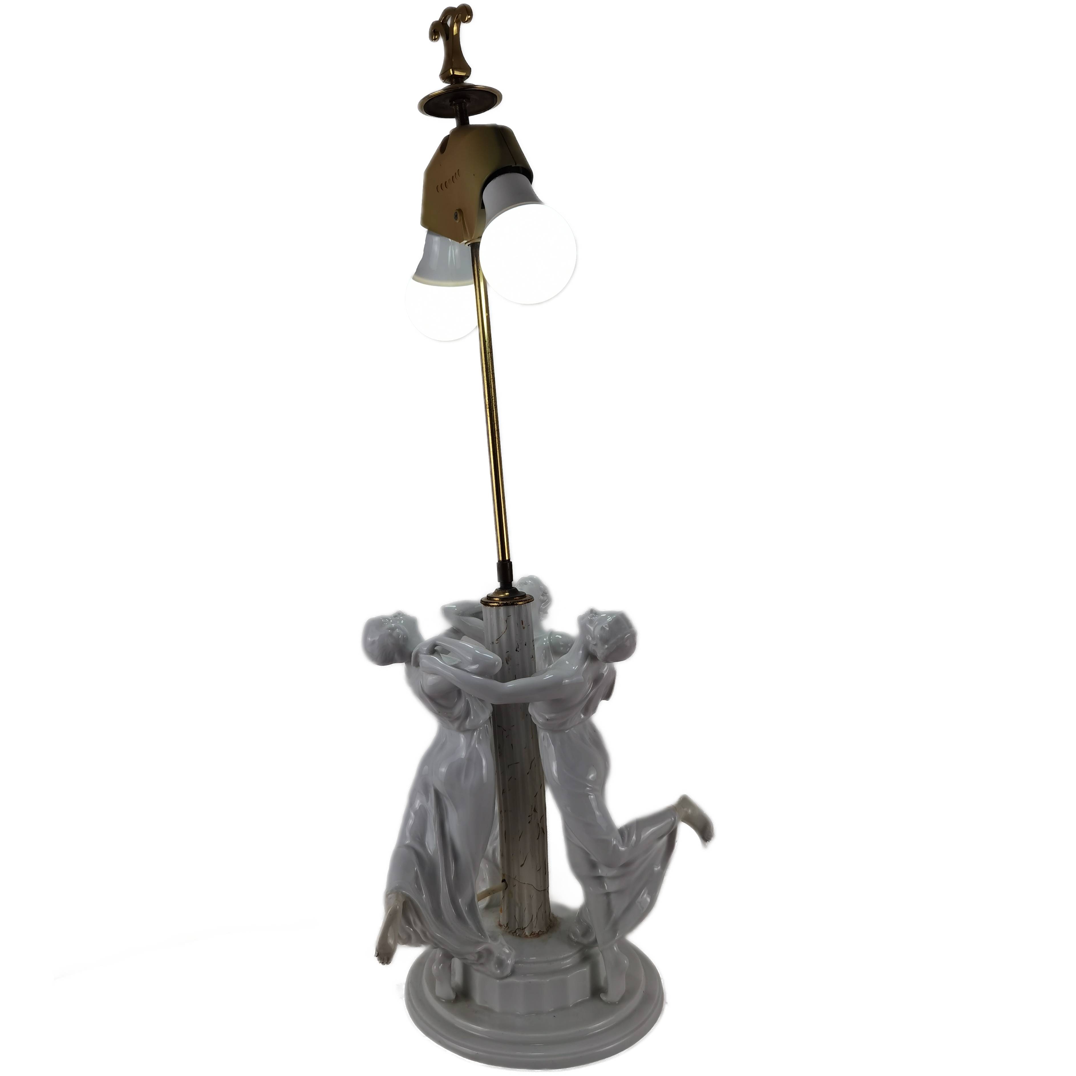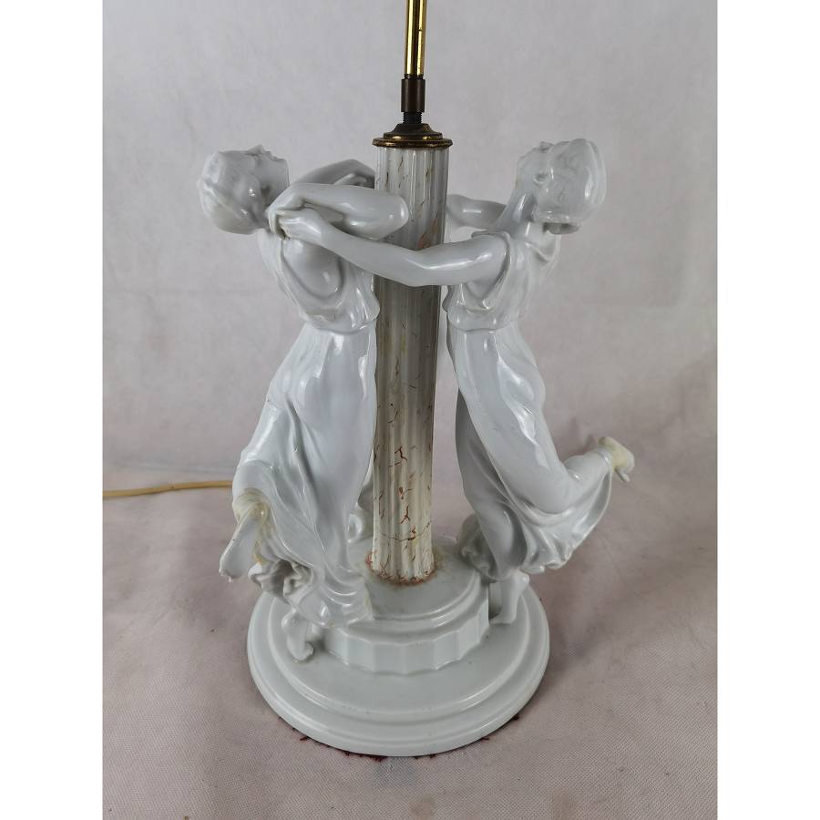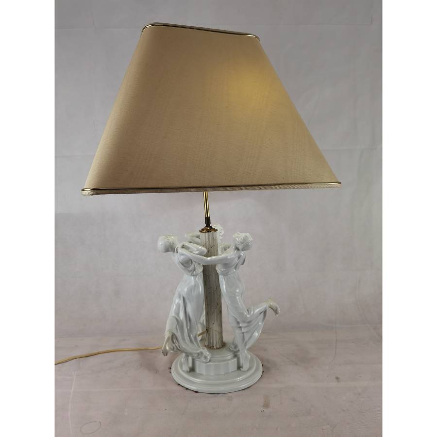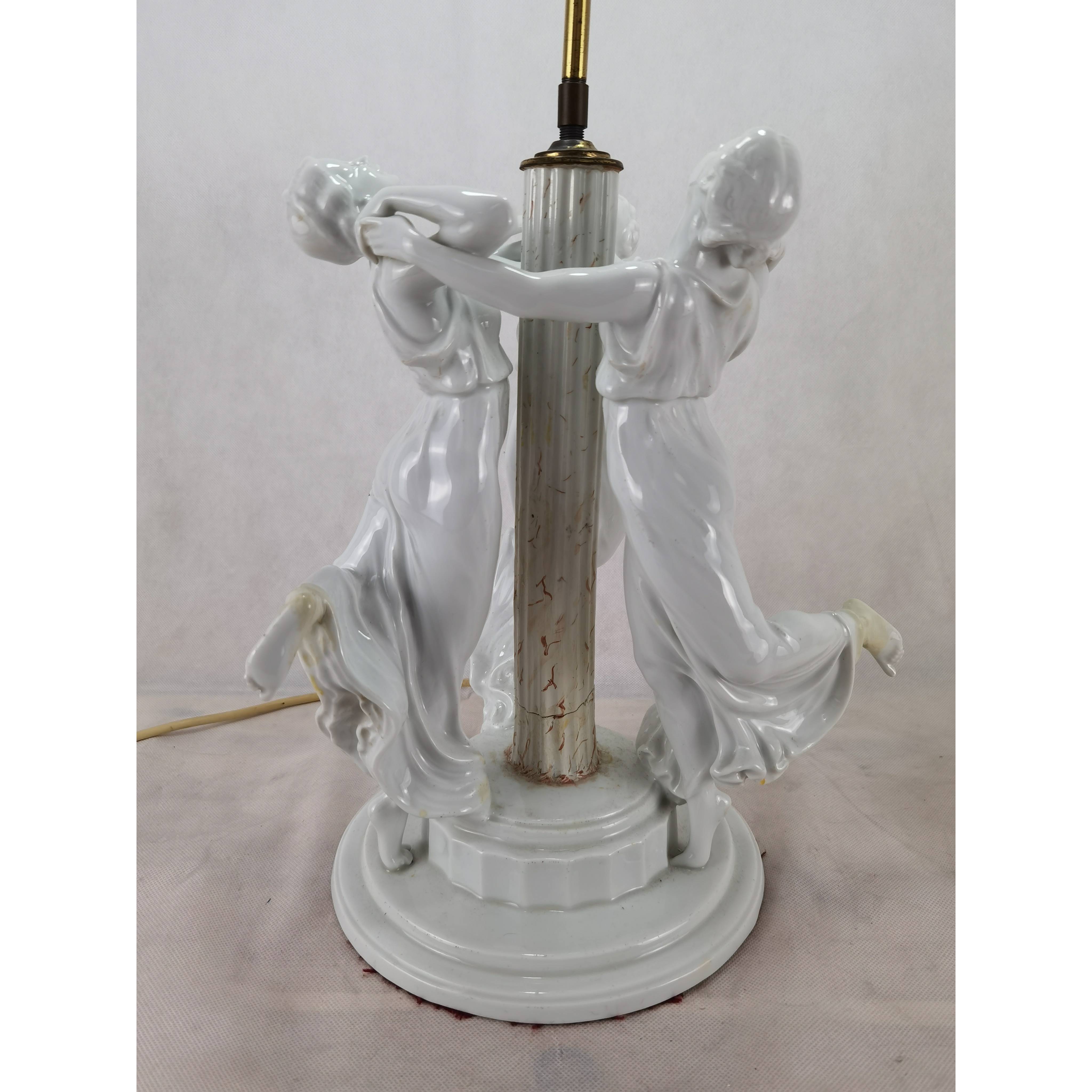Masse/dimensions: Höhe/Height ca. 75 cm, Maximale Breite /Maximumum width ca. 45 cm Maximale Tiefe/Maximumum depth ca. 45 cm Material, Brennstellen/material, Hotspots: Die Lampe wurde aus Porzelan gefertigt und hat 2 Brennstellen mit E27 Fassung
