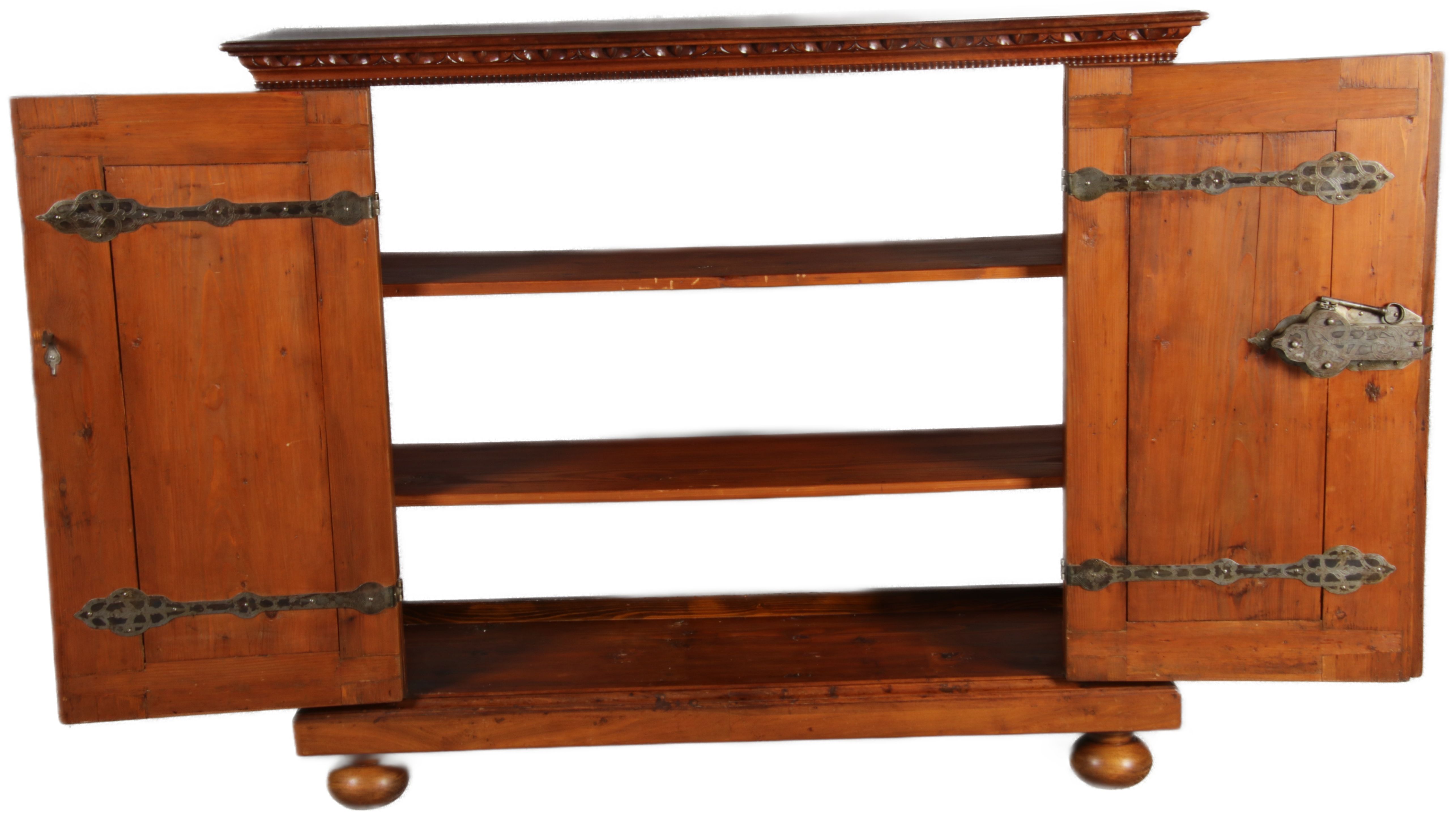 Masse/dimensions: Höhe/Height ca. 132 cm, Breite Korpus/Broad Boda ca. 146 cm, Breite Gesims/Broad cornice ca. 156,5 cm, Tiefe Korpus/Deep body ca. 43 cm, Tiefe Gesims/Deep cornice ca. 48 cm,