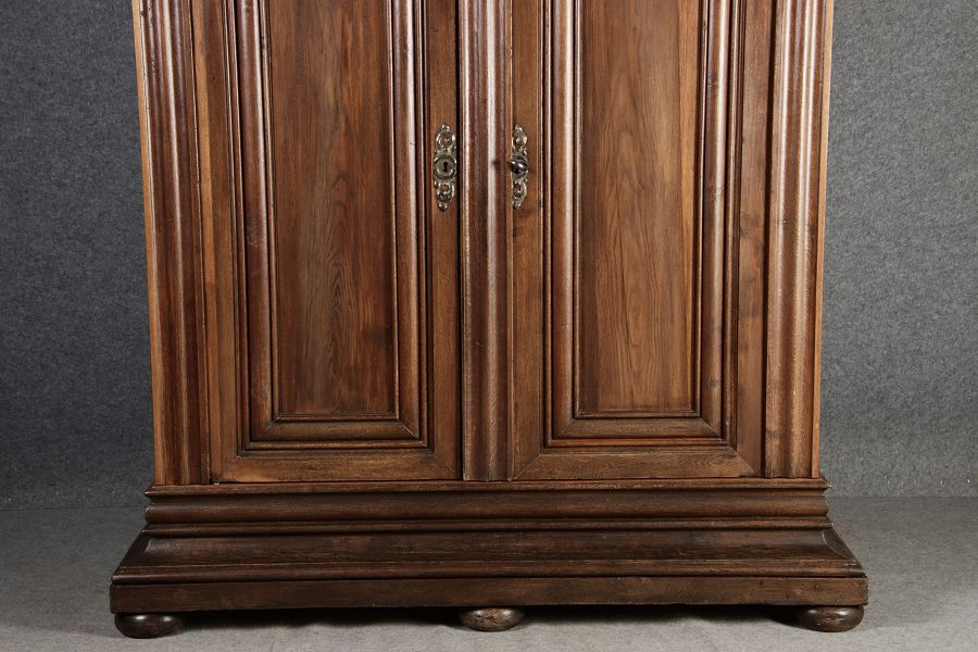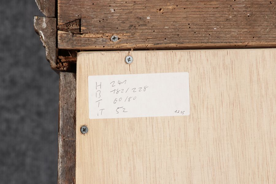 Masse/dimensions: Höhe/Height ca. 242 cm, Breite Korpus/Broad Boda ca. 182 cm, Breite Gesims/Broad cornice ca. 228 cm, Tiefe Korpus/Deep body ca. 60 cm, Tiefe Gesims/Deep cornice ca. 80 cm,