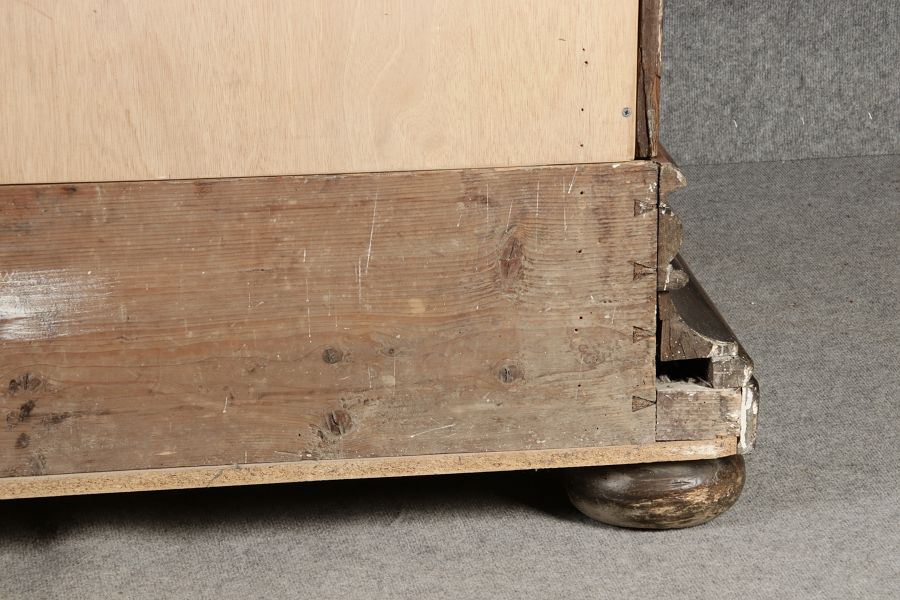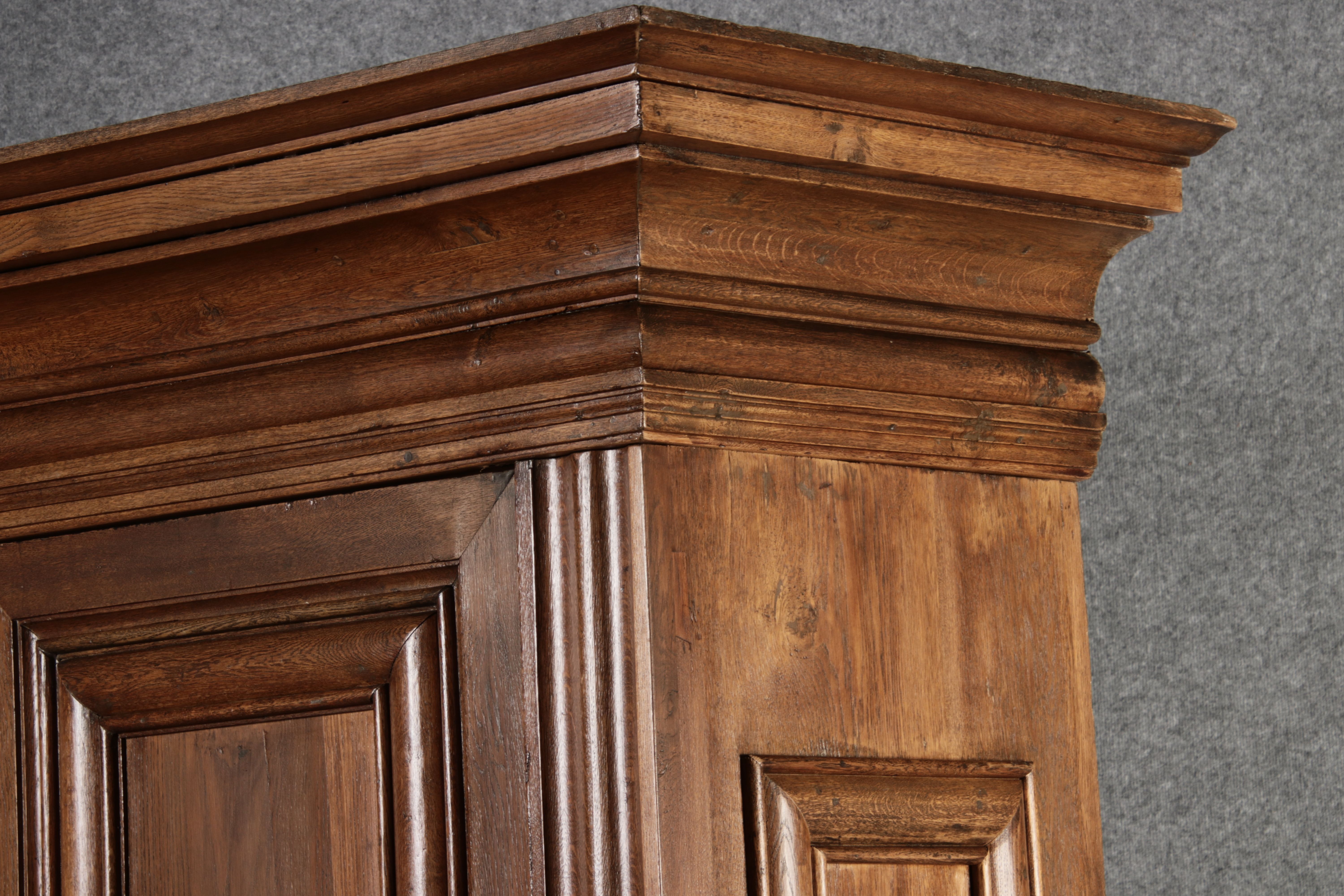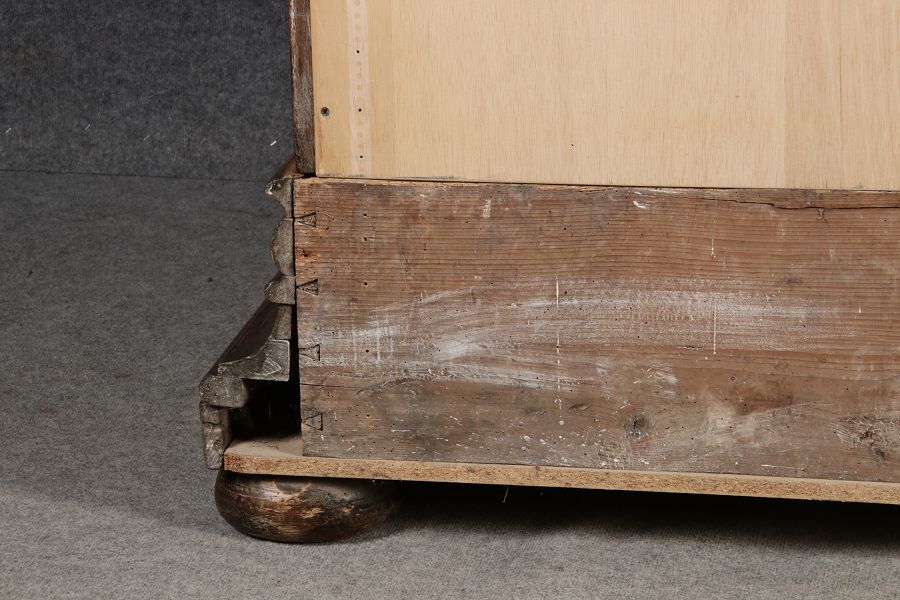 Antiker sehr hoher Frankfurter Barock Wellenschrank Eiche massiv aus dem 18 Jh. Der Schrank stand im Fränkischen Kloster Maria Hilf und wurde dort als Garderobenschrank genutzt. Der Schrank wurde innen von einem Schreiner mit neuen Sperrholz Platten ausgeschlagen, damit er innen ein sauberes Erscheinungsbild hat. Durch seine Höhe von 241 cm hat er ein Dominates Erscheinungsbild und ist in jedem Raum ein besonderes Stück. |
