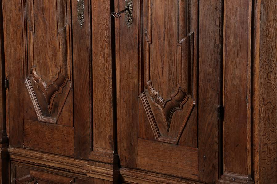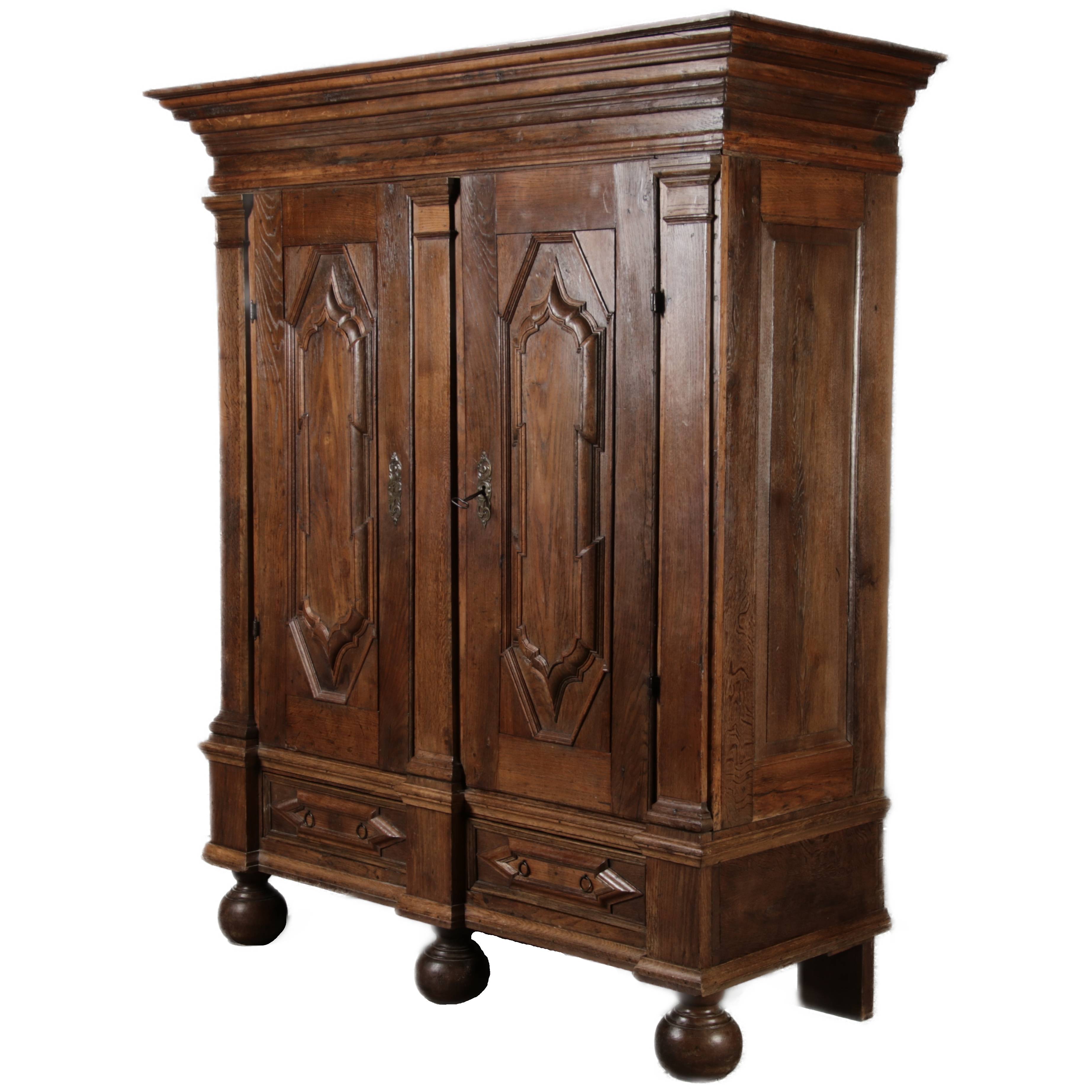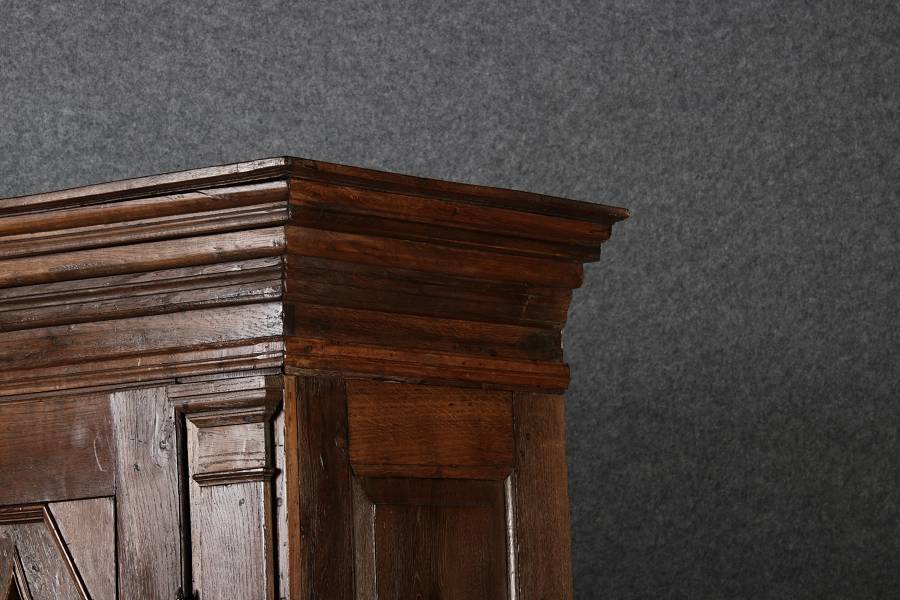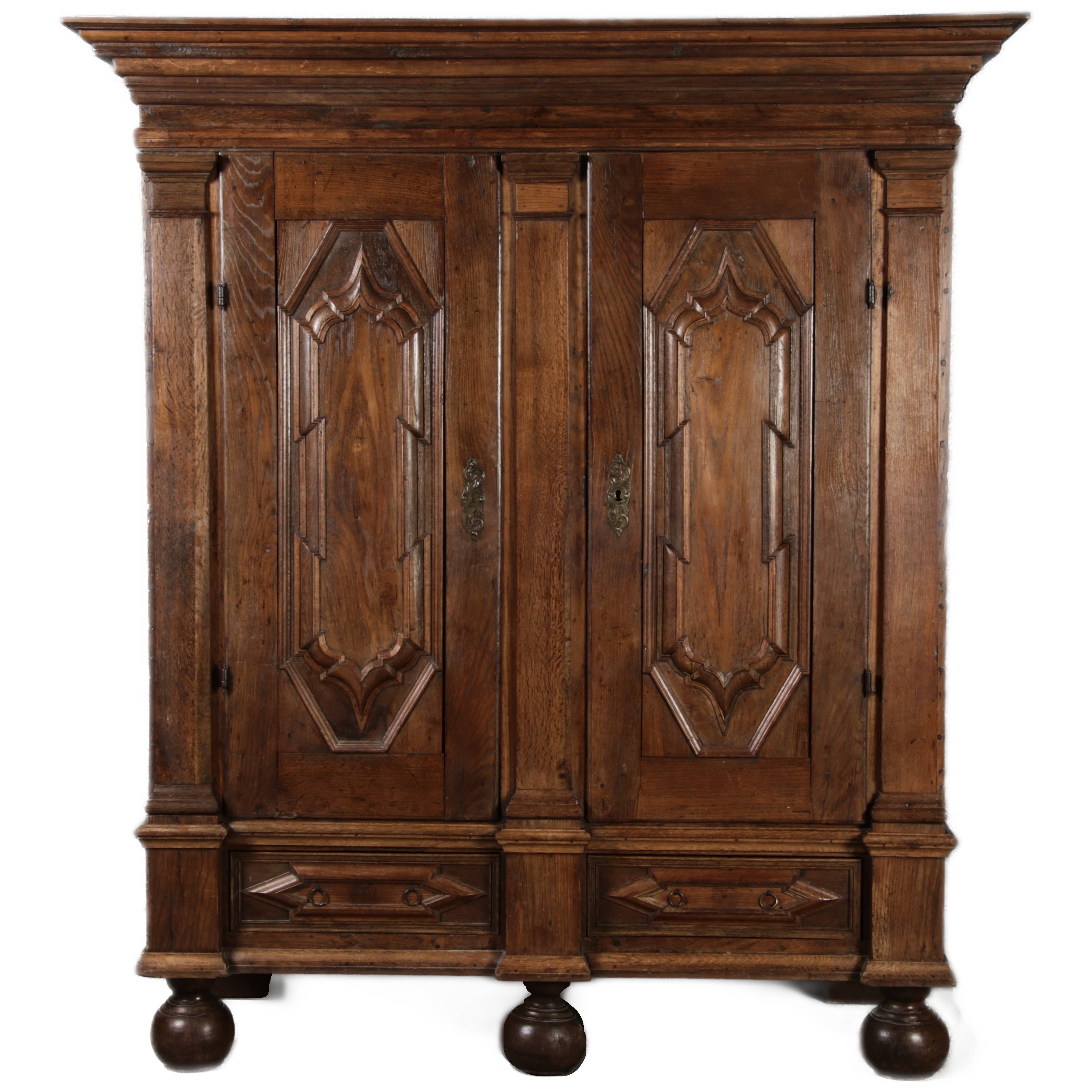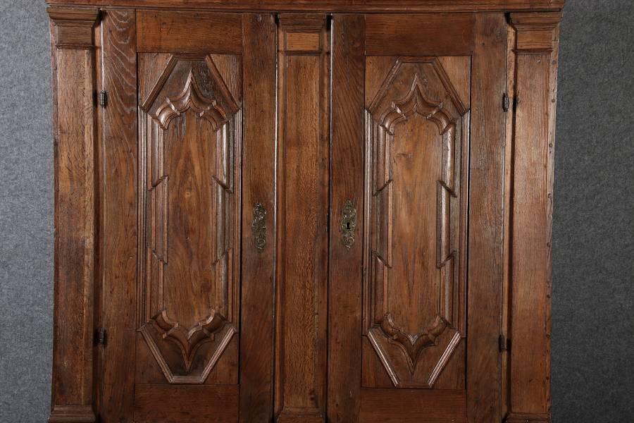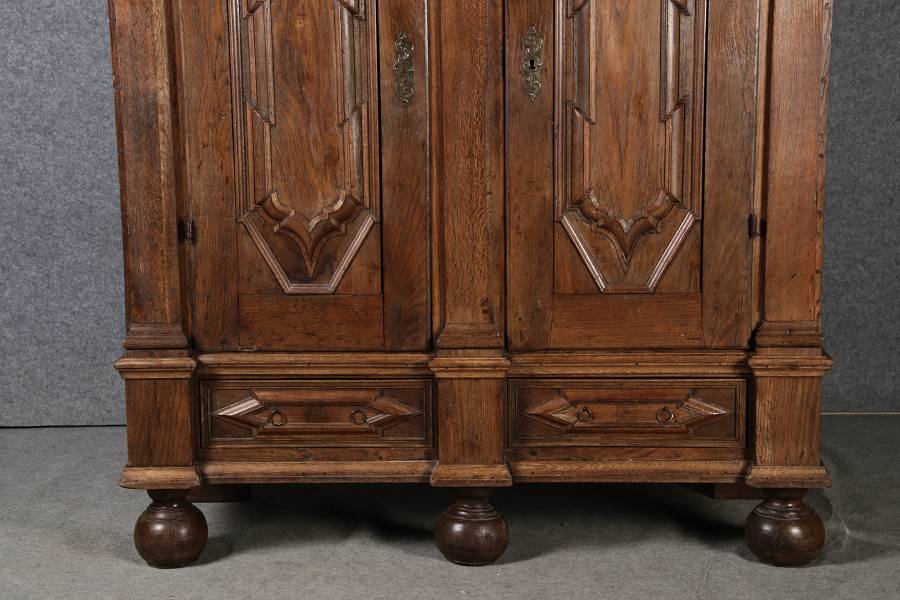 Antiker Barockschrank Ostfriesland mit Bastionsfüllungen erste Hälfte 18 Jh. um 1730, Eiche Massiv. |