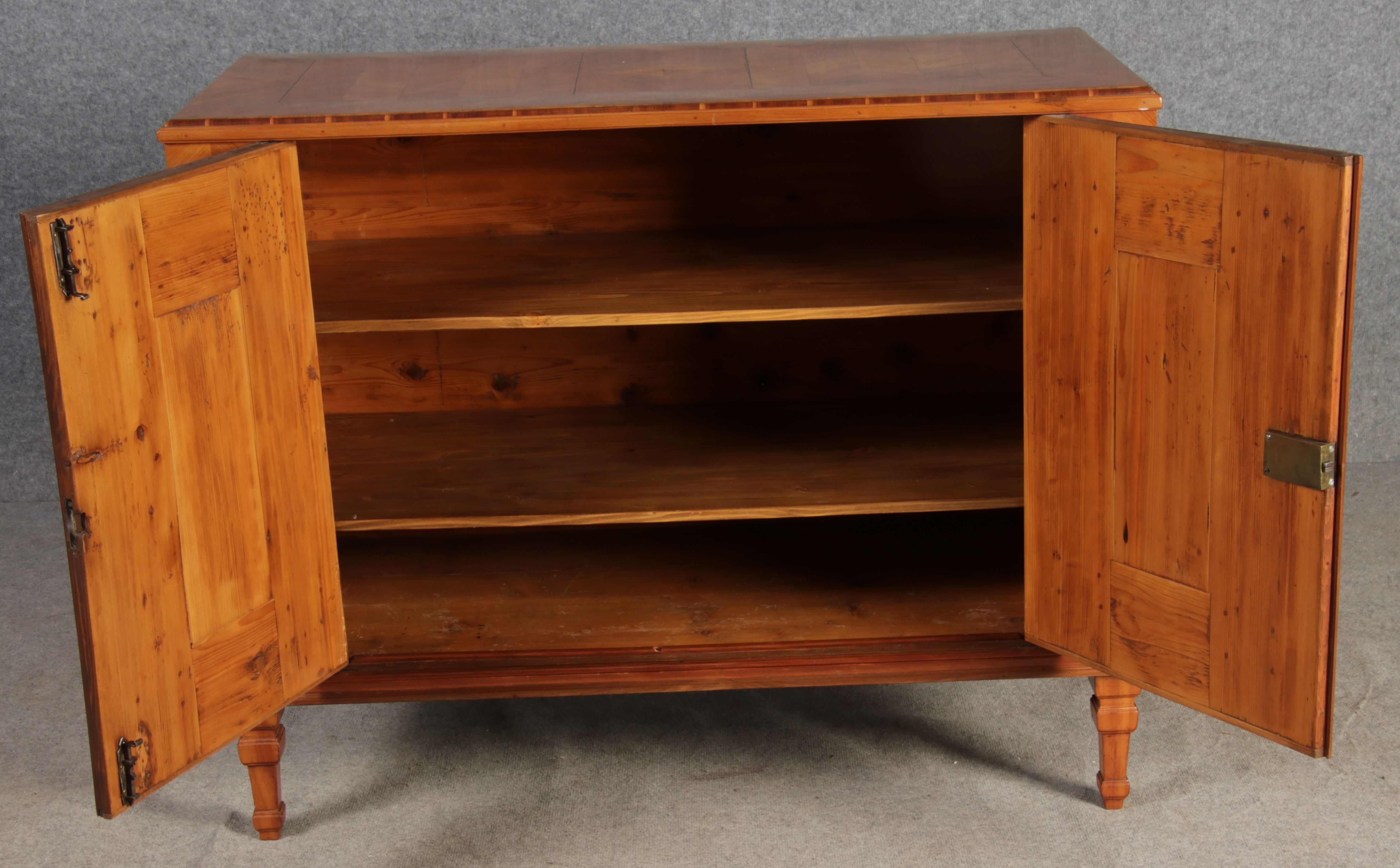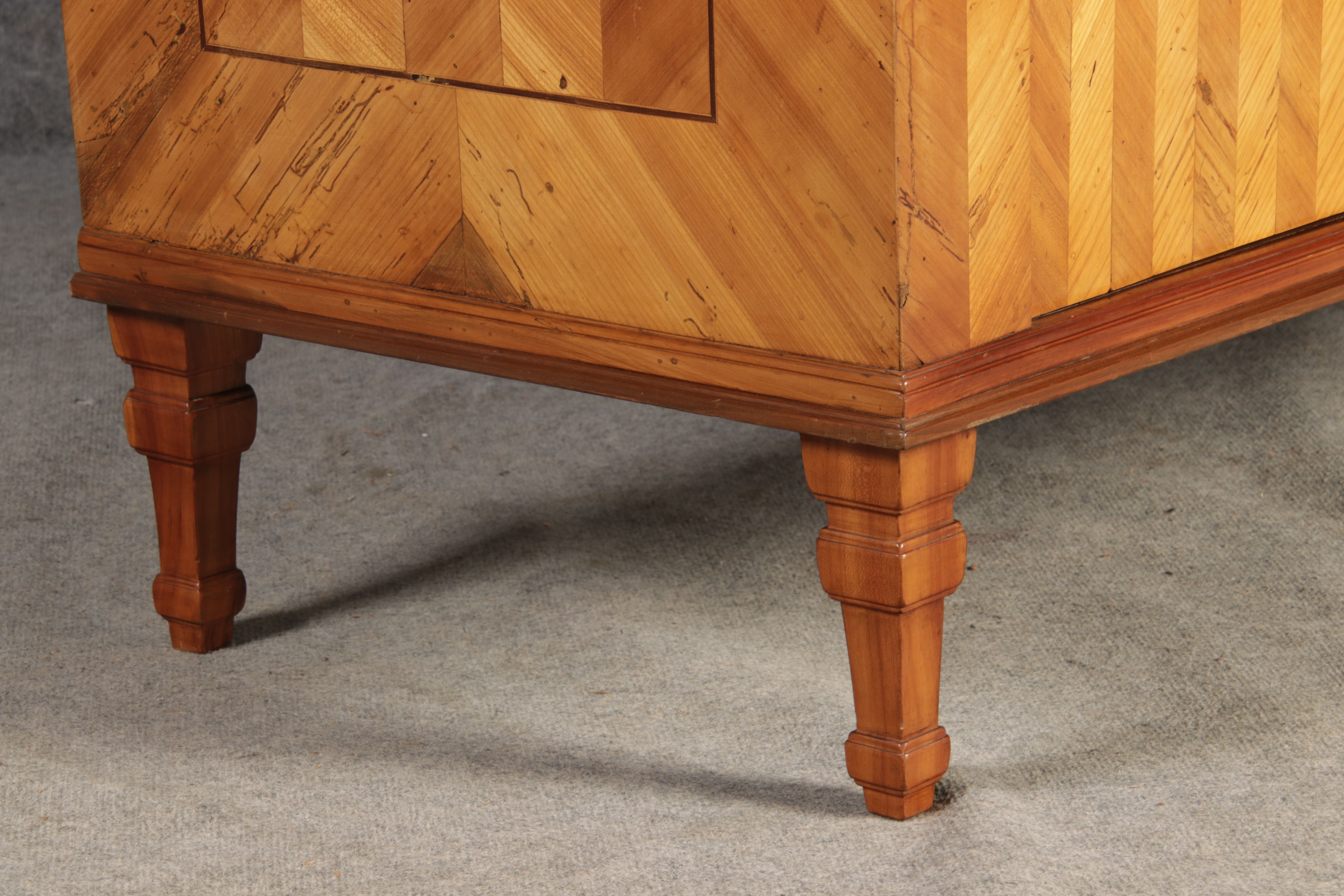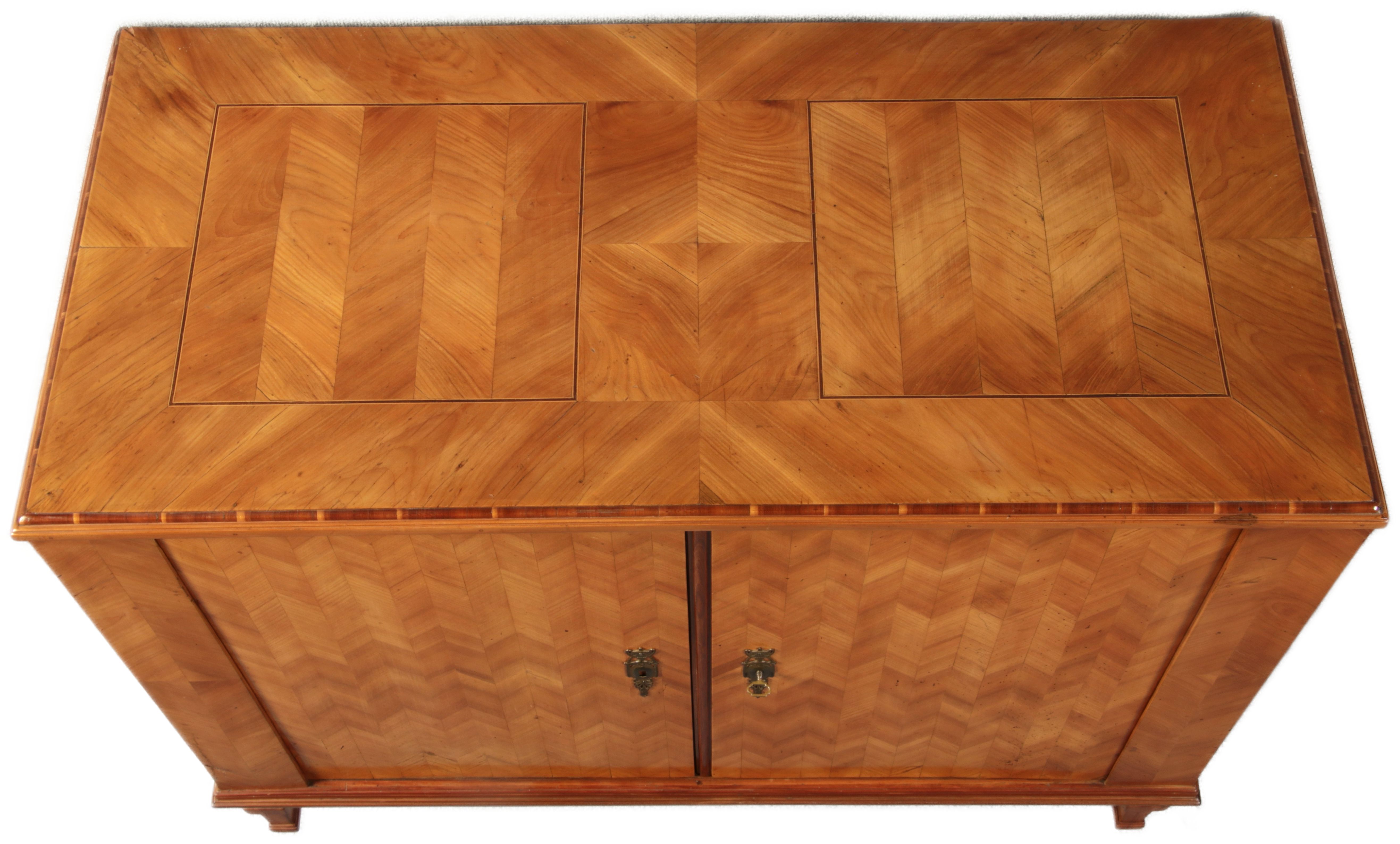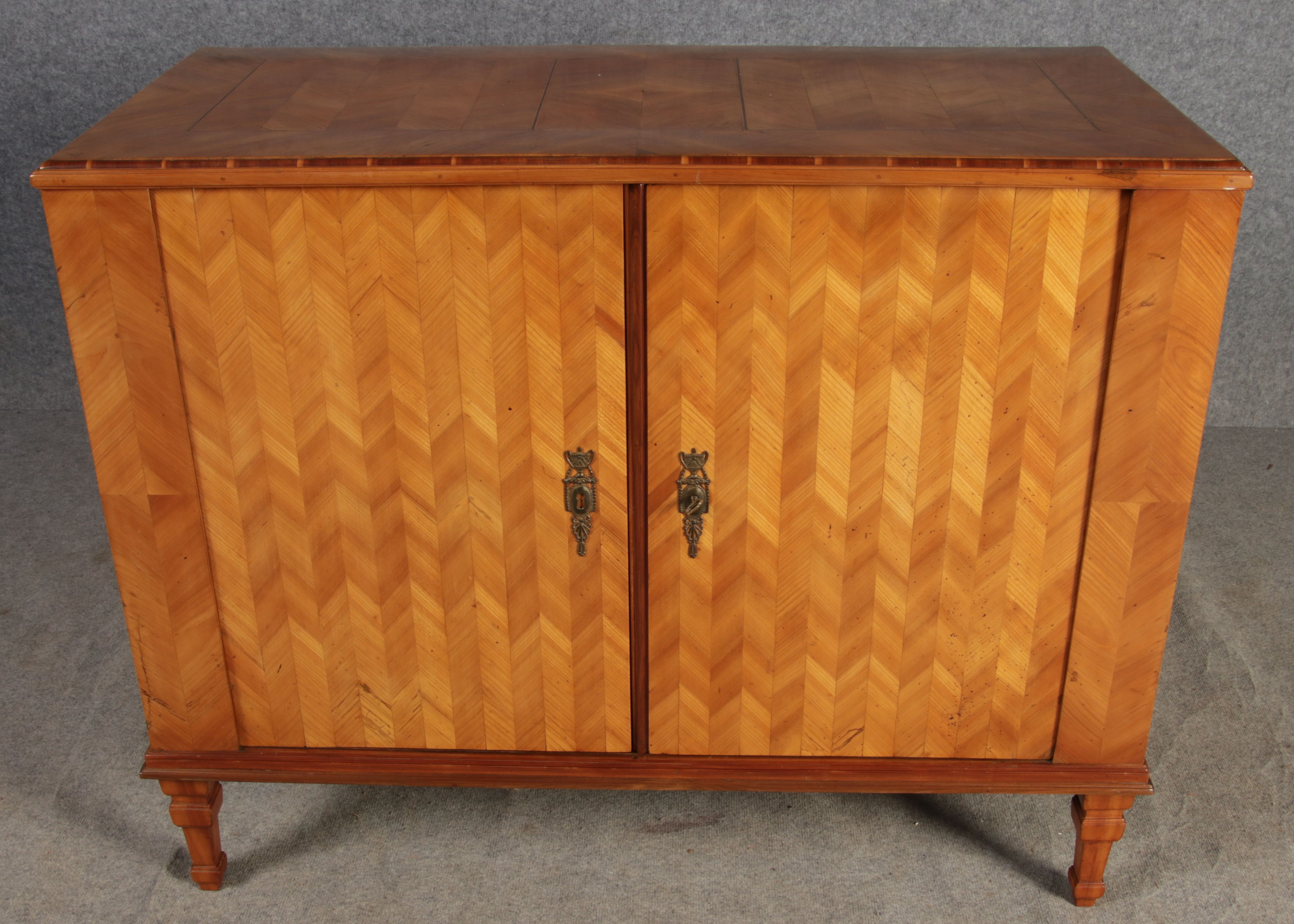 | Antiker Barock Halb Schrank Anrichte Kirschbaum furniert im Fischgräten Muster um 1780 |