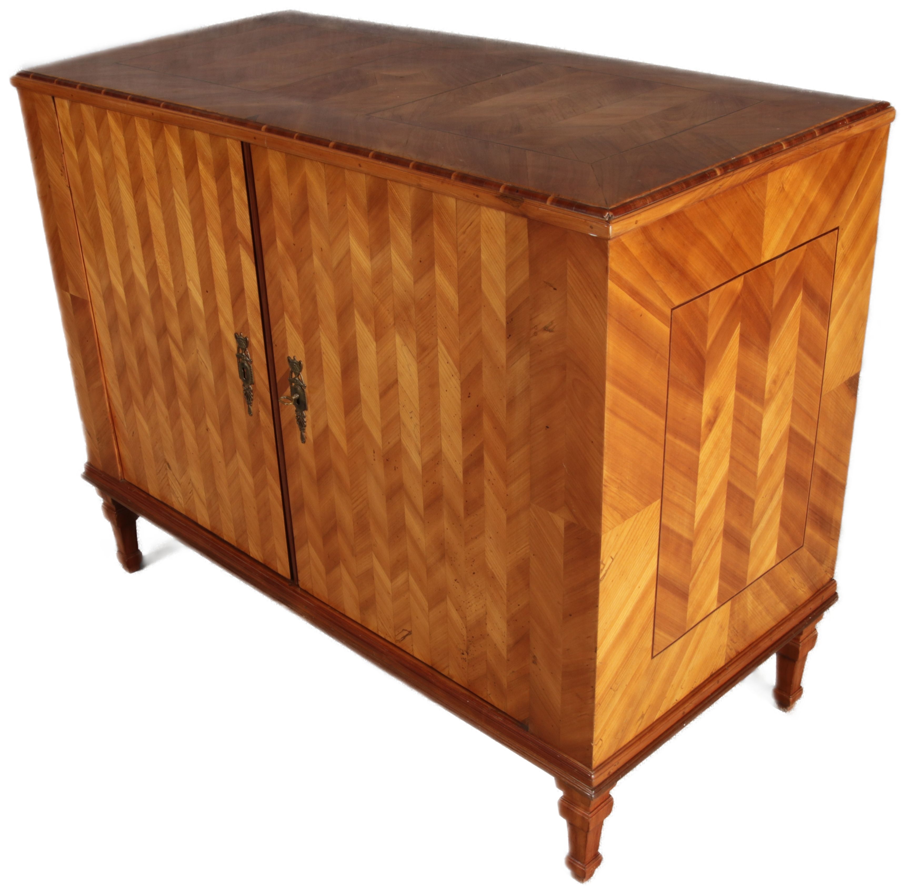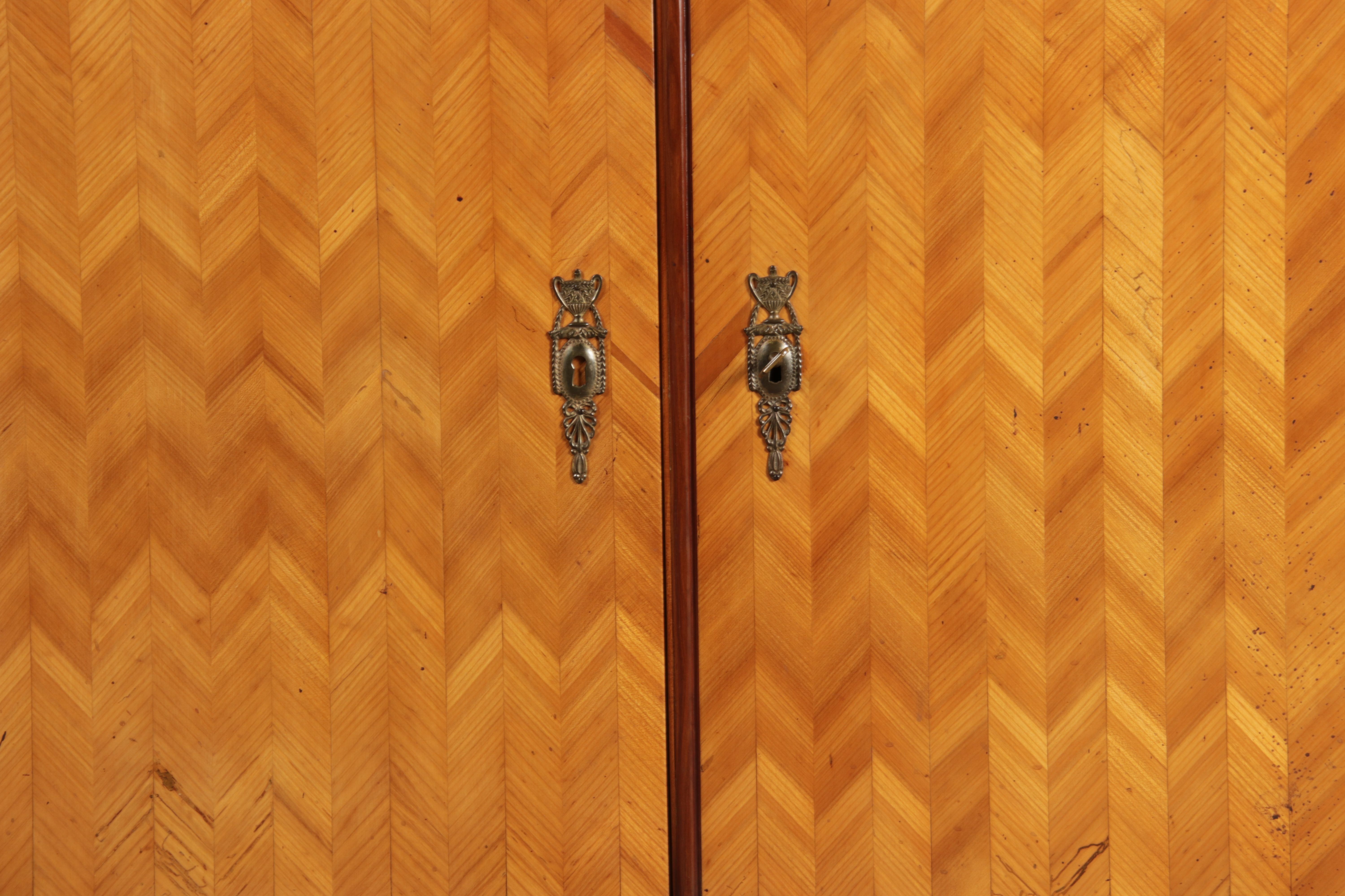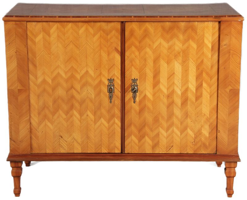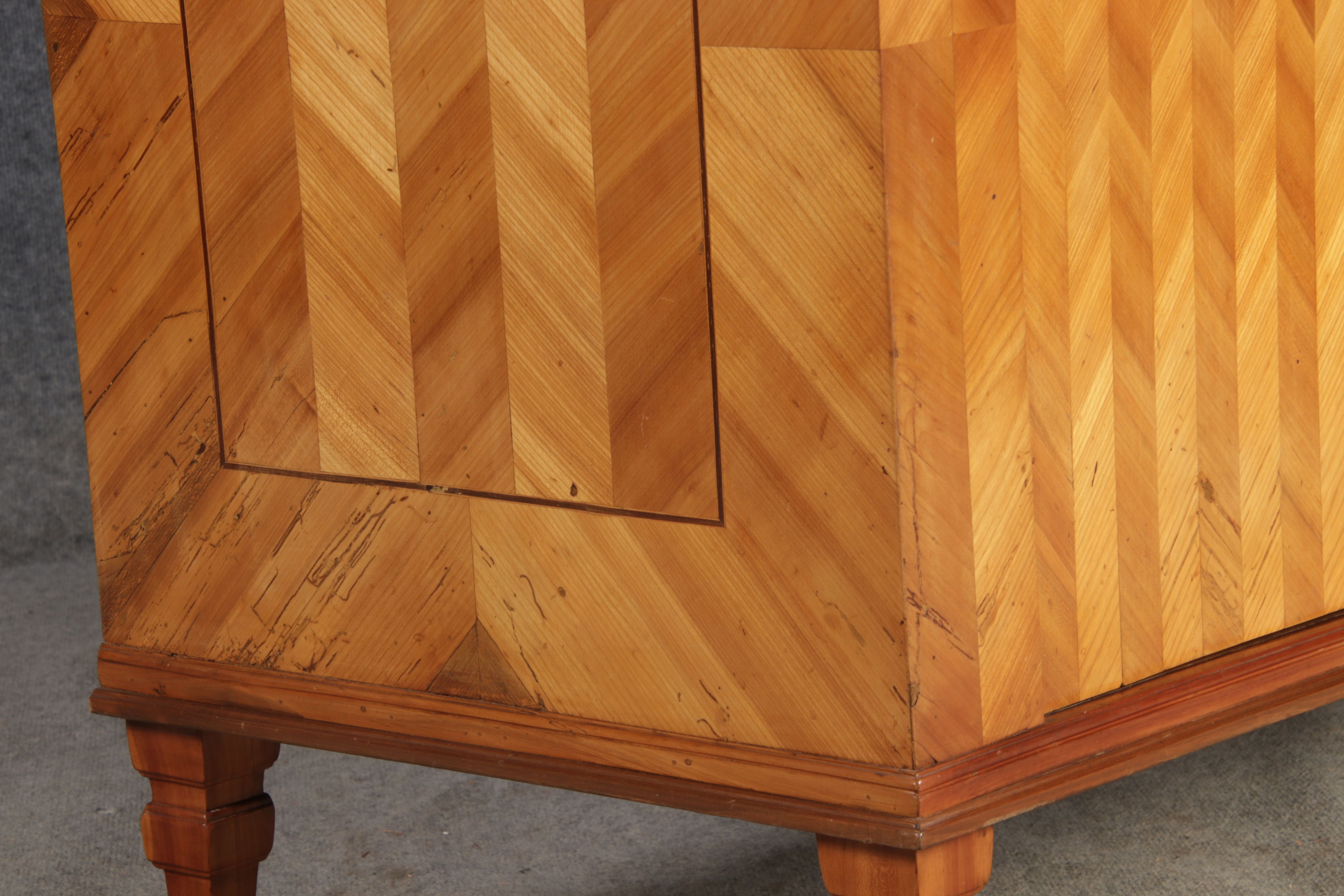 | Antiker Barock Halb Schrank Anrichte Kirschbaum furniert im Fischgräten Muster um 1780 |