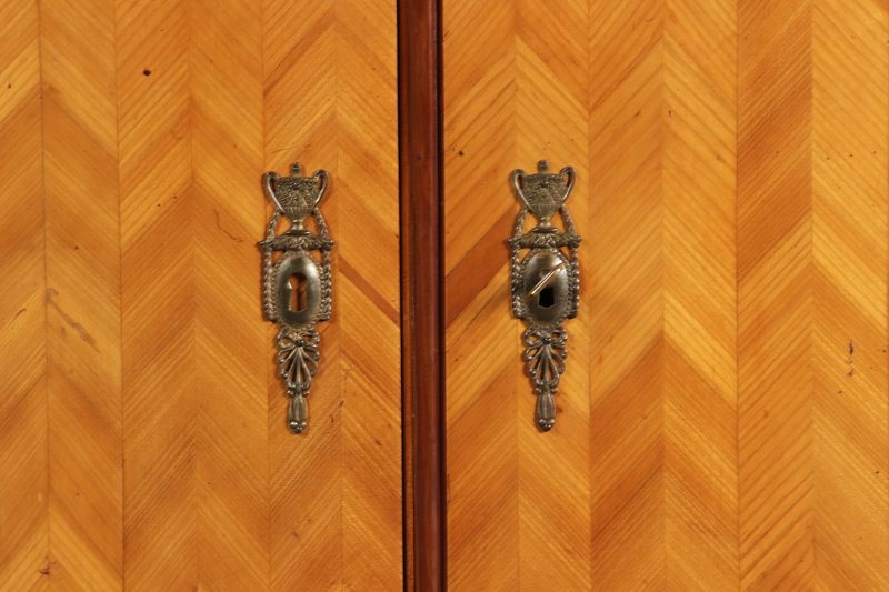 Antiker Barock Halb Schrank Anrichte Kirschbaum furniert im Fischgräten Muster um 1780 |