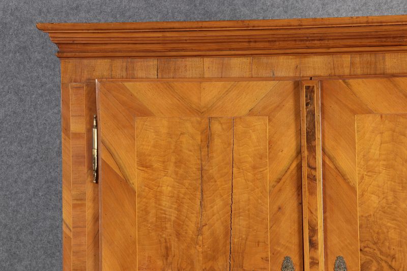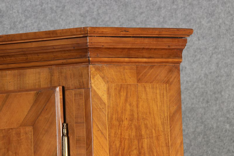 Masse/dimensions: Höhe/Height ca. 74/190 cm, Breite Korpus/Broad Boda ca. 118 cm, Breite Gesims/Broad cornice ca. 131 cm, Tiefe Korpus/Deep body ca. 30 cm, Tiefe Gesims/Deep cornice ca. 42 cm, Holz, Schlüssel/wood,