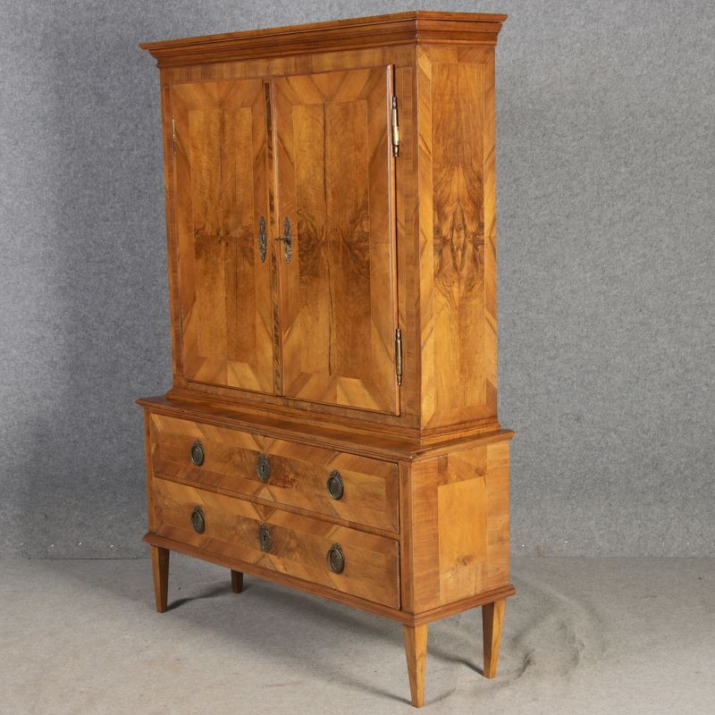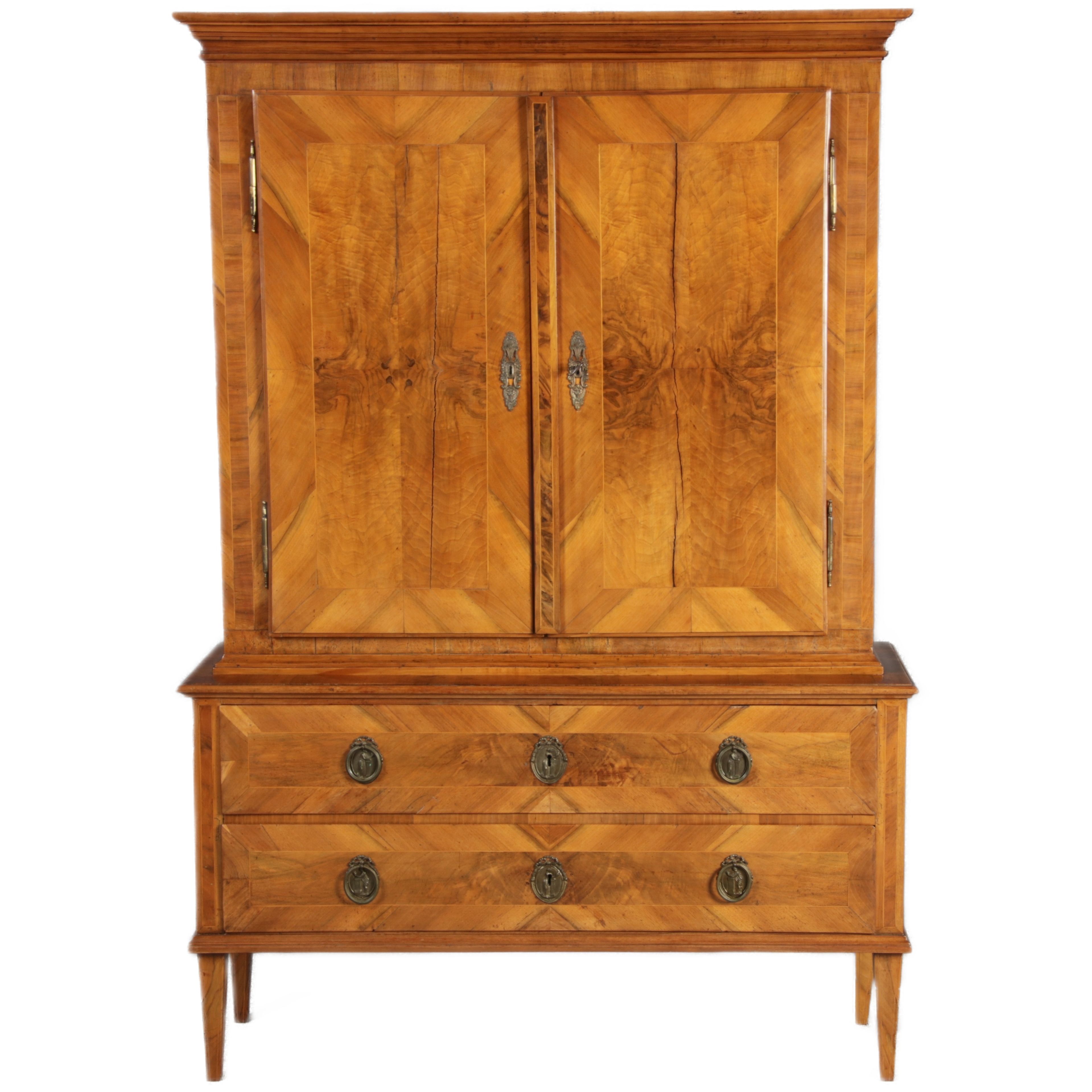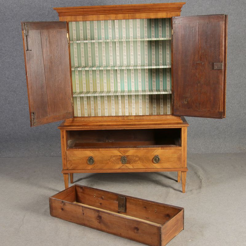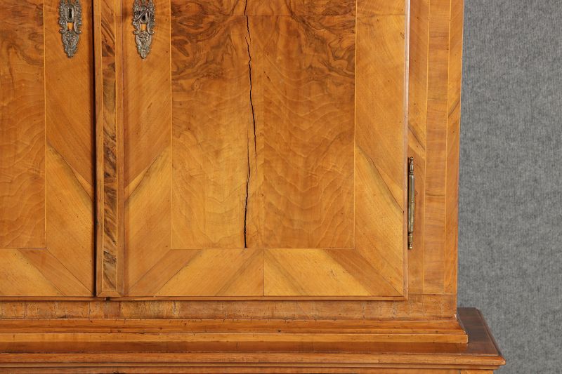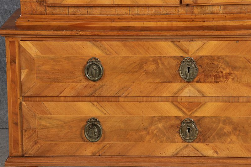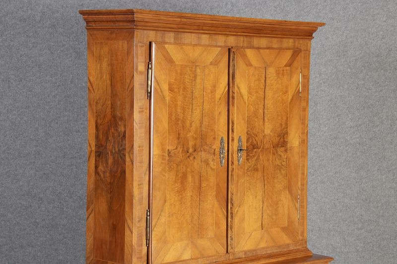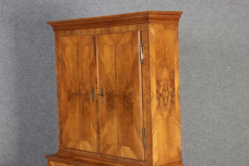 | Antiker Barock Aufsatz Schrank Kommode um 1780 Nussbaum |