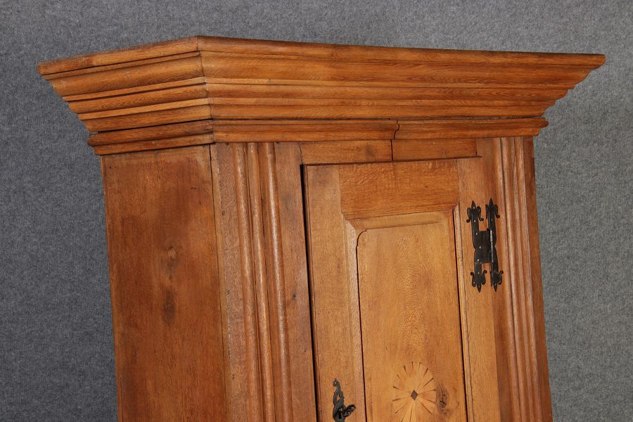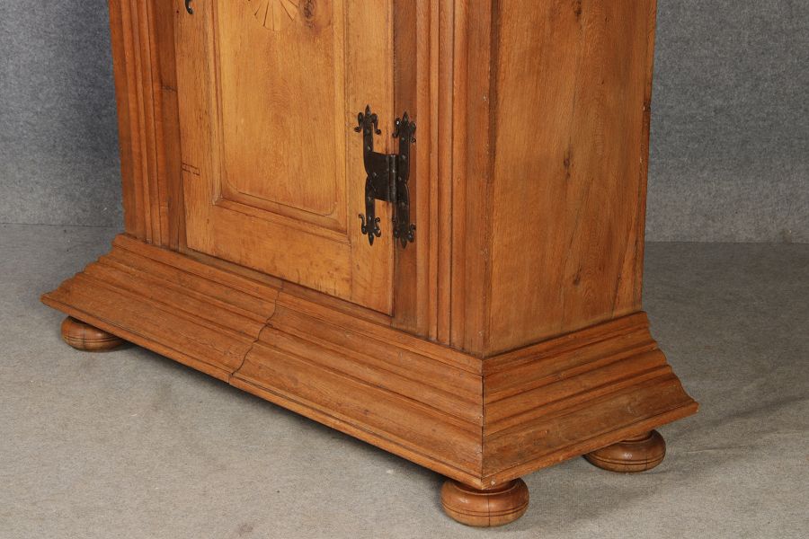 Masse/dimensions: Höhe/Height ca. 191 cm, Breite Korpus/Broad Boda ca. 128 cm, Breite Gesims/Broad cornice ca. 162 cm, Tiefe Korpus/Deep body ca. 48 cm, Tiefe Gesims/Deep cornice ca. 65 cm,