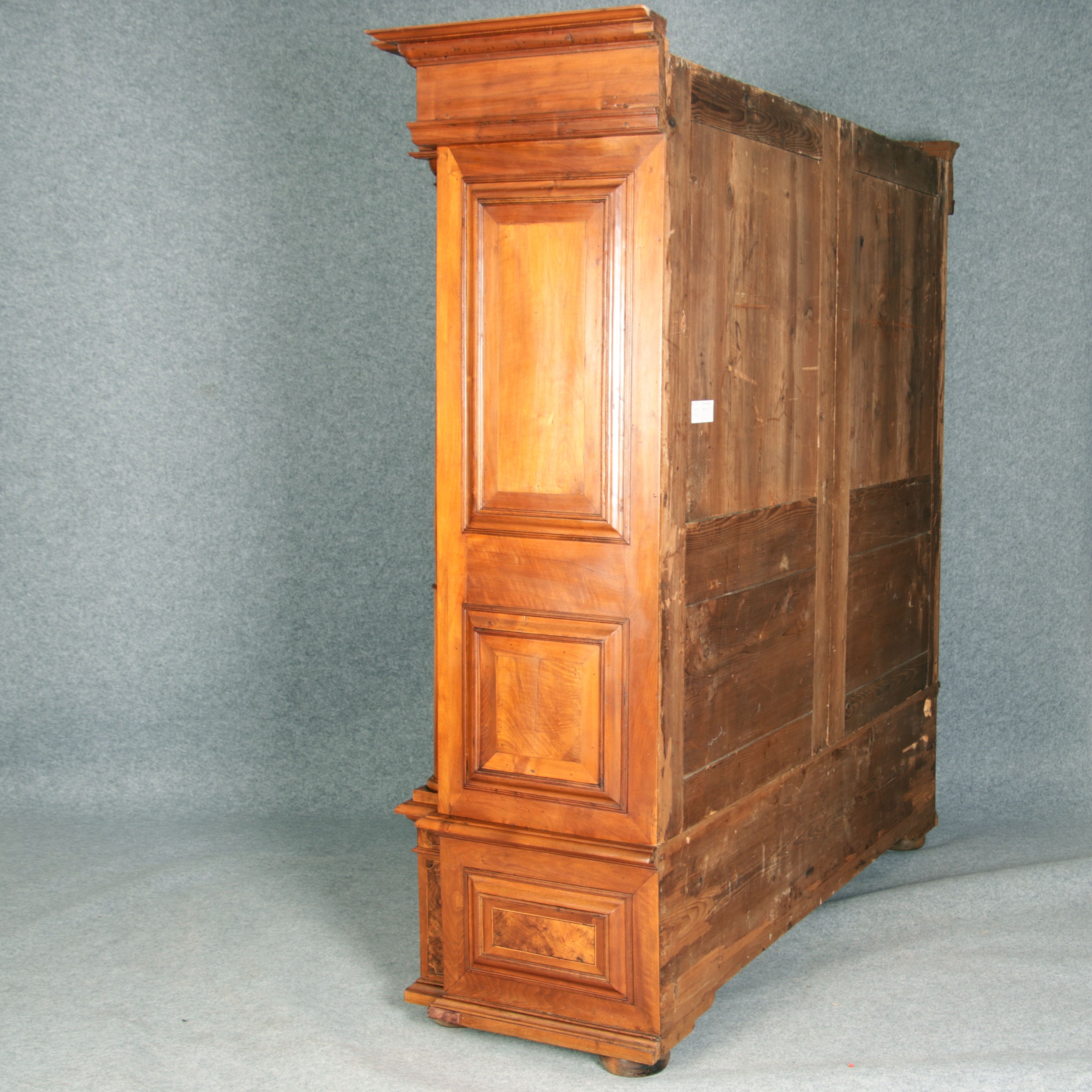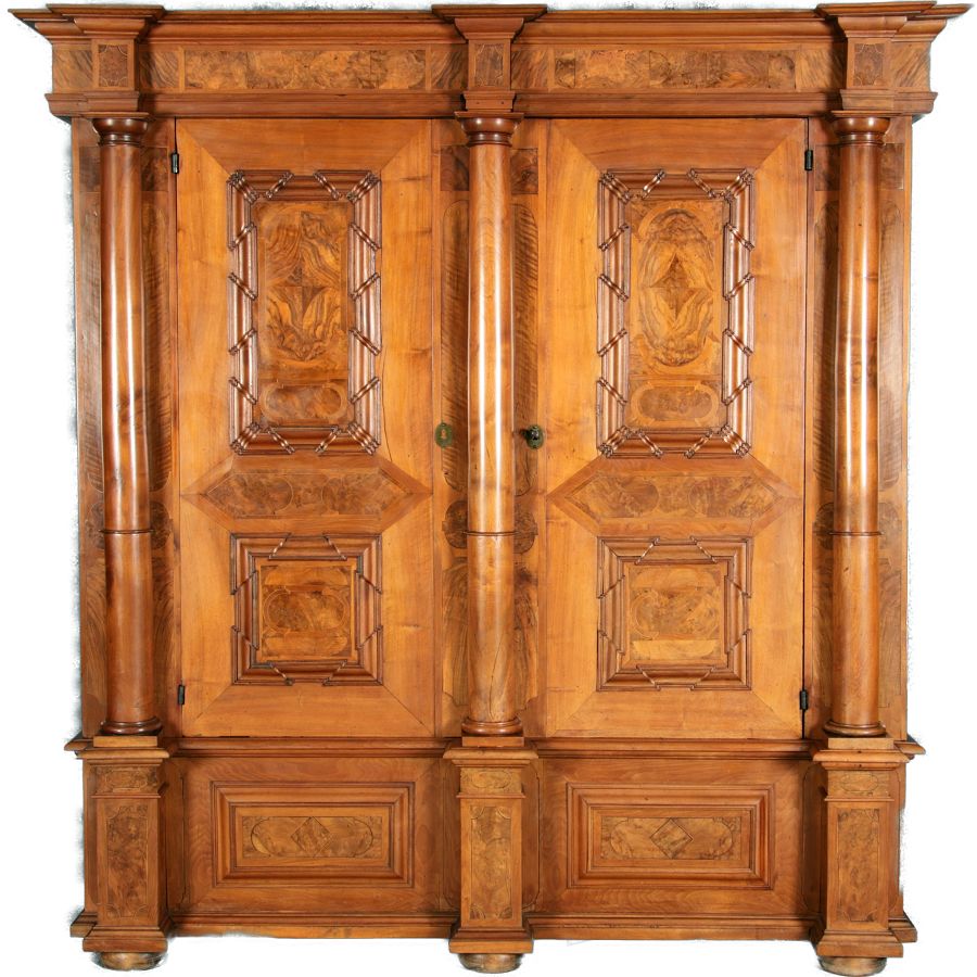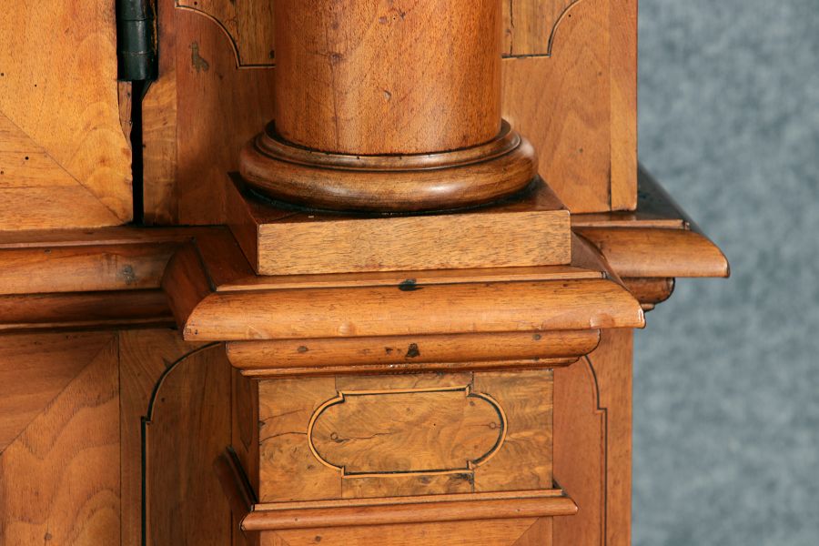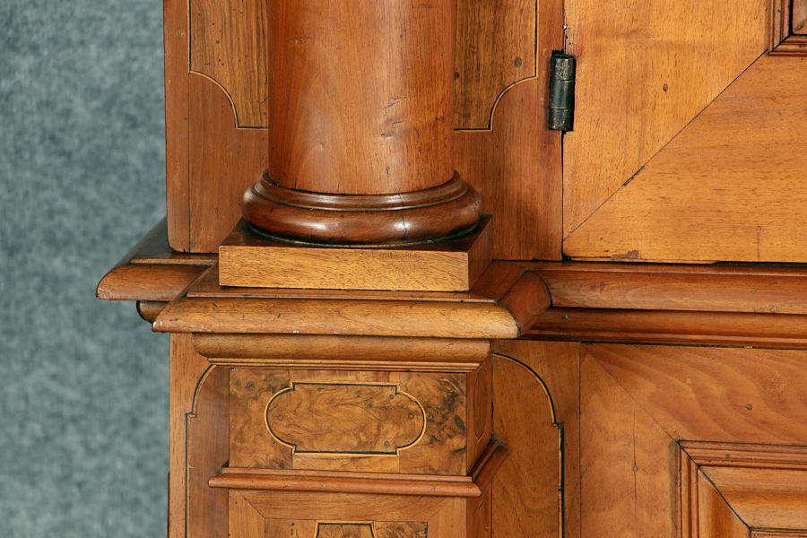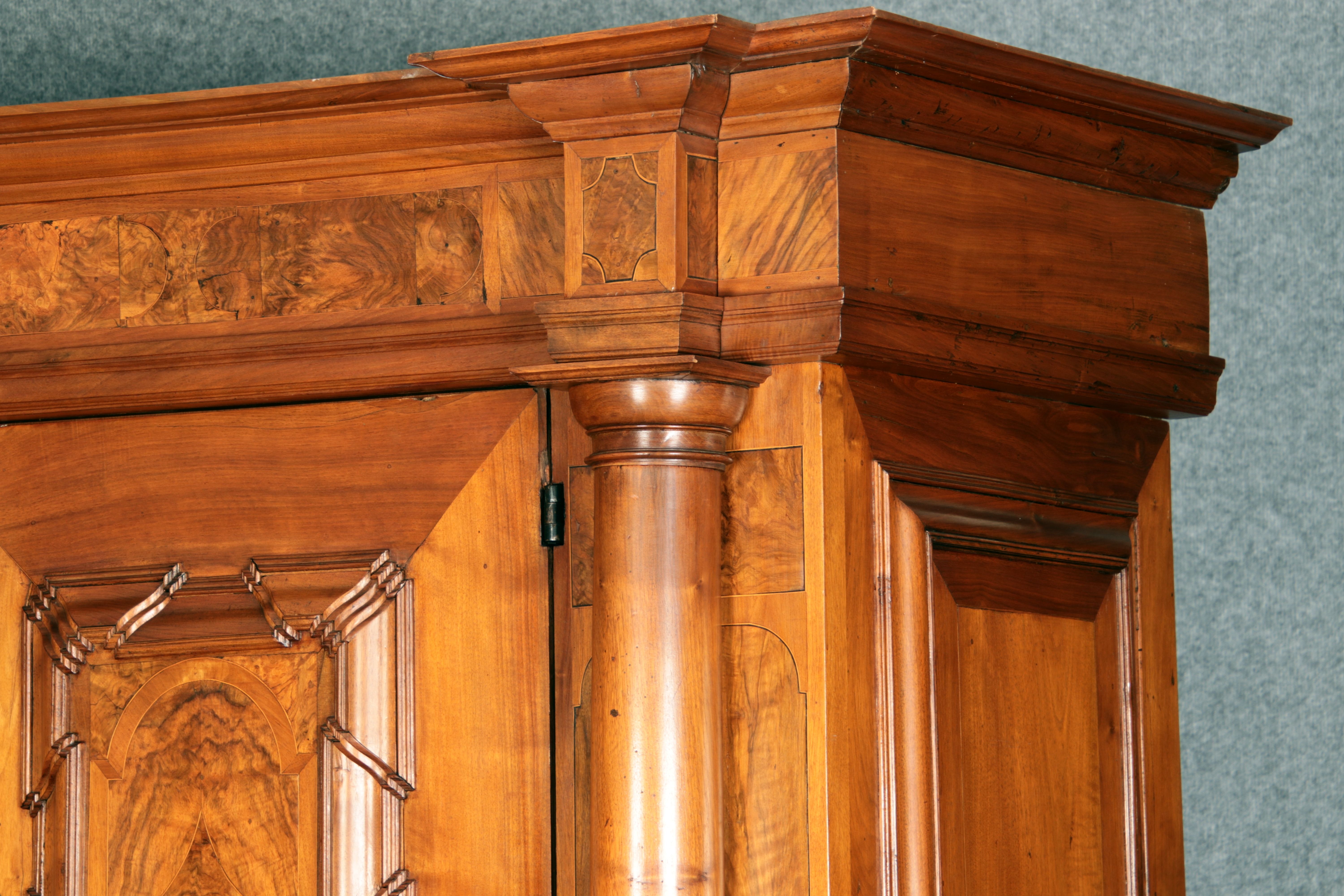 Großer Basler Barockschrank um 1720, Nussbaum furniert