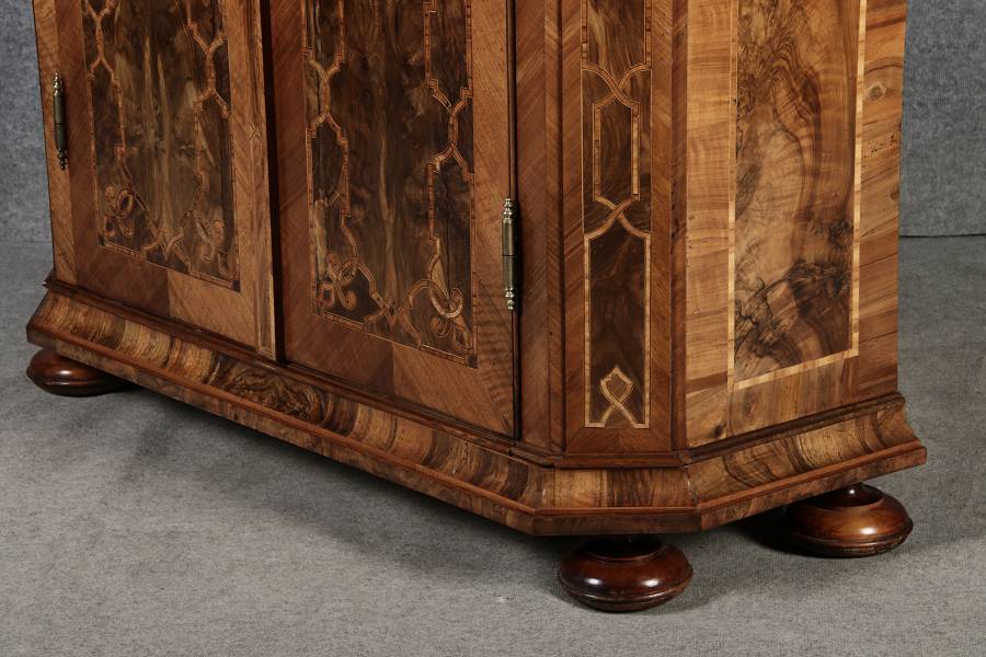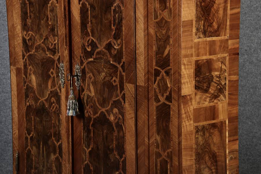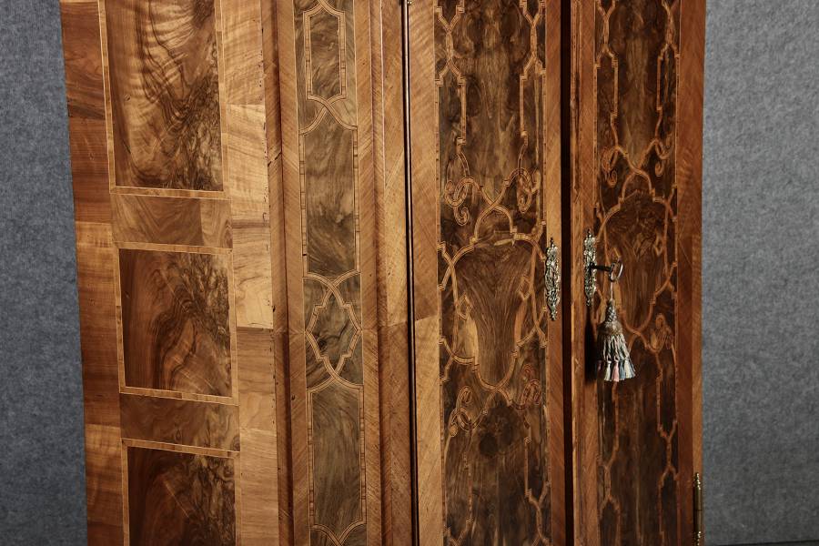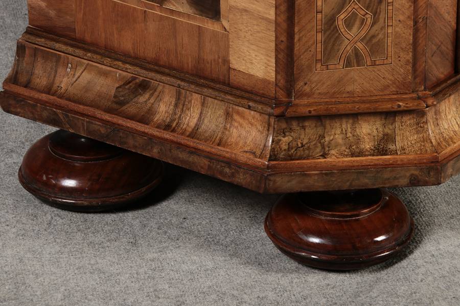 key: Die Holzart ist Nussbaum, Nussbaumwurzel und andere Hölzer ,er hat 1 Schlüssel