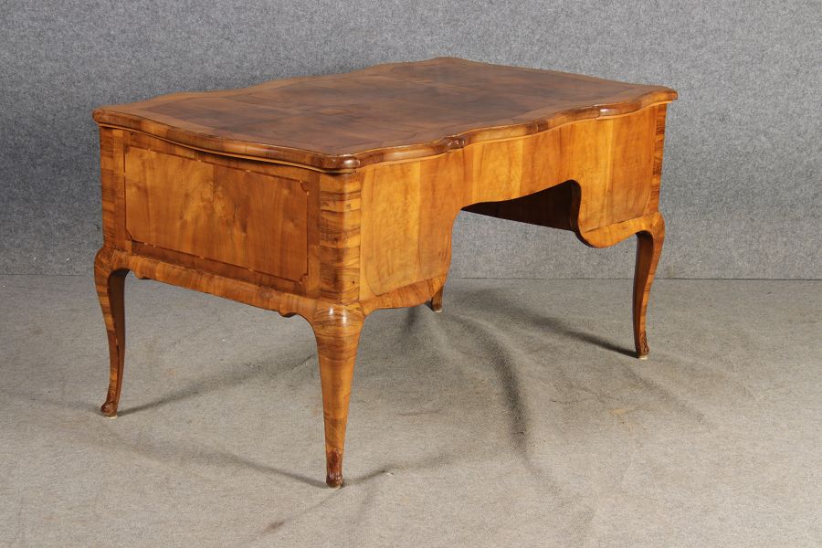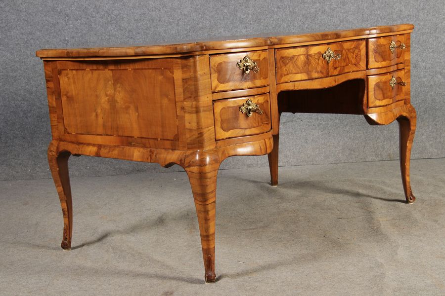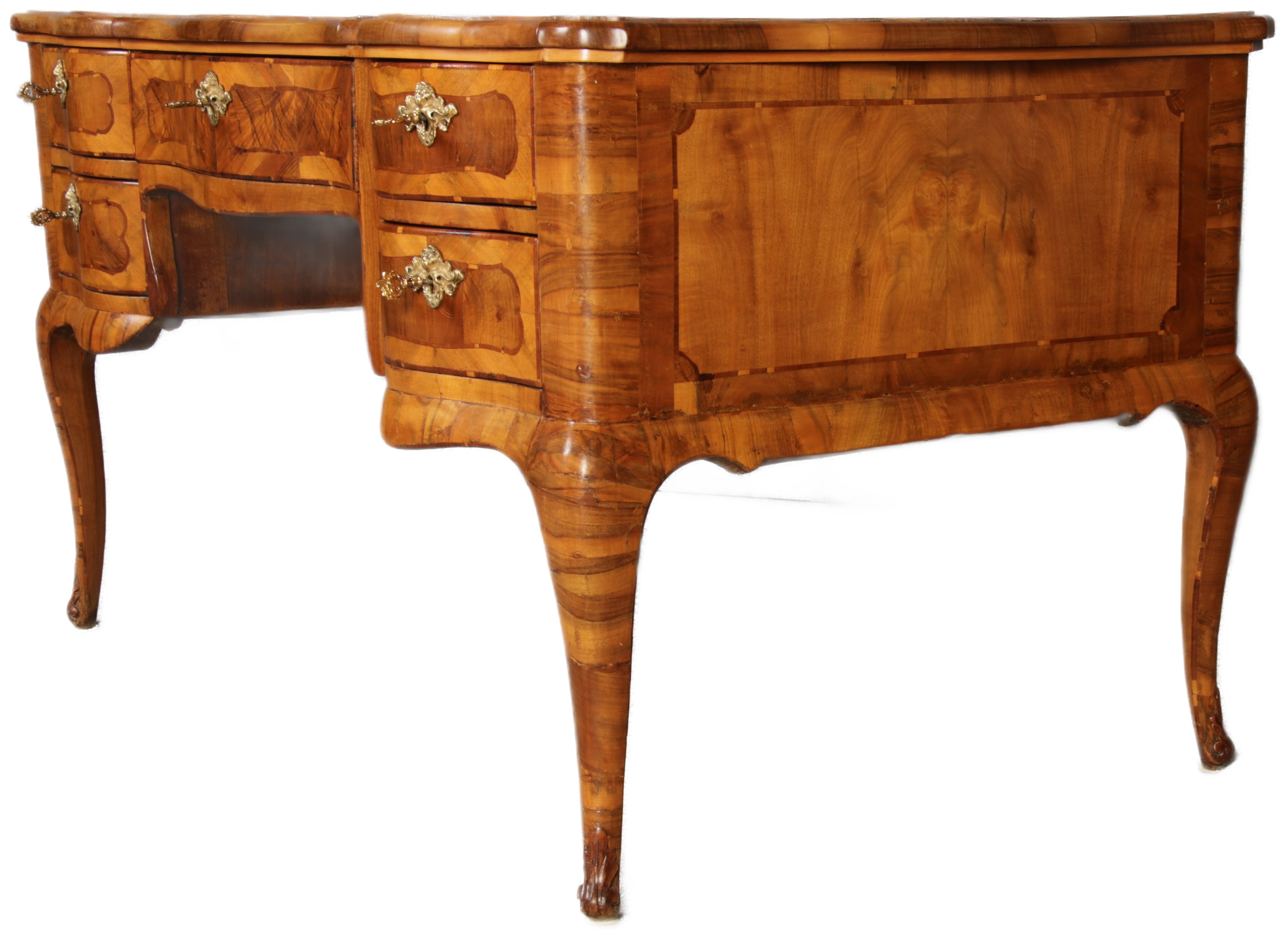 | Antiker Barock Schreibtisch 18 Jh. Nussbaum Intarsien | ||