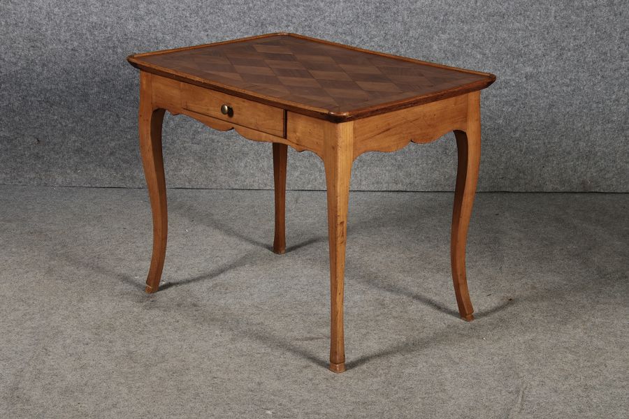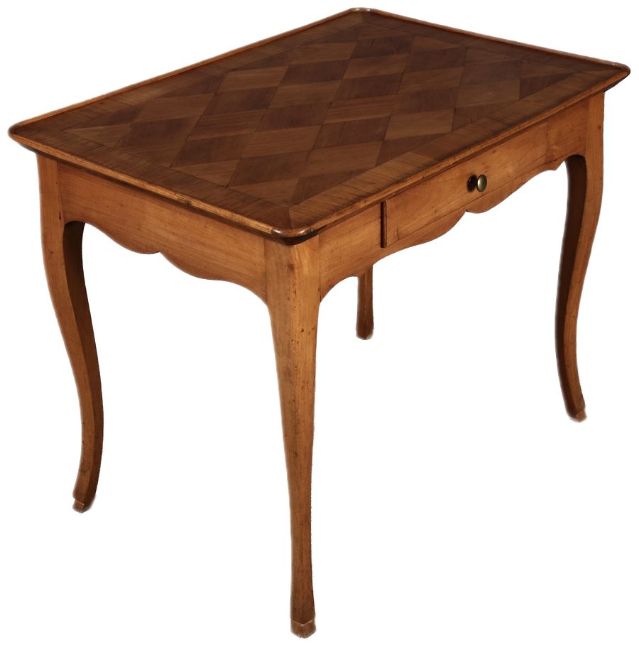 | Antiker Kleiner Damenschreibtisch Beistelltisch um 1760 Nussbaum Rauten Makerterie | ||
