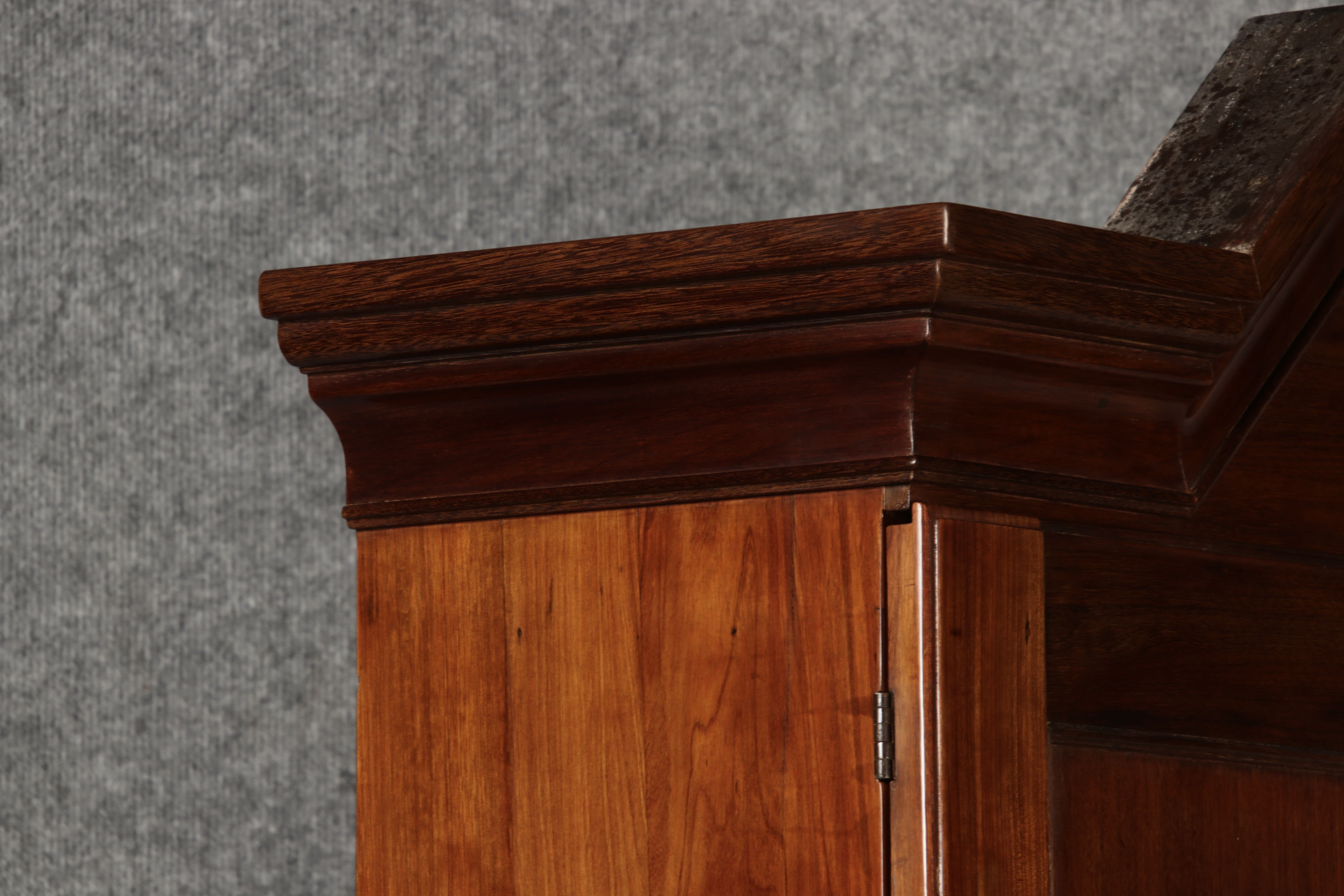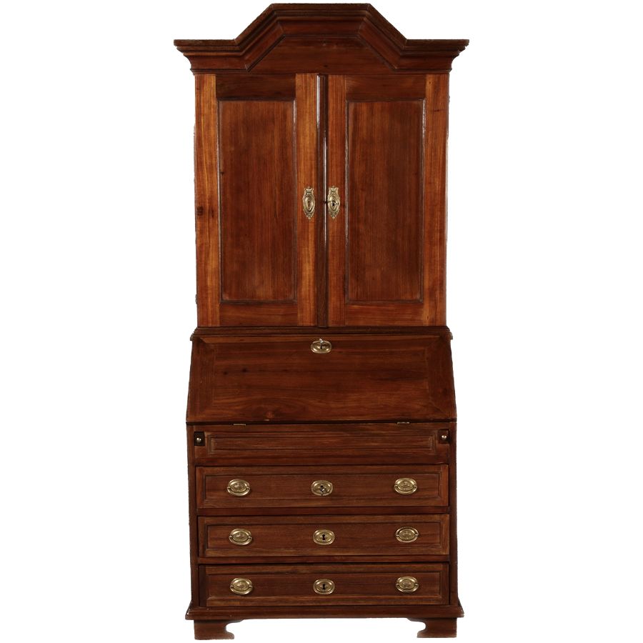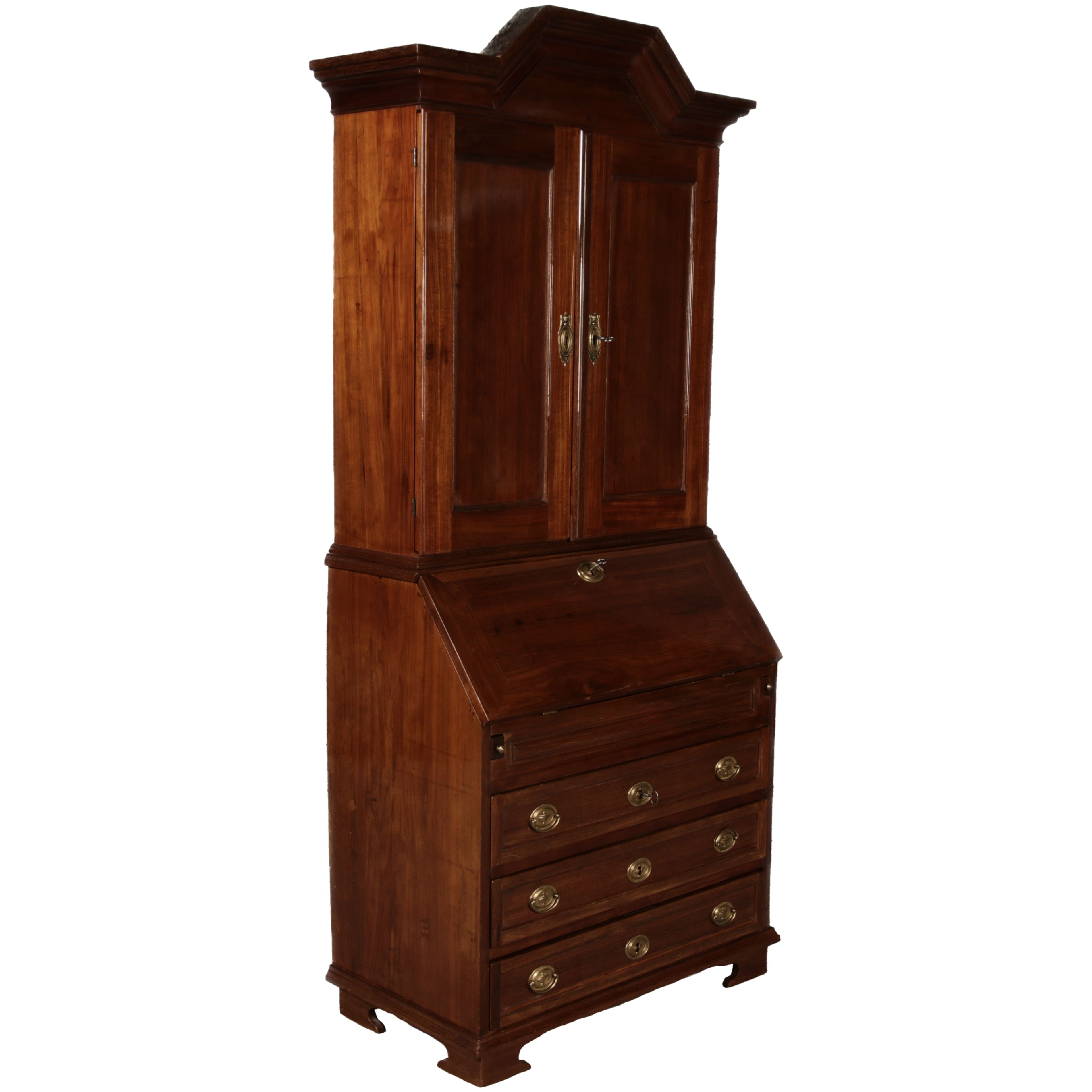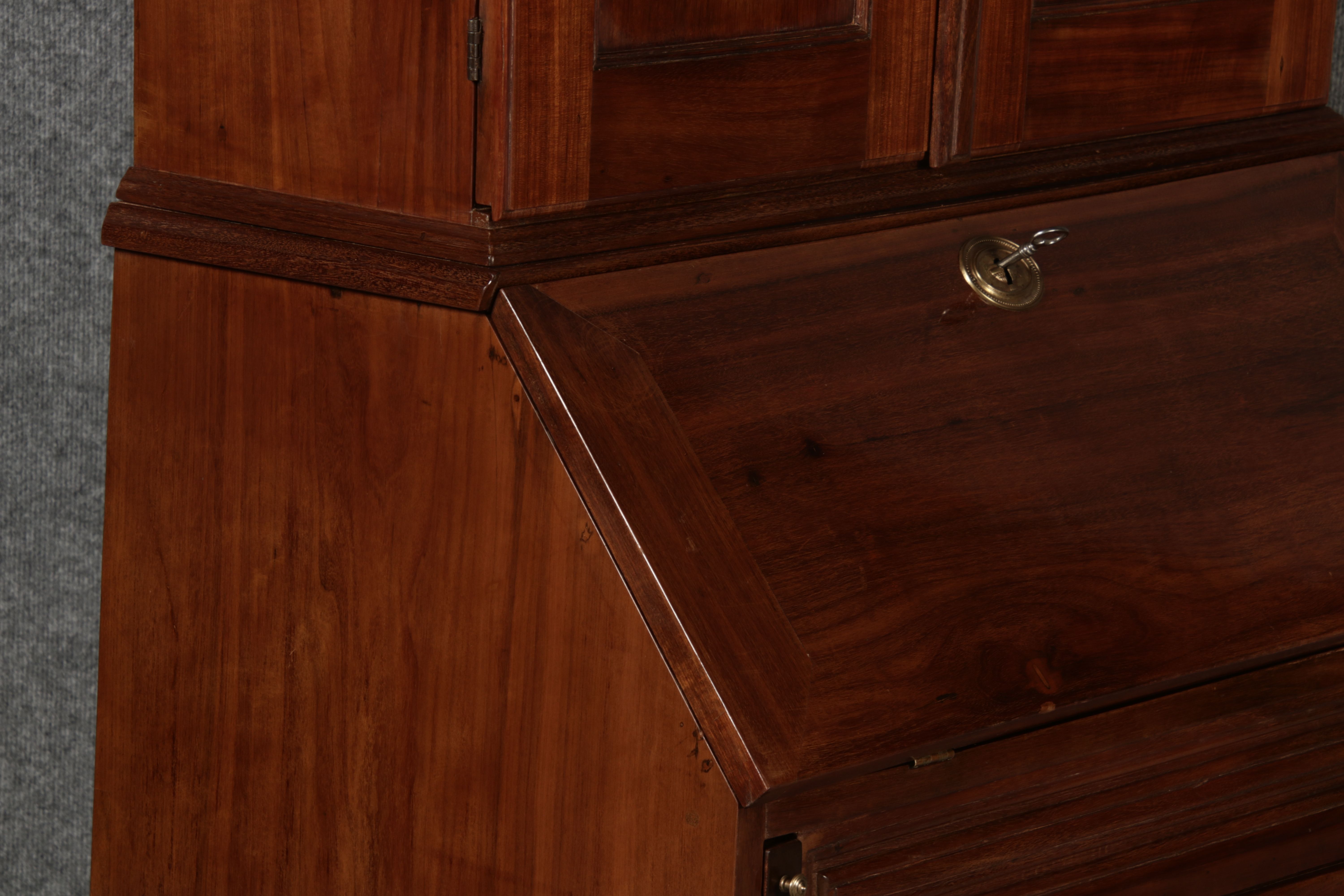 Jahrhundert – Mahagoni nur 99 cm Breit Dieser edle Sekretär aus dem 18. Jahrhundert ist ein exquisites Beispiel für europäische Handwerkskunst dieser Epoche und besticht durch seine hochwertige Verarbeitung aus massivem Mahagoniholz. Mit seiner imposanten Präsenz und der gelungenen Kombination von Funktionalität und Eleganz ist dieser Sekretär ein echtes Schmuckstück für Sammler und Liebhaber antiker Möbel. Der Sekretär besteht aus massivem Mahagoni, einem Holz, das im 18. Jahrhundert aufgrund seiner feinen Maserung und tiefen, warmen Farbgebung besonders beliebt war. Der warme, satte Farbton des Mahagoni wird durch die sanfte Patina, die sich über die Jahre entwickelt hat, noch betont. Die Oberflächen des Möbels weisen eine leicht glänzende Politur auf, die seine edle Erscheinung unterstreicht. Der Sekretär zeichnet sich durch seine klassische Zweiteilung aus: im Oberer Teil: Zwei aufwendig gearbeitete Flügeltüren mit eingesetzten Feldern öffnen sich und gewähren Zugang zu einem geräumigen Innenbereich. Dieser ist mit mehreren Regalböden ausgestattet, die ideal für die Aufbewahrung von Dokumenten, Büchern oder dekorativen Objekten geeignet sind. Die Türen sind mit Messingbeschlägen versehen, die dem Stück einen Hauch antiker Raffinesse verleihen. |