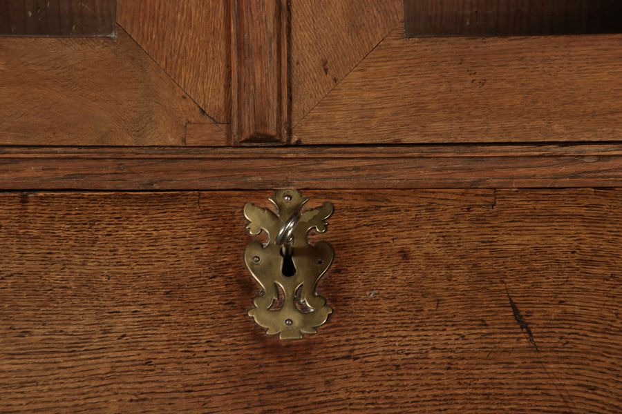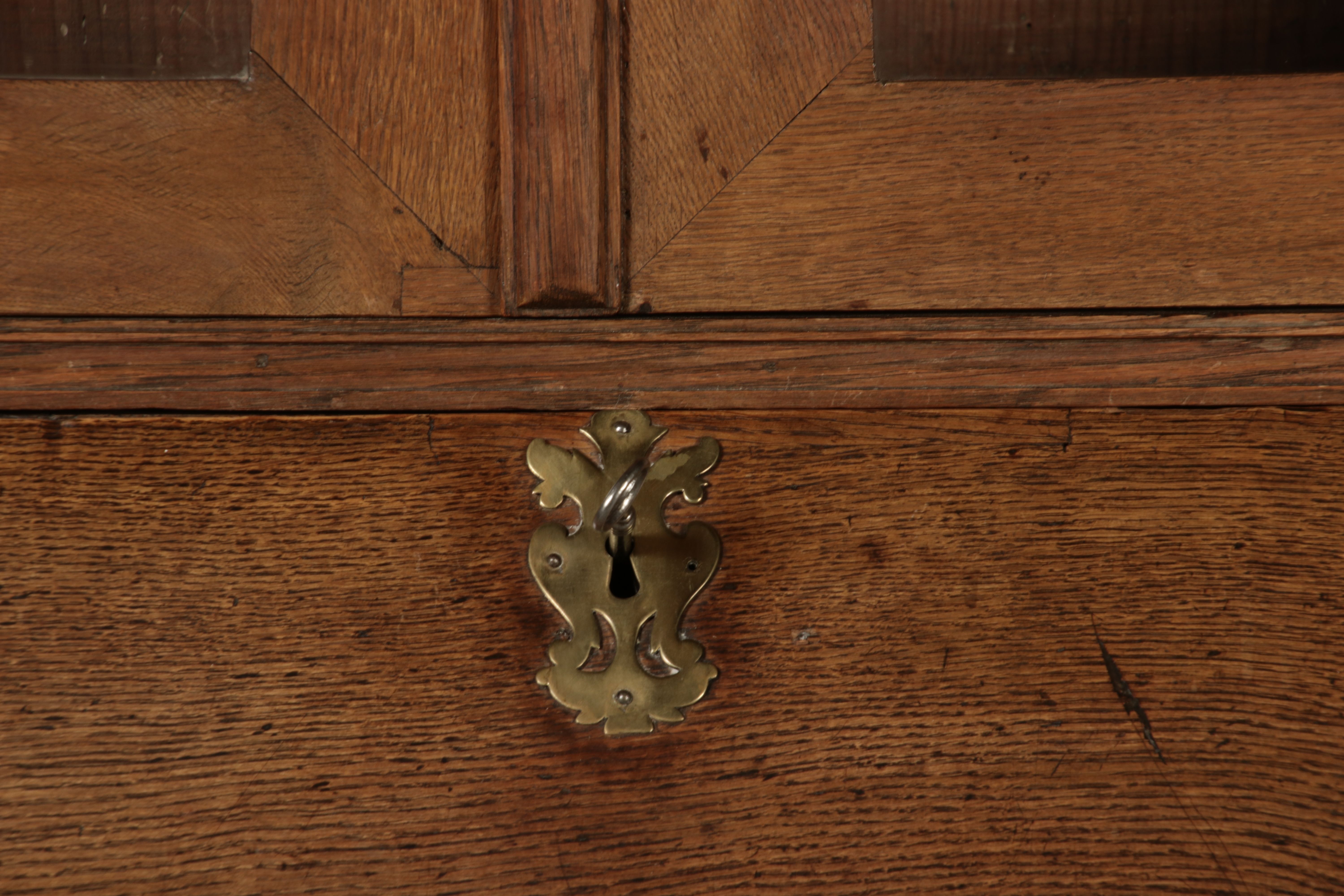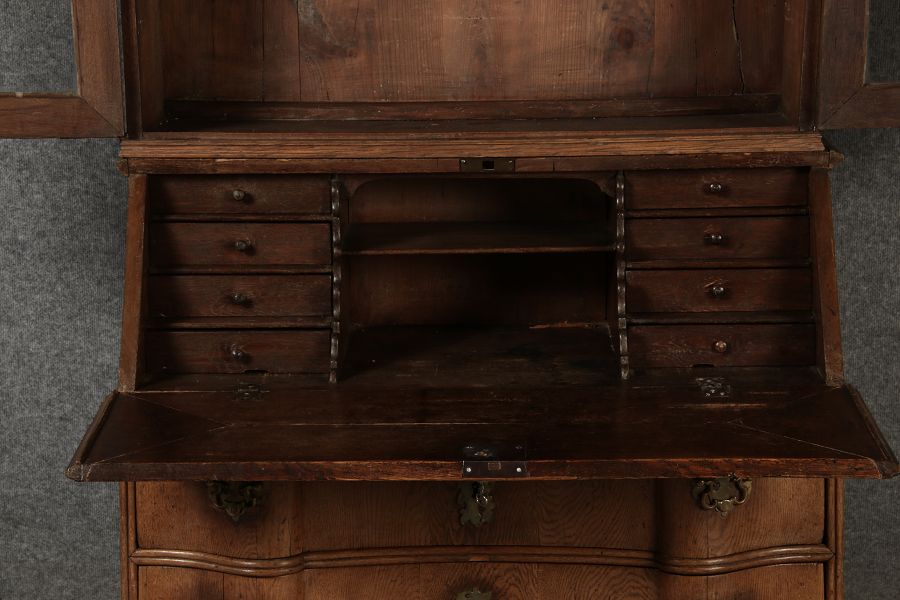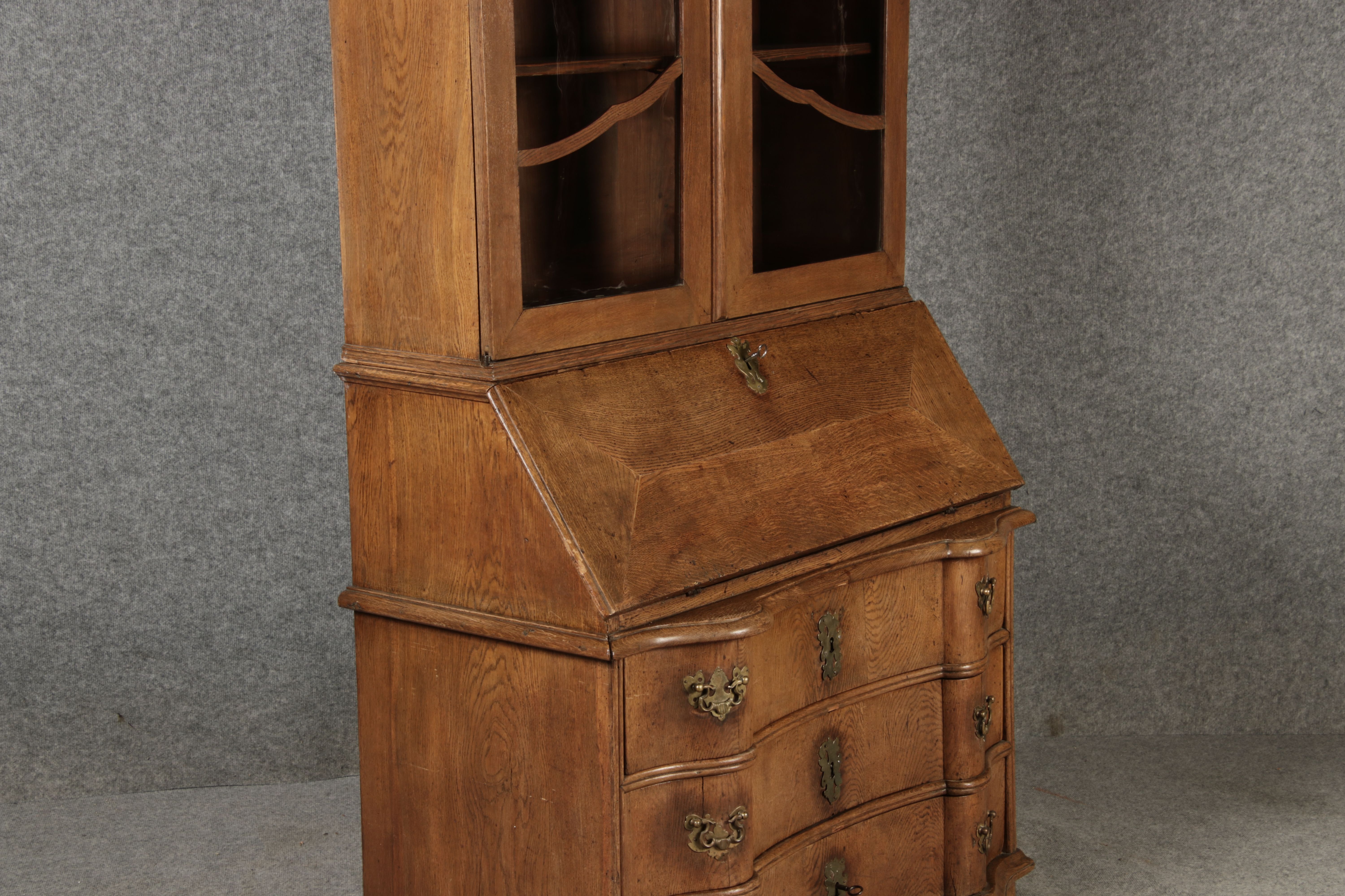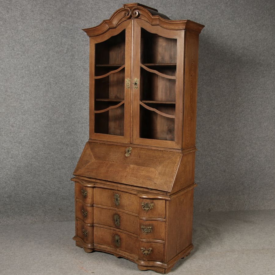 | Antiker Barock Sekretär Eichenholz 18 Jh. mit Vitrinen Oberteil | ||