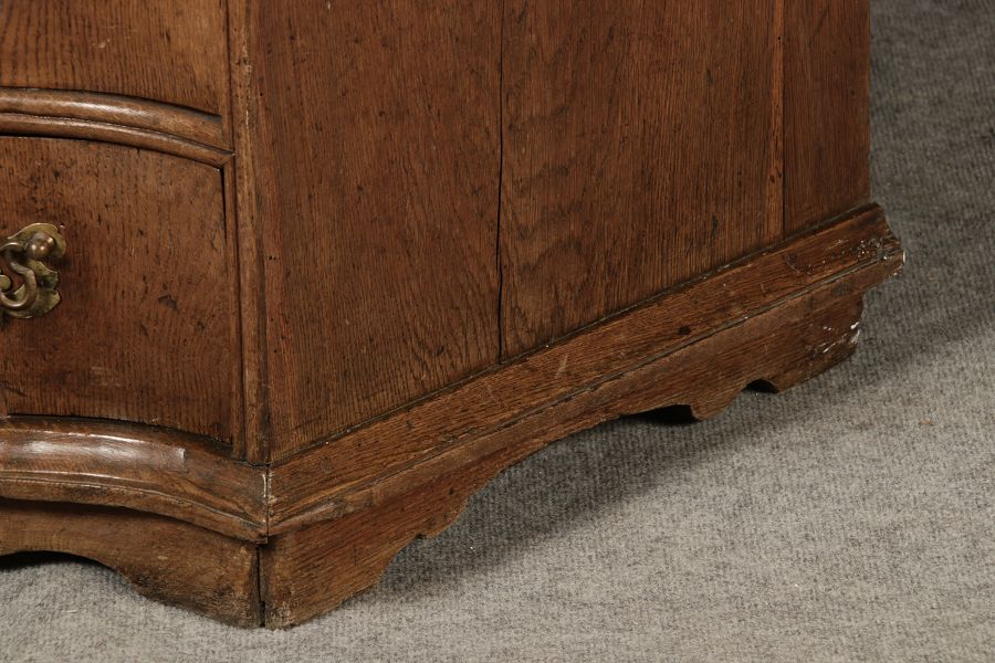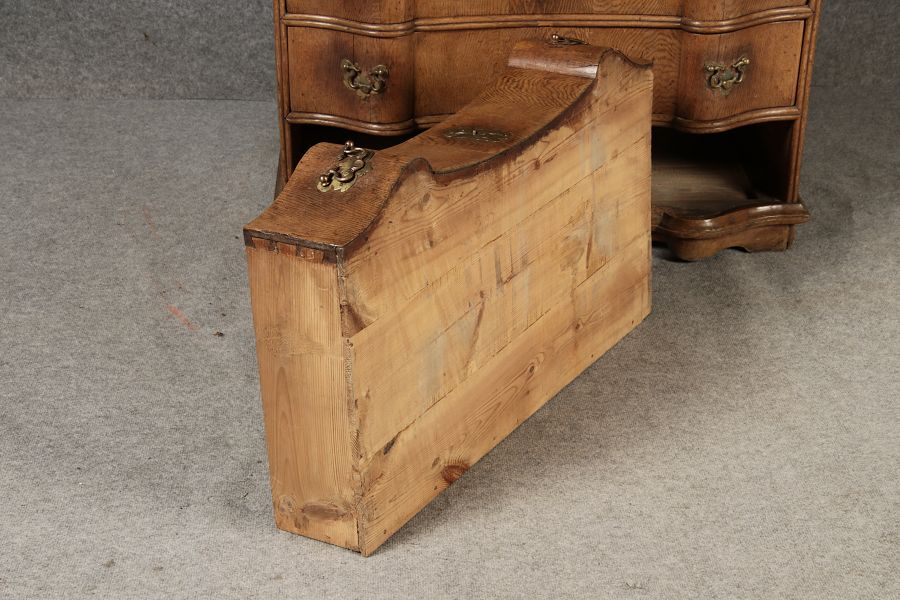 MessingbeschlägeDie Messingbeschläge an Türen und Schubladen sind kunstvoll gearbeitet und im typischen Stil des Spätbarocks gestaltet. Sie ergänzen das edle Design des Sekretärs und tragen zur luxuriösen Anmutung bei. Die Beschläge sind in gutem Zustand und zeigen nur minimale Gebrauchsspuren, was die historische Authentizität des Möbelstücks unterstreicht. ZustandDer Sekretär befindet sich in einem guten alt Restaurierten Zustand, insbesondere in Anbetracht seines Alters. Die Holzkonstruktion ist stabil und weist keine größeren Beschädigungen auf. Die Scharniere und Schubladenmechanismen funktionieren einwandfrei. Es gibt nur minimale altersbedingte Gebrauchsspuren, die dem Stück seinen authentischen Charakter verleihen. Stil und EpocheDieses Möbelstück stammt aus der Spätbarock-Zeit und zeigt deutlich die für diese Epoche typischen Stilmerkmale. Die geschwungenen Linien, die opulente Form der Schubladenfronten sowie die kunstvoll gearbeiteten Verzierungen machen diesen Sekretär zu einem beeindruckenden Beispiel der Barock-Möbel. FazitDieser antike Sekretär ist nicht nur ein stilvolles Möbelstück, sondern auch ein funktionaler Arbeitsplatz mit historischer Bedeutung. Seine geschwungenen Formen, die präzisen Schnitzereien und die kunstvollen Messingbeschläge machen ihn zu einem wahren Schmuckstück, das in jedem Raum einen besonderen Platz einnehmen wird. Ideal für Sammler antiker Möbel oder Liebhaber klassischer Inneneinrichtung ArtikelNummer /number: sek125