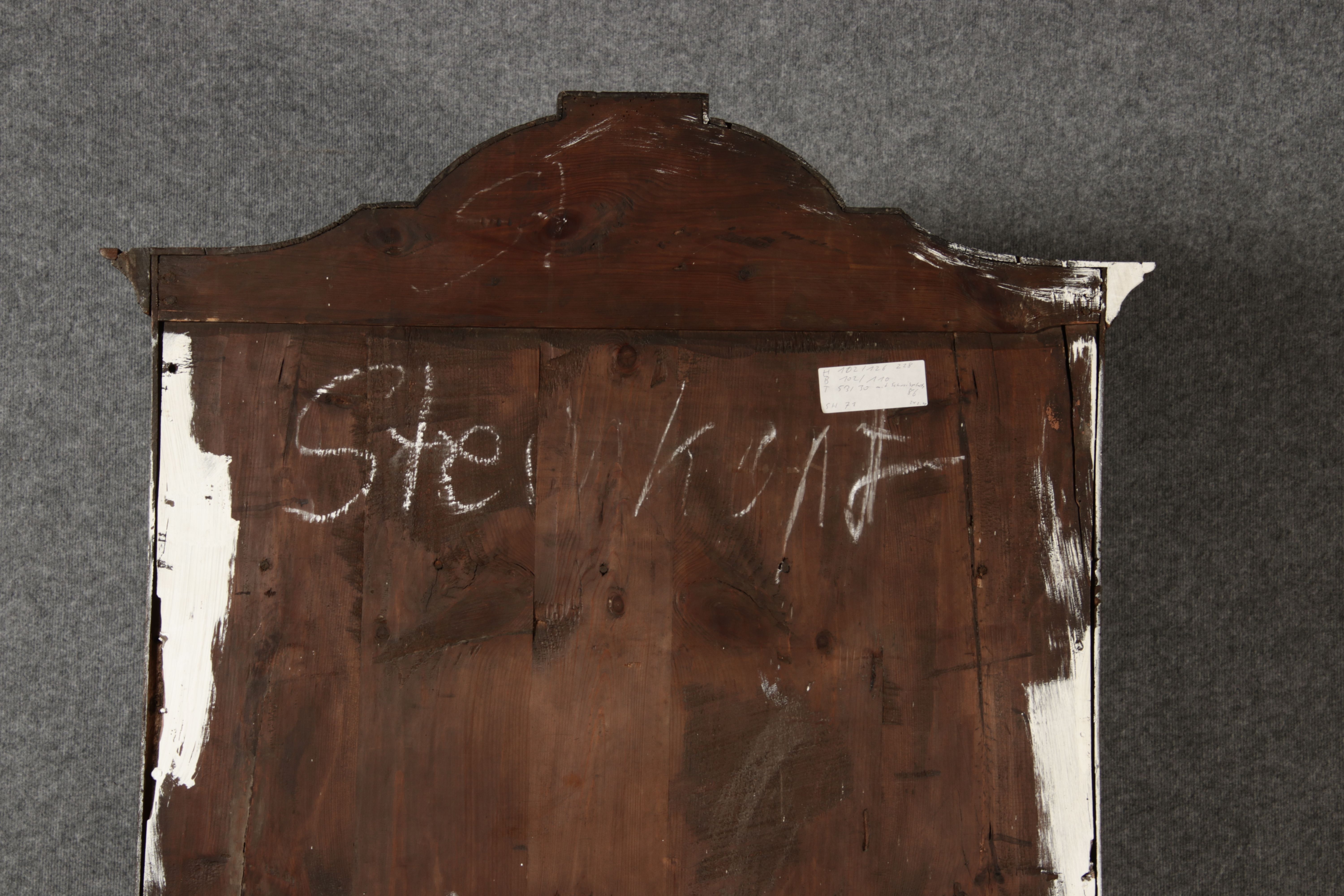 MessingbeschlägeDie Messingbeschläge an Türen und Schubladen sind kunstvoll gearbeitet und im typischen Stil des Spätbarocks gestaltet. Sie ergänzen das edle Design des Sekretärs und tragen zur luxuriösen Anmutung bei. Die Beschläge sind in gutem Zustand und zeigen nur minimale Gebrauchsspuren, was die historische Authentizität des Möbelstücks unterstreicht. ZustandDer Sekretär befindet sich in einem guten alt Restaurierten Zustand, insbesondere in Anbetracht seines Alters. Die Holzkonstruktion ist stabil und weist keine größeren Beschädigungen auf. Die Scharniere und Schubladenmechanismen funktionieren einwandfrei. Es gibt nur minimale altersbedingte Gebrauchsspuren, die dem Stück seinen authentischen Charakter verleihen. Stil und EpocheDieses Möbelstück stammt aus der Spätbarock-Zeit und zeigt deutlich die für diese Epoche typischen Stilmerkmale. Die geschwungenen Linien, die opulente Form der Schubladenfronten sowie die kunstvoll gearbeiteten Verzierungen machen diesen Sekretär zu einem beeindruckenden Beispiel der Barock-Möbel. |