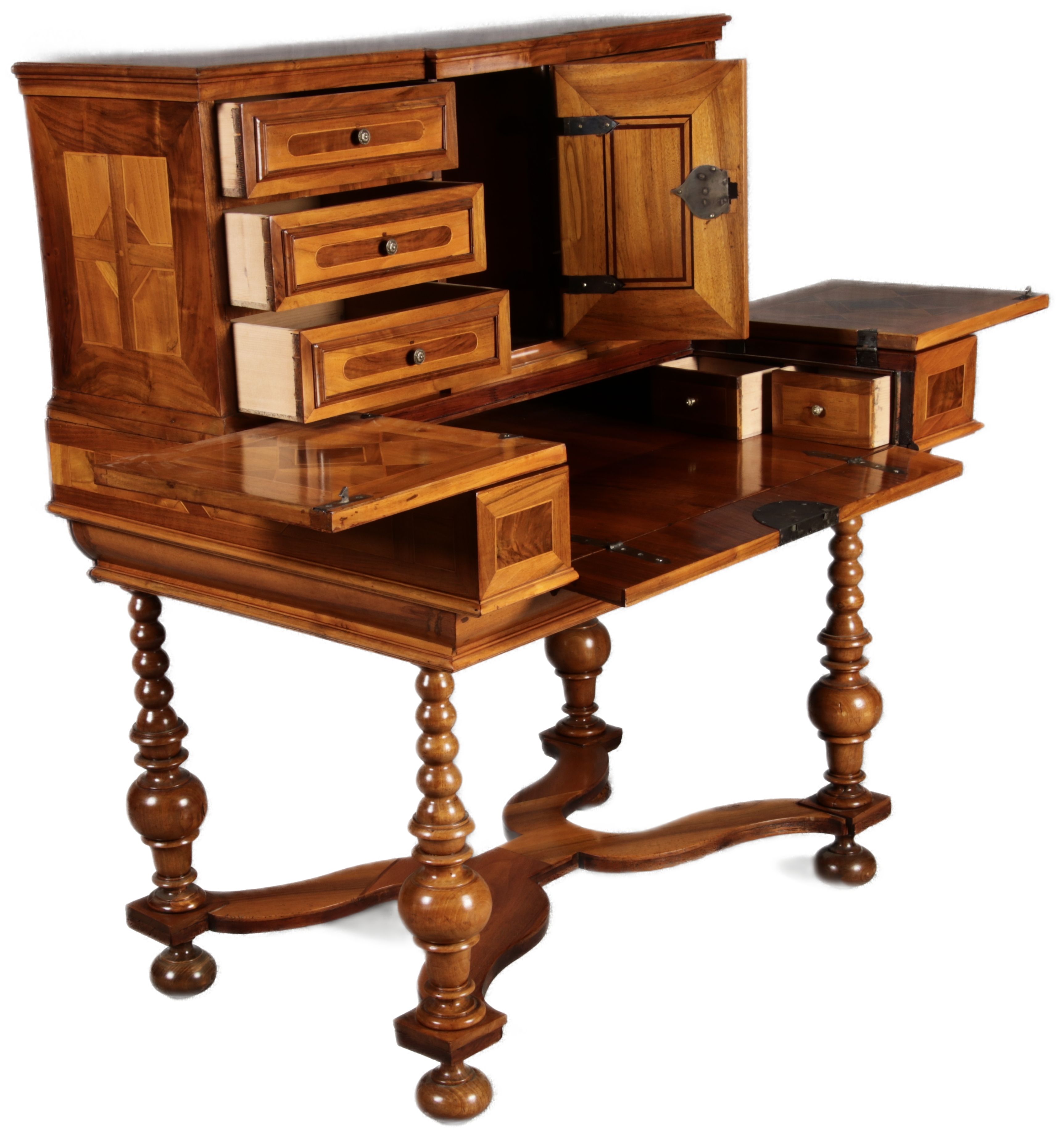 Konstruktion/construction: Der Sekretär besteht aus drei Teilen, Oberteil,Mittelteil und Unterteil.