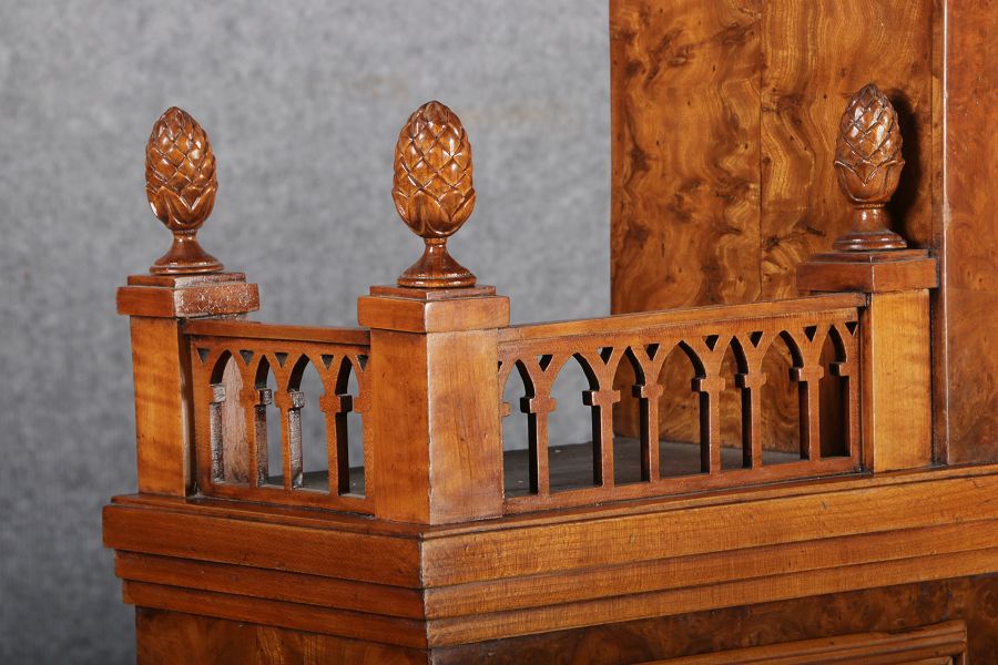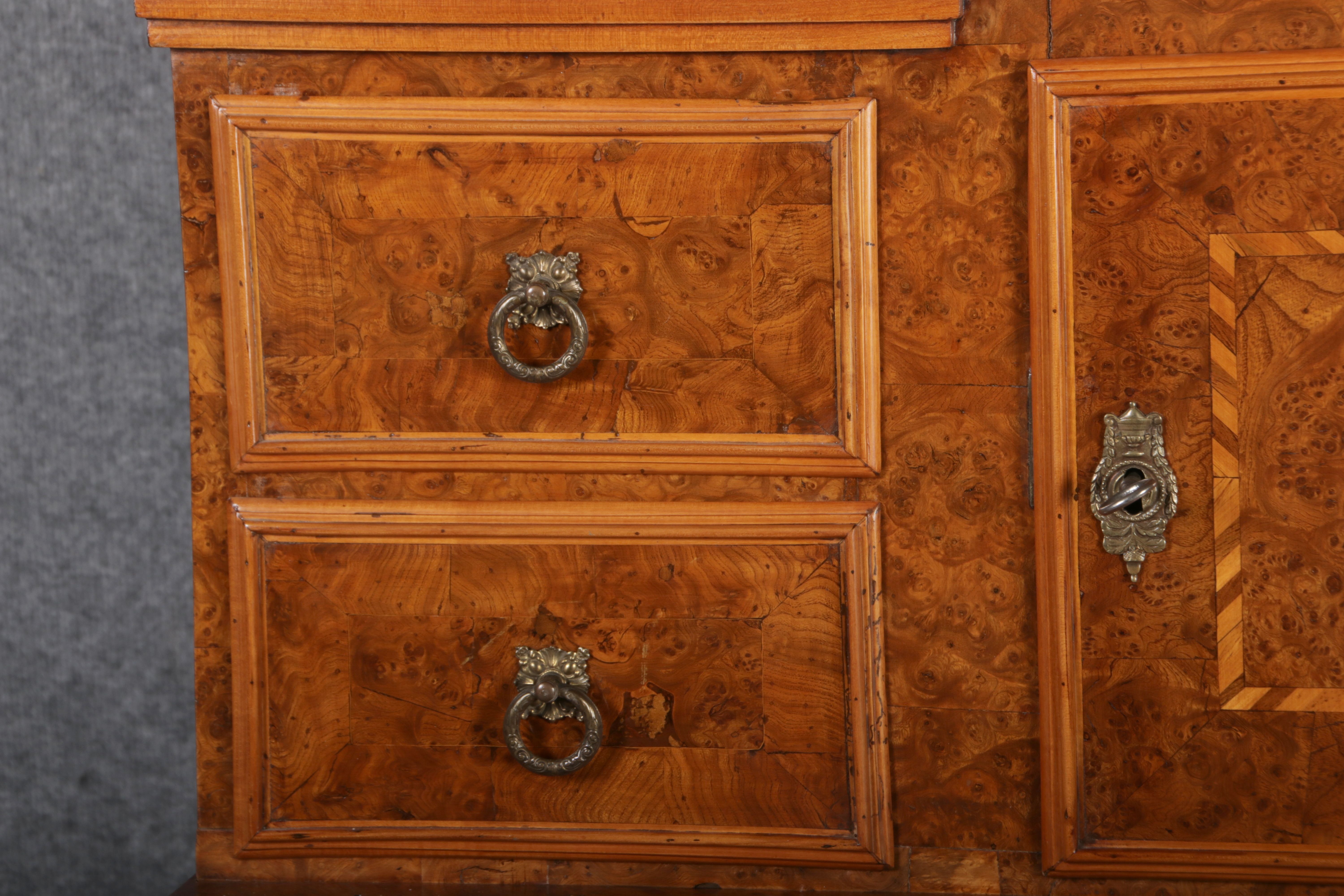 Konstruktion/construction: Der Sekretär besteht aus drei Teilen, Oberteil, Mittelteil und Unterteil.
