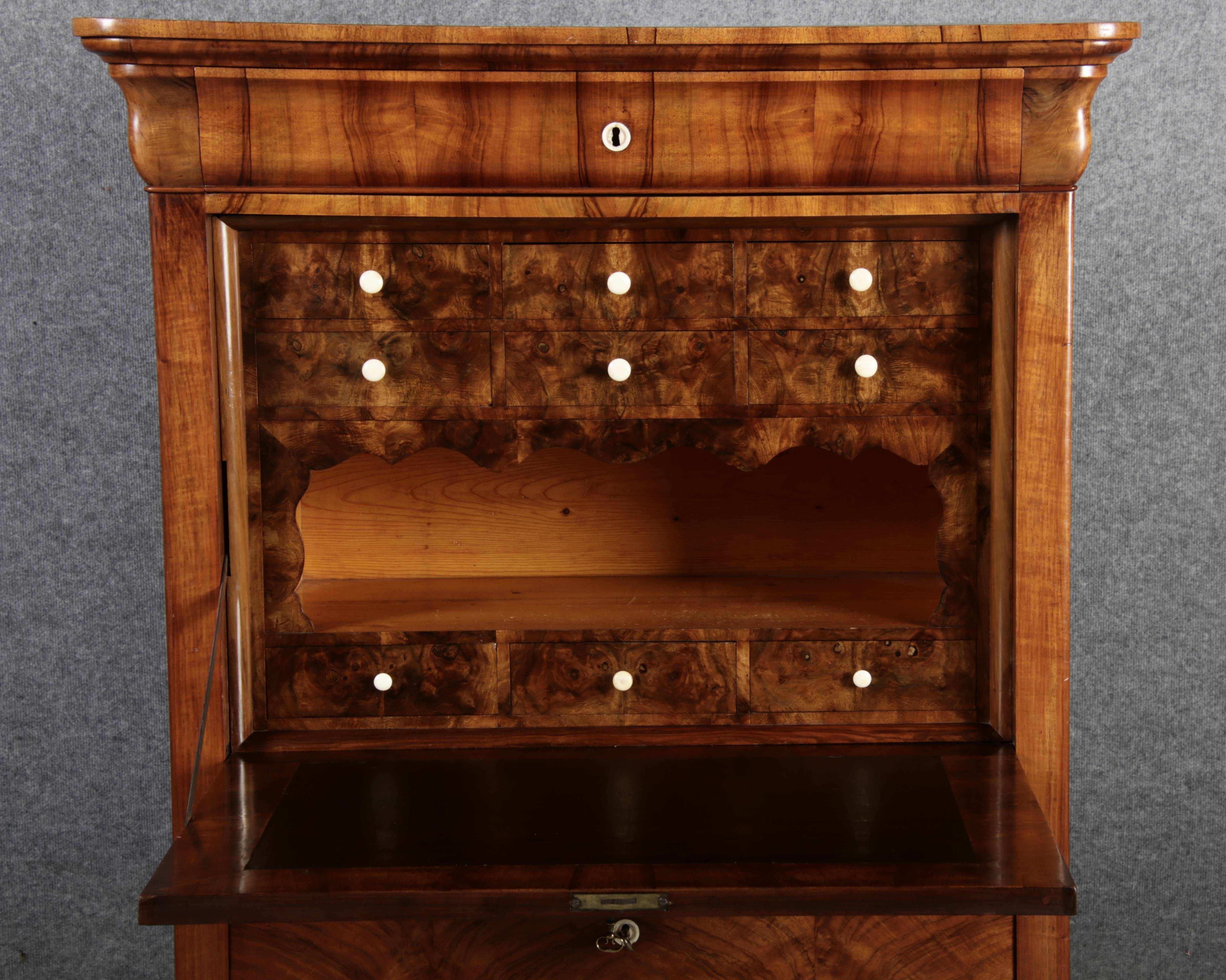 | Antiker Biedermeier- Louis Phillipe Sekretär Nussbaum um 1850 | ||