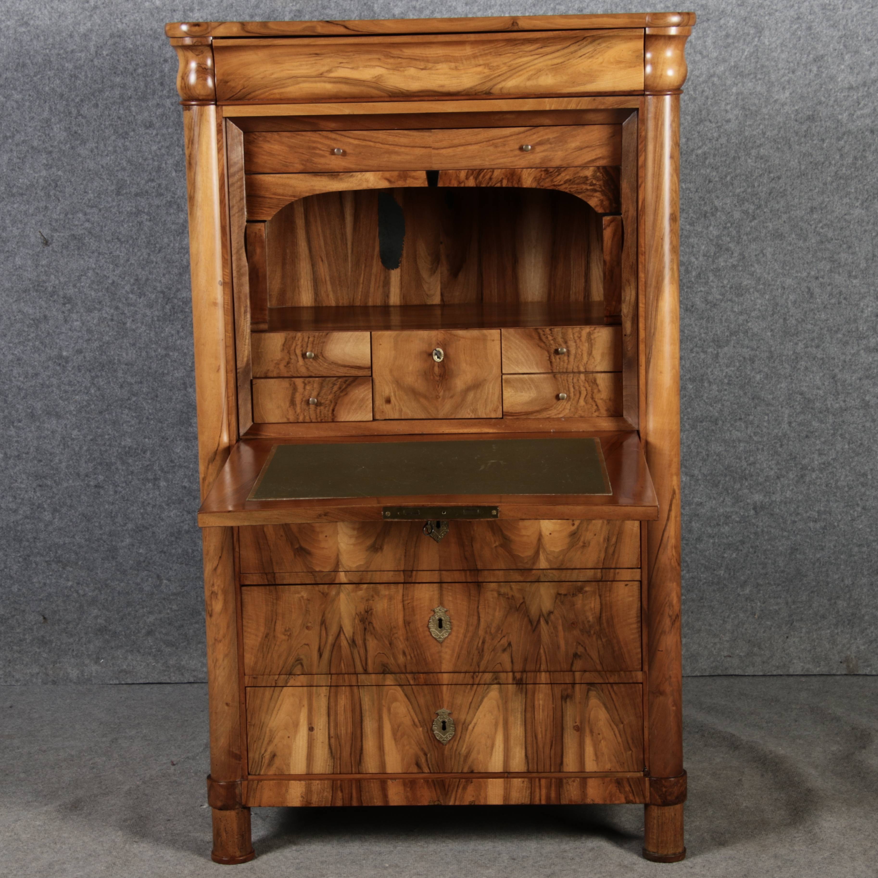 Biedermeier Louis Phillipe Sekretär um 1840 Nussbaum |