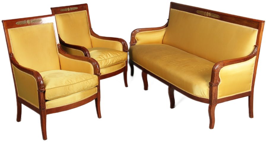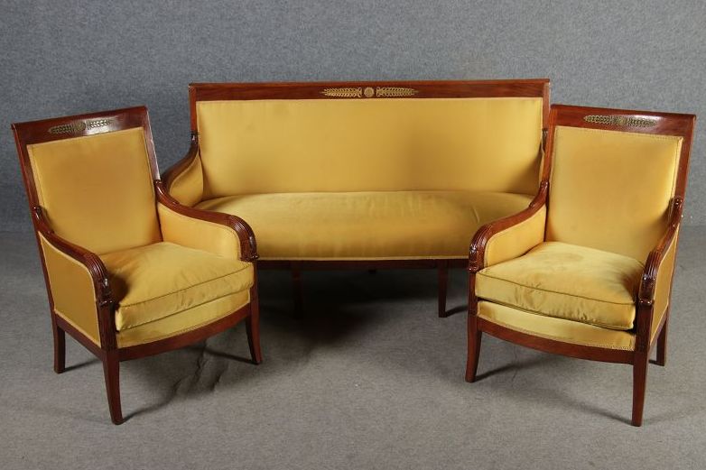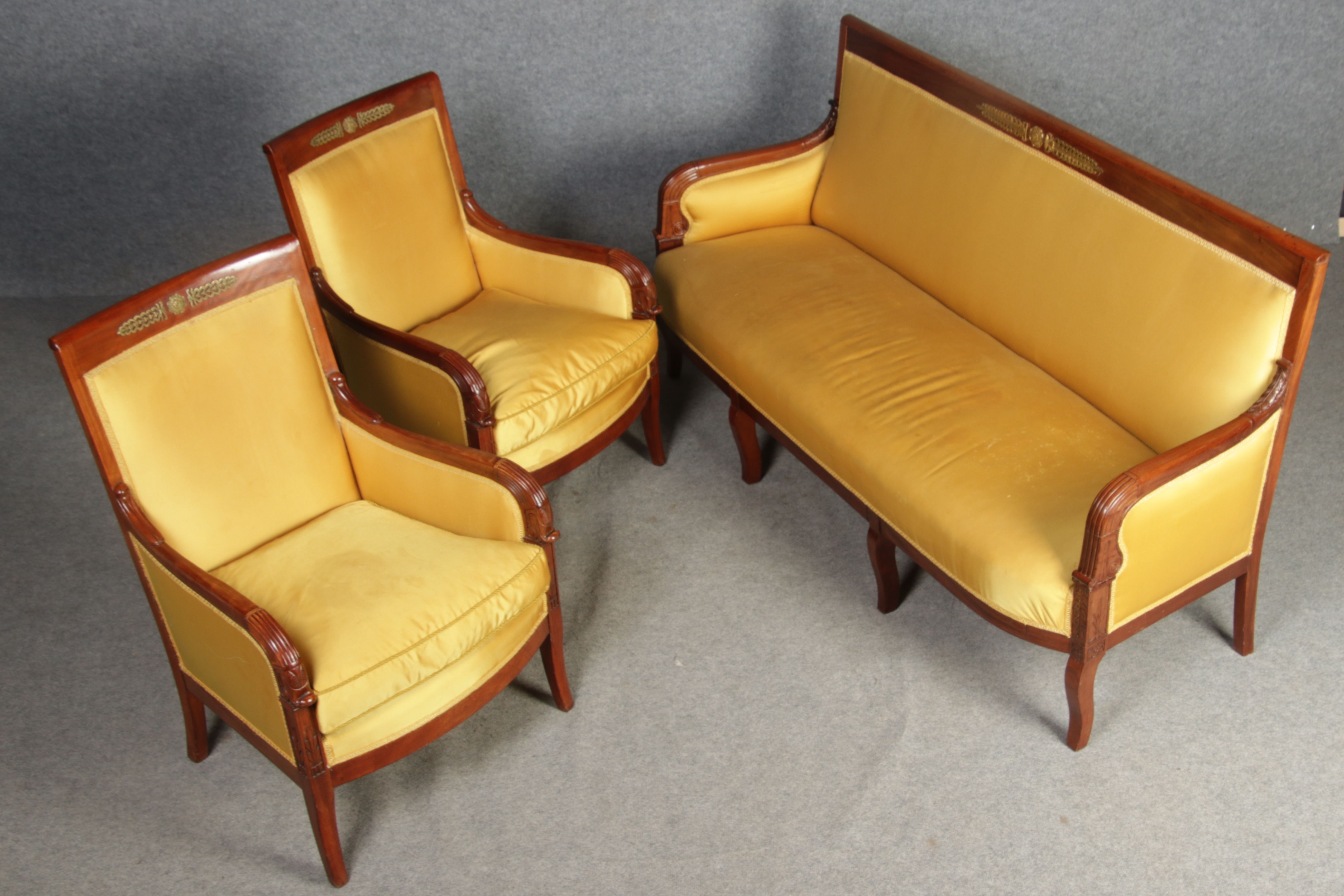Antike elegante Empire Sitzgruppe um 1810 Mahagoni, mit Bronze