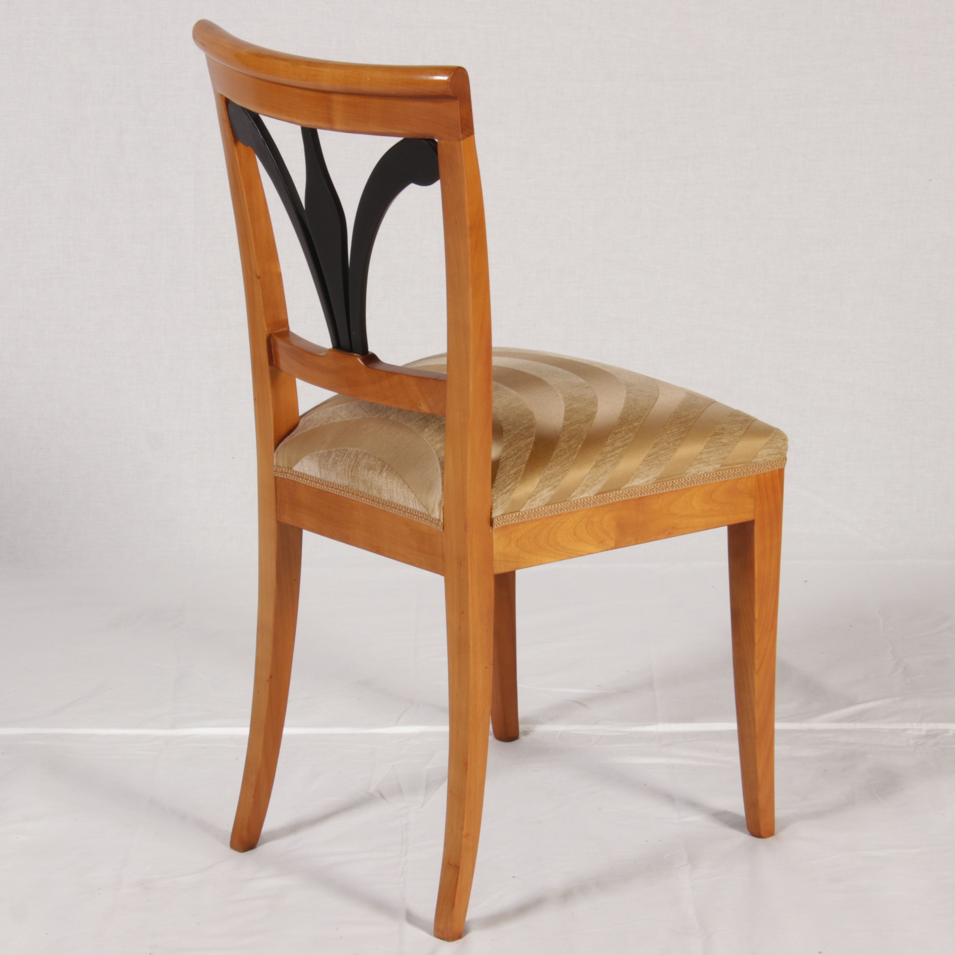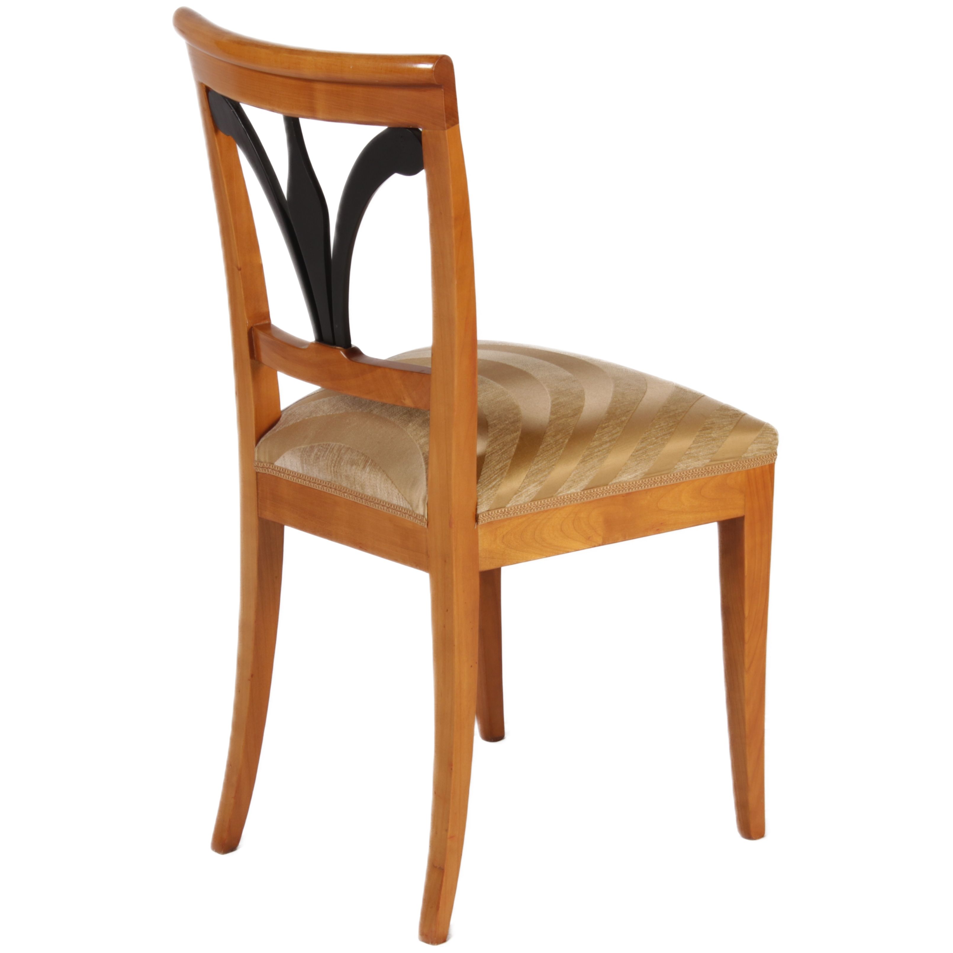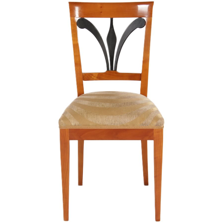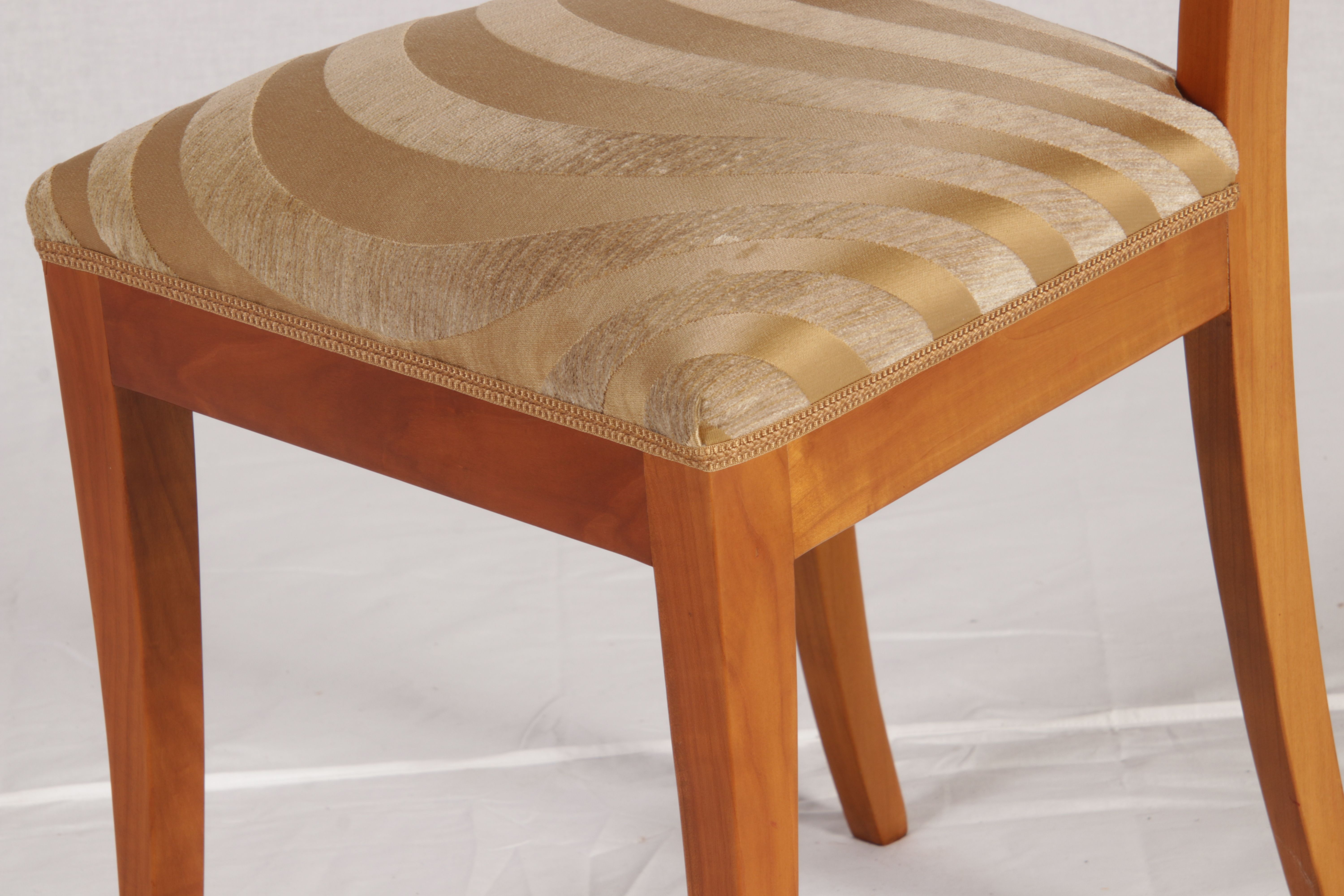 8 Antike Biedermeierstiel Stühle um 1920 Kirschbaum. Der Klassiker unter den Biedermeierstühlen. Die Stühle sind um 1920, aber ursprünglich ist der Stiel der Stühle 100 Jahre früher um 1820. |