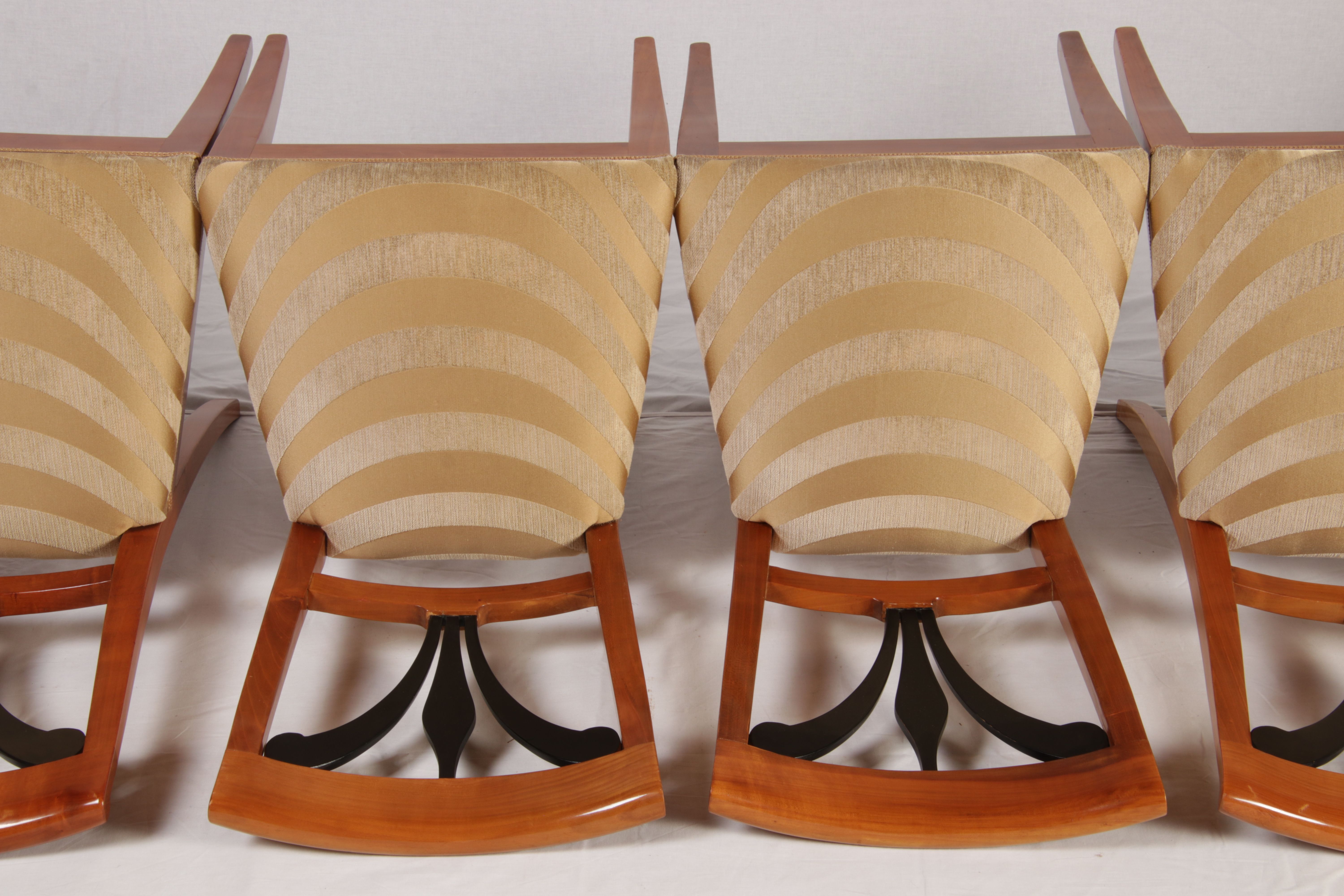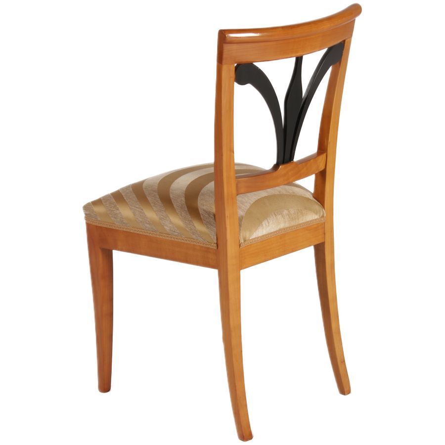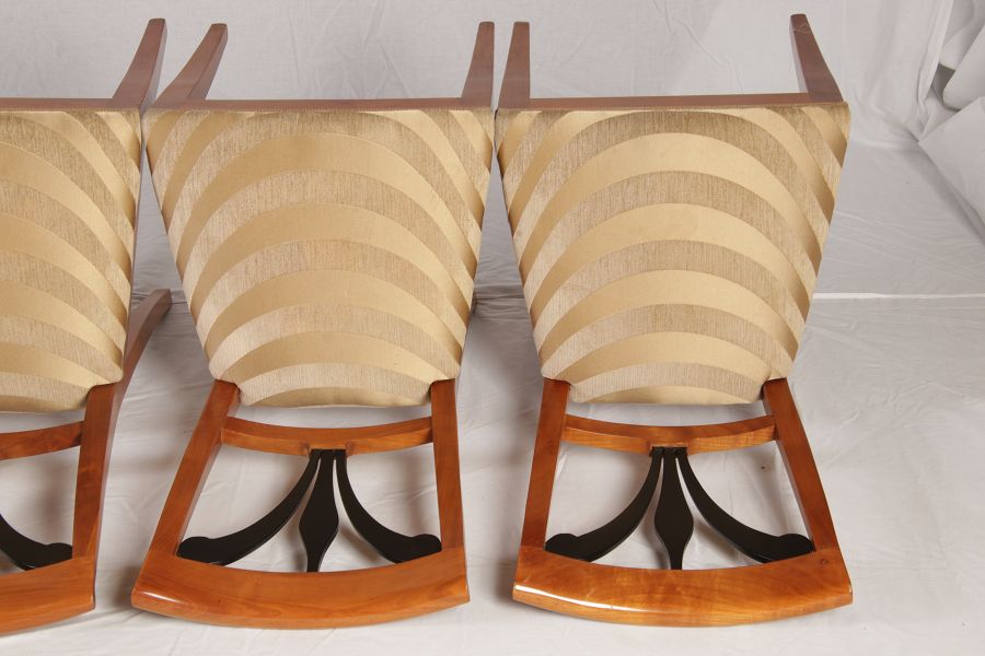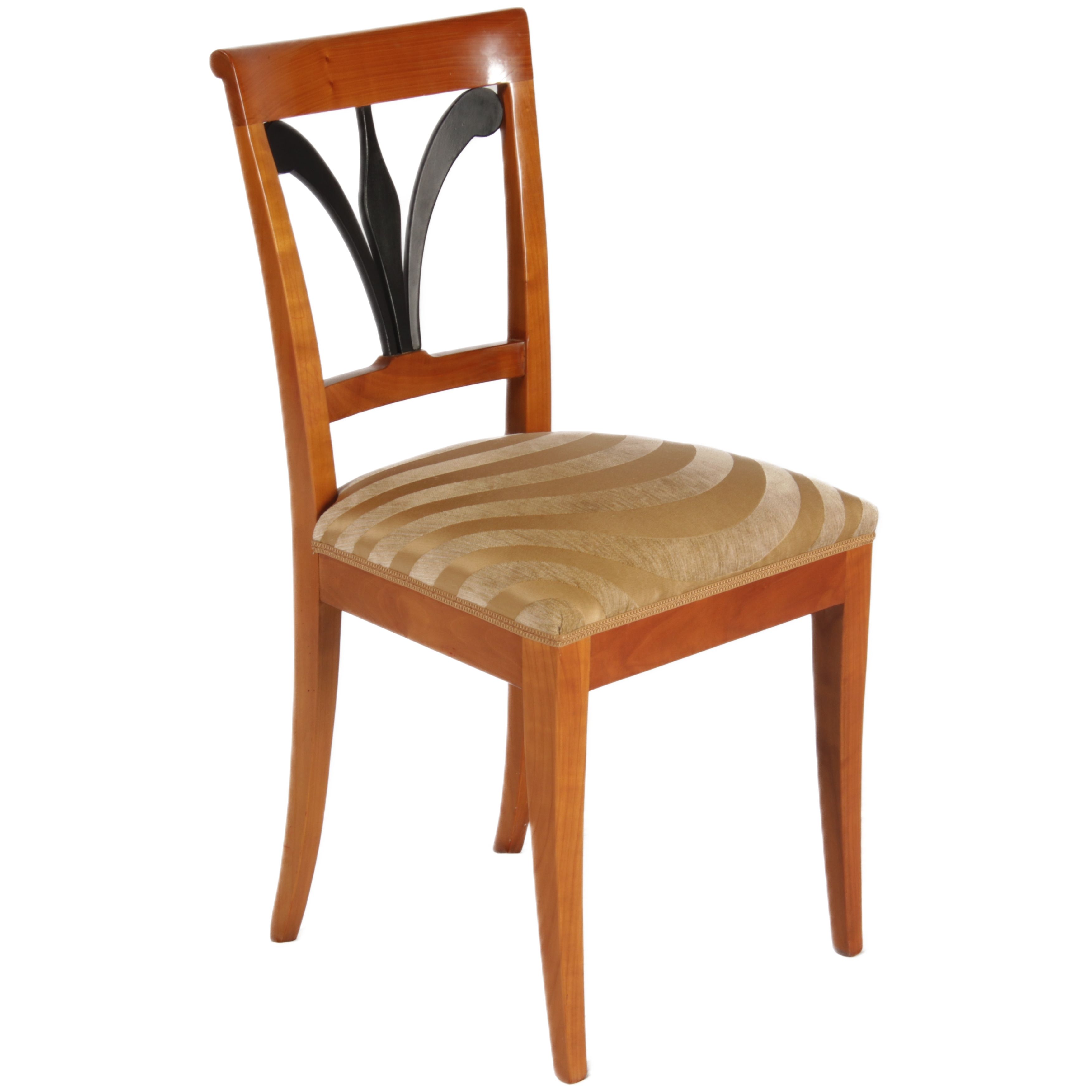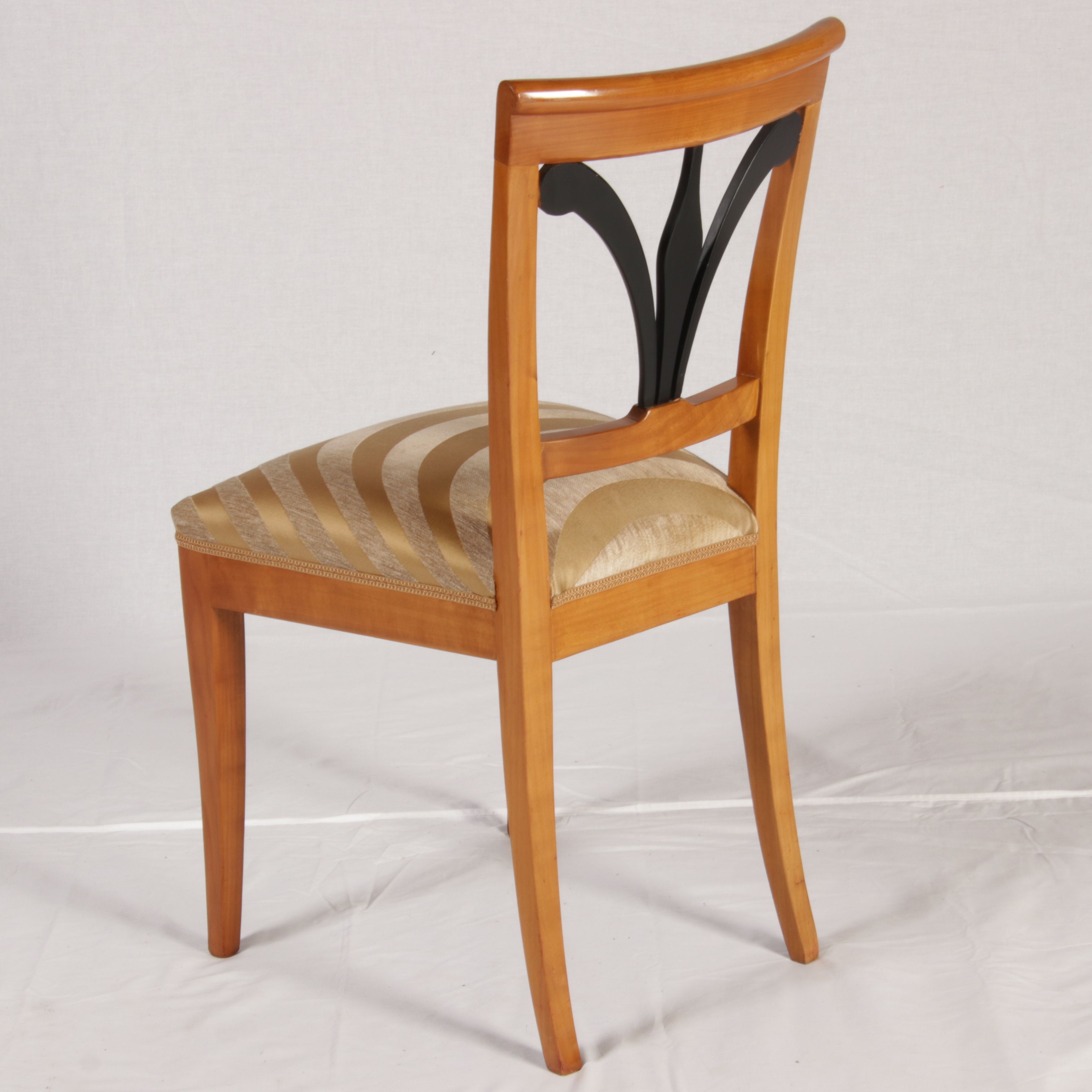 8 Antike Biedermeierstiel Stühle um 1920 Kirschbaum. Der Klassiker unter den Biedermeierstühlen. Die Stühle sind um 1920, aber ursprünglich ist der Stiel der Stühle 100 Jahre früher um 1820. |