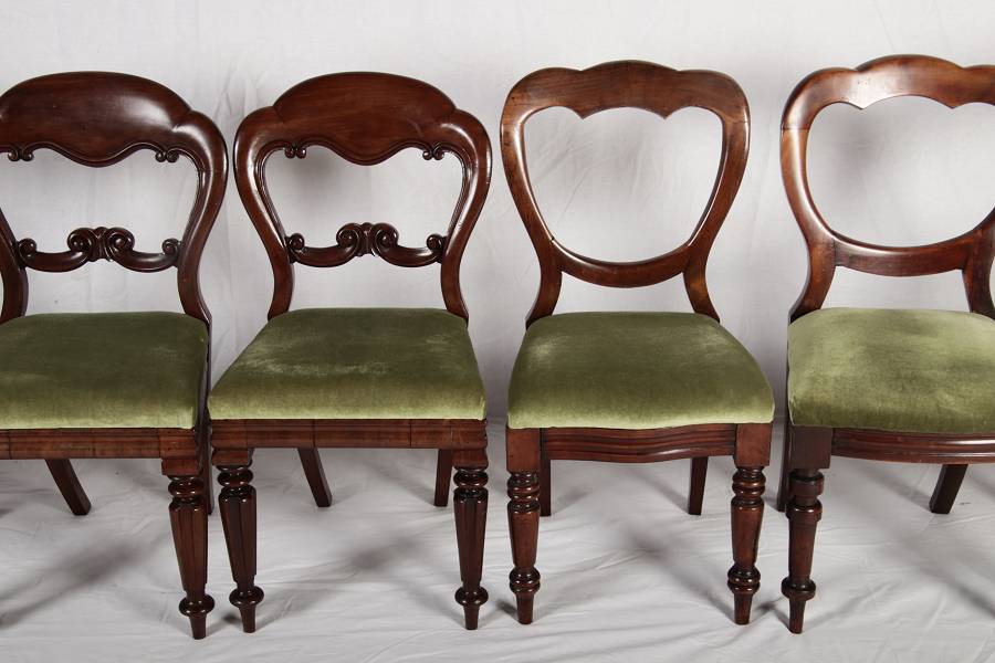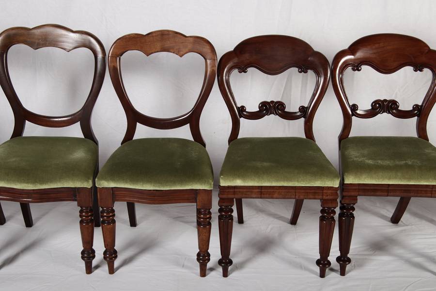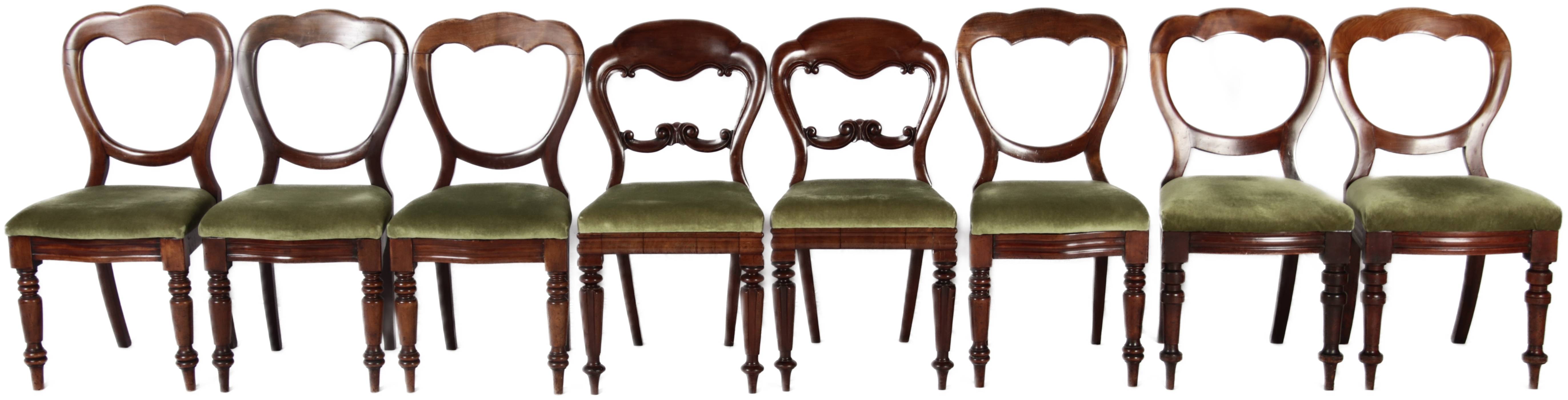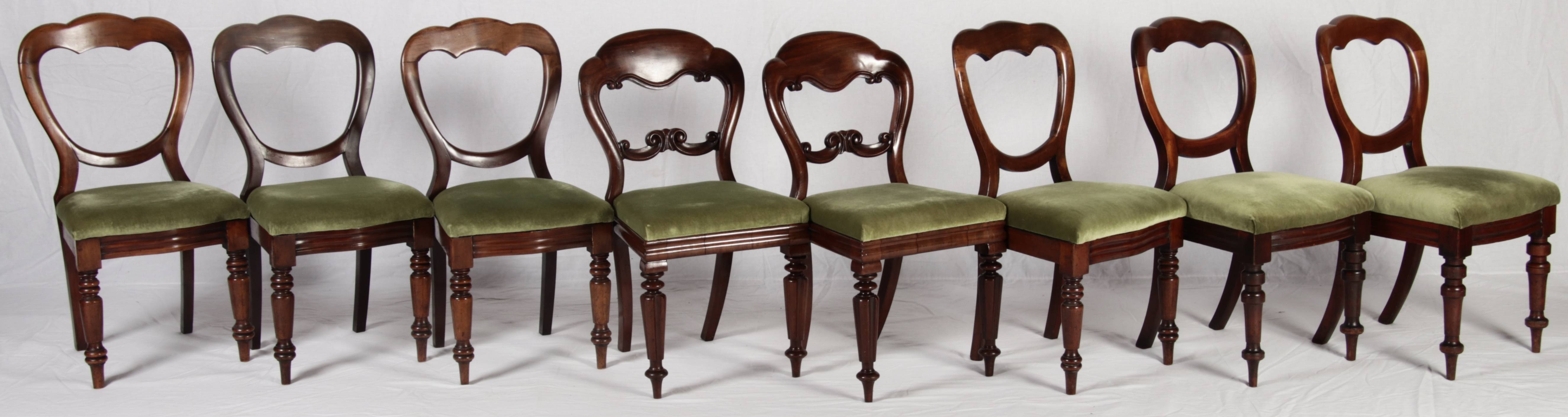 8 Antike viktorianische Stühle mit Ballonrücken aus Mahagoni 19 Jahrhundert. |