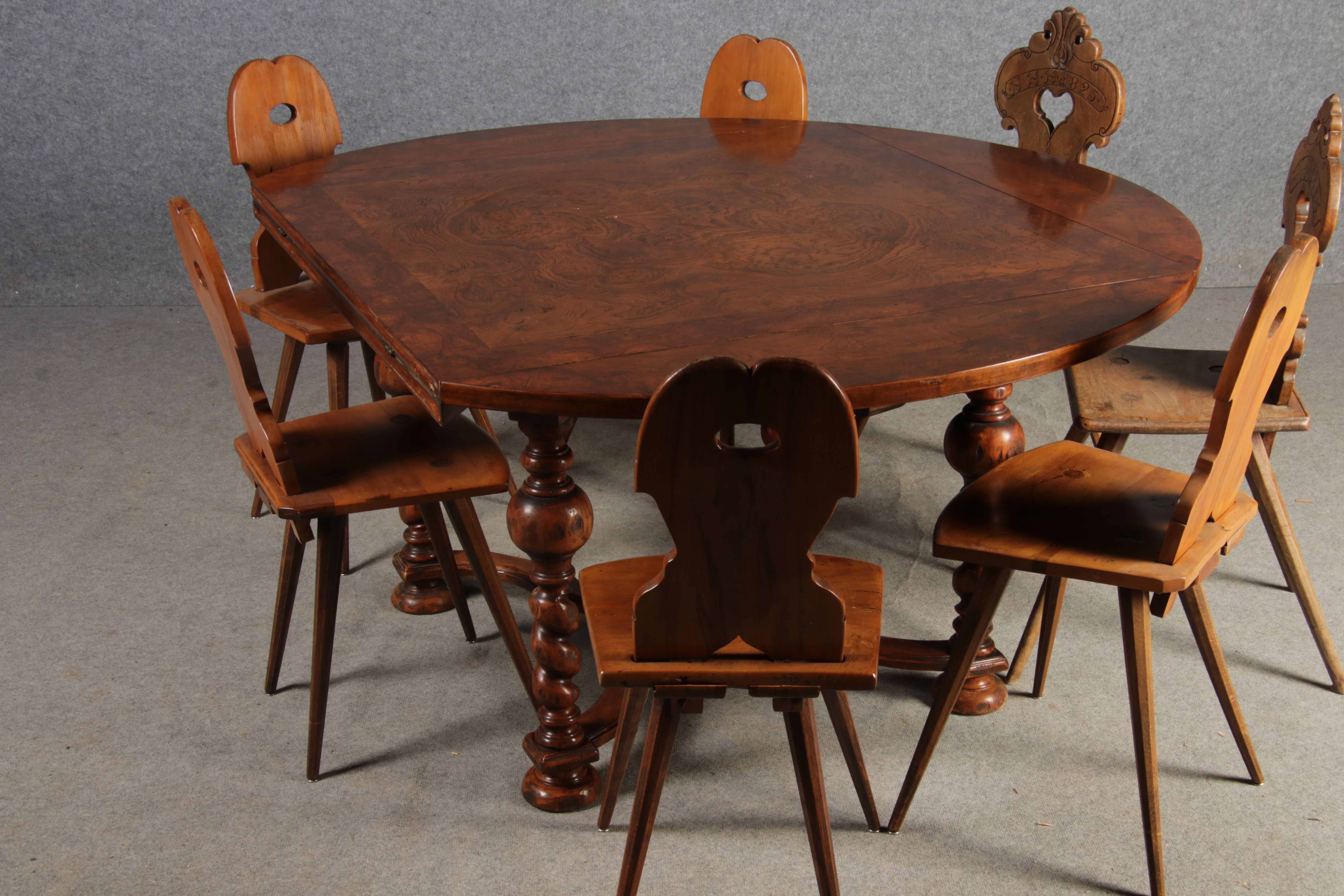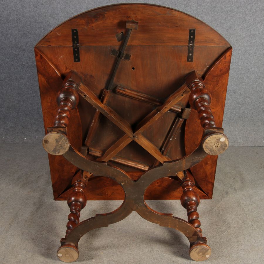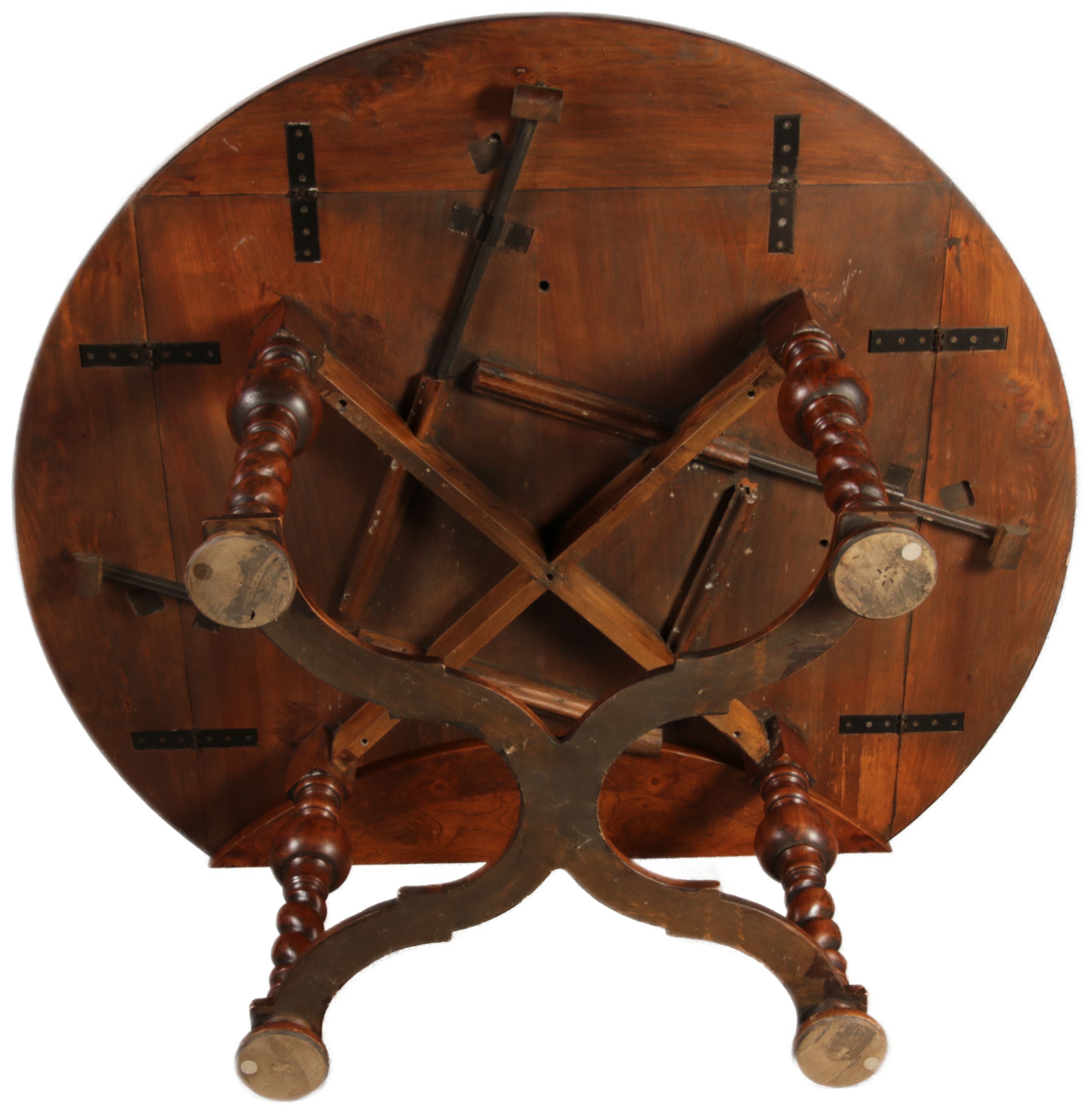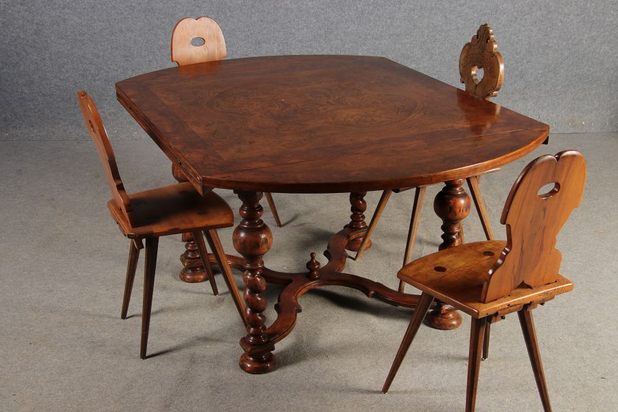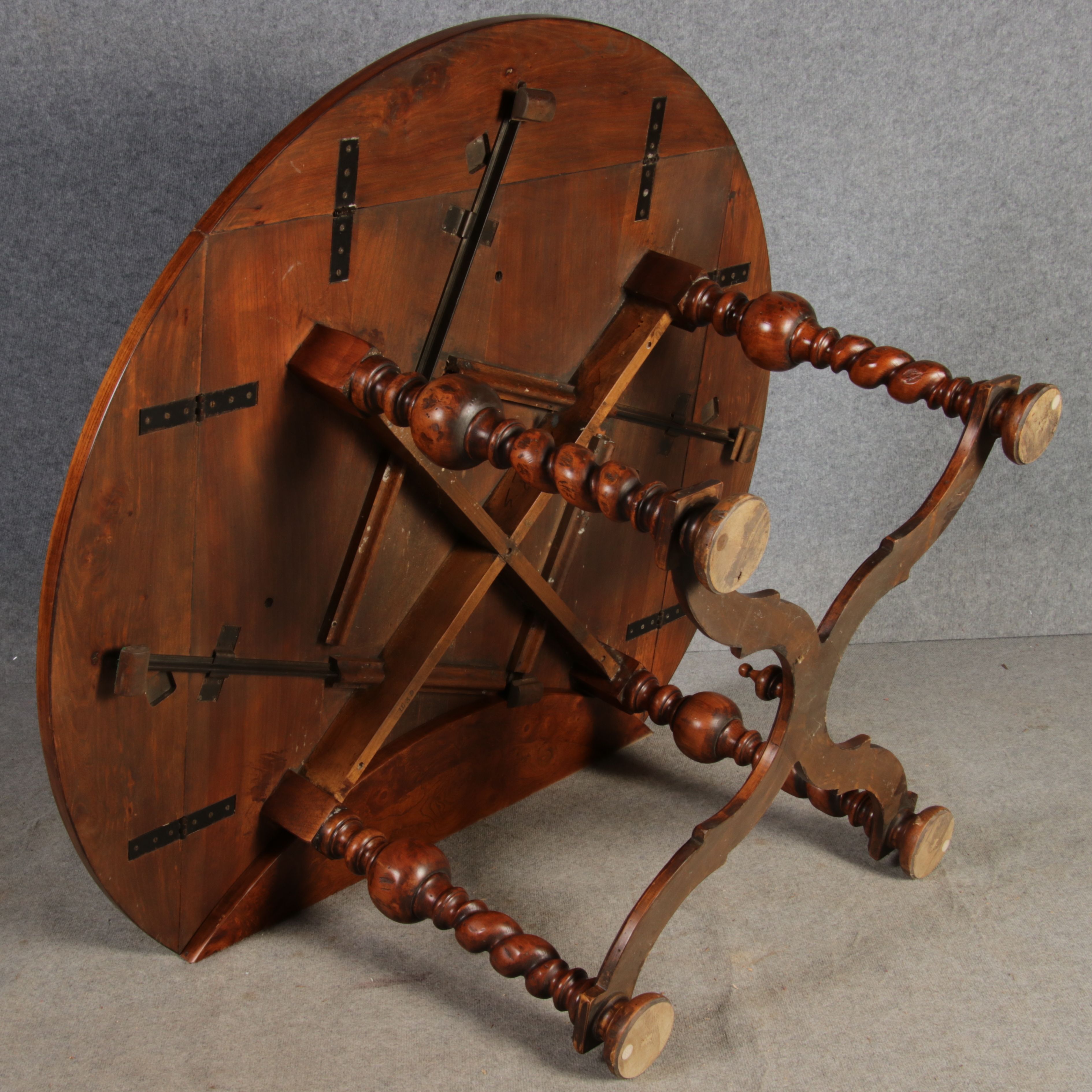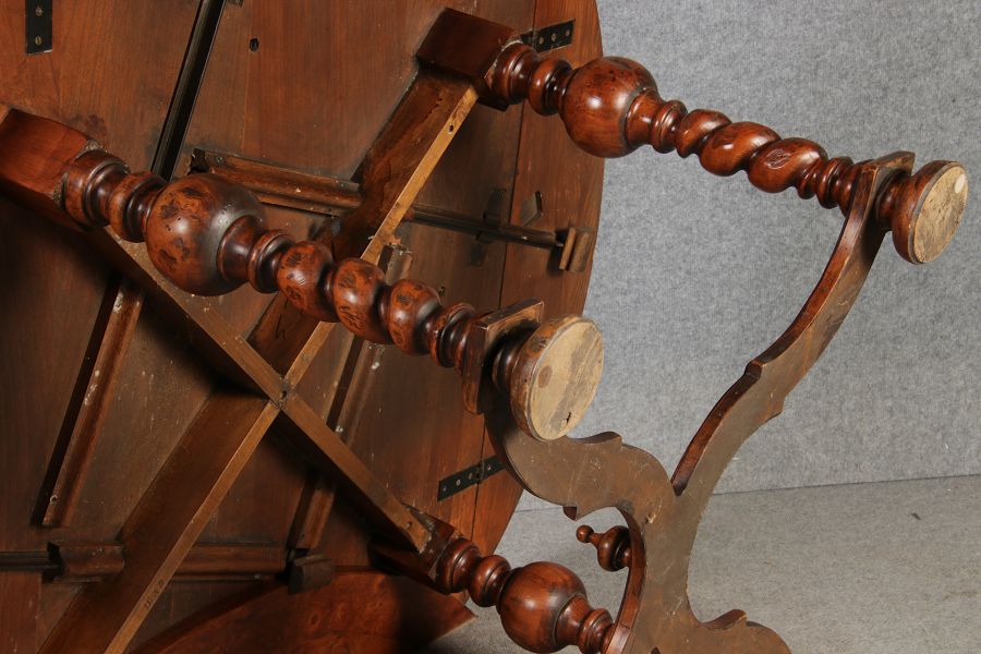 Masse/dimensions: Höhe/Height ca. 77,5 cm, Breite/Broad ca. 115 cm, Tiefe/depth ca.115 cm, Durchmesser ausgeklappt /Diameter unfolded ca. 163 cm. Holz, Schlüssel/wood,