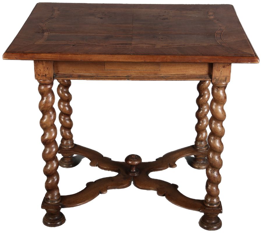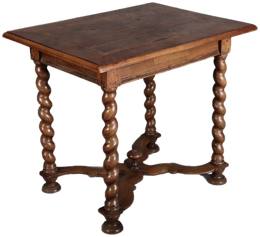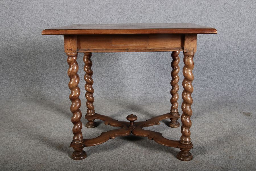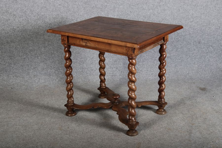 Antiker Kleiner Barocktisch gedrehte Säulen Intarsien Nussbaum