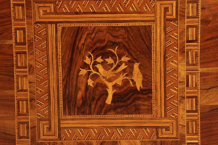 | Antiker Tarsia Rolo Tisch Nussbaum Italien 19. Jh Einlegearbeiten |