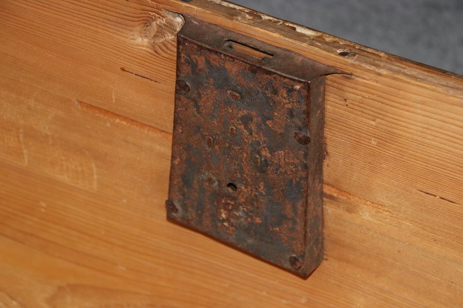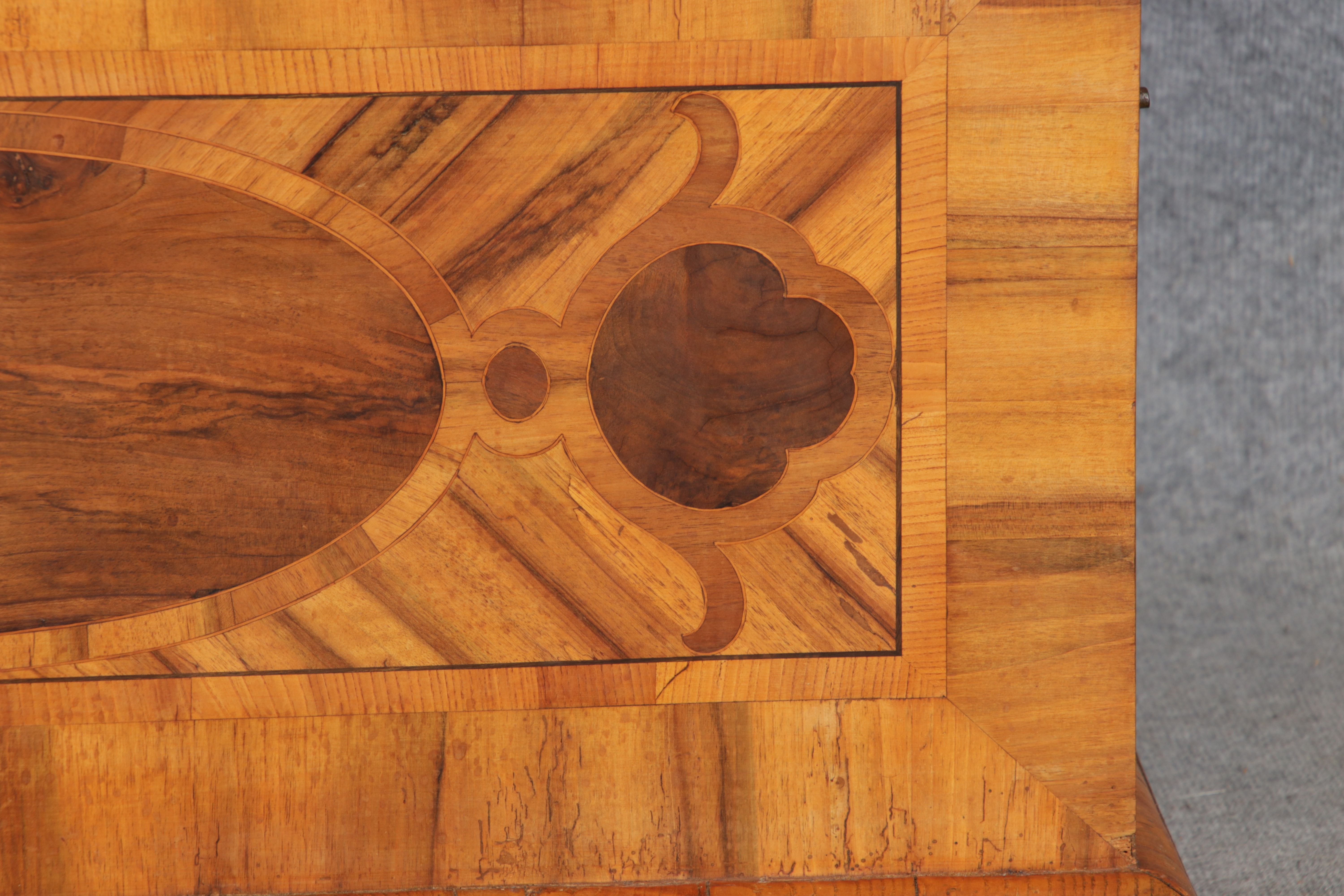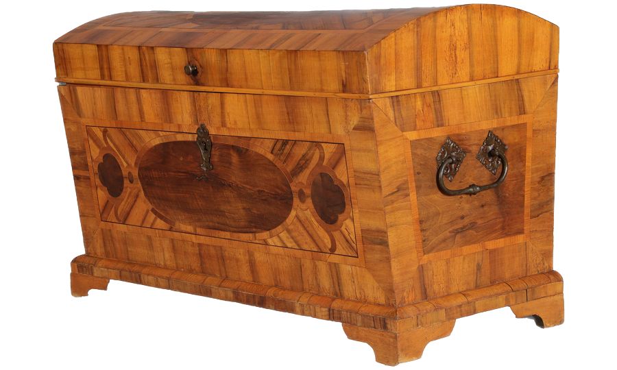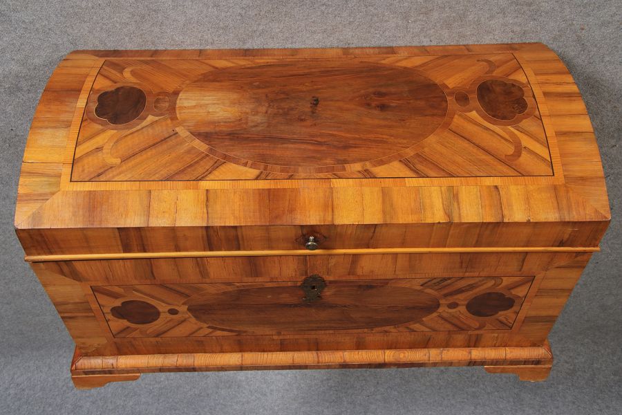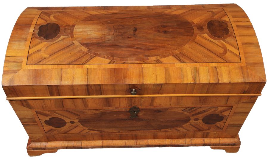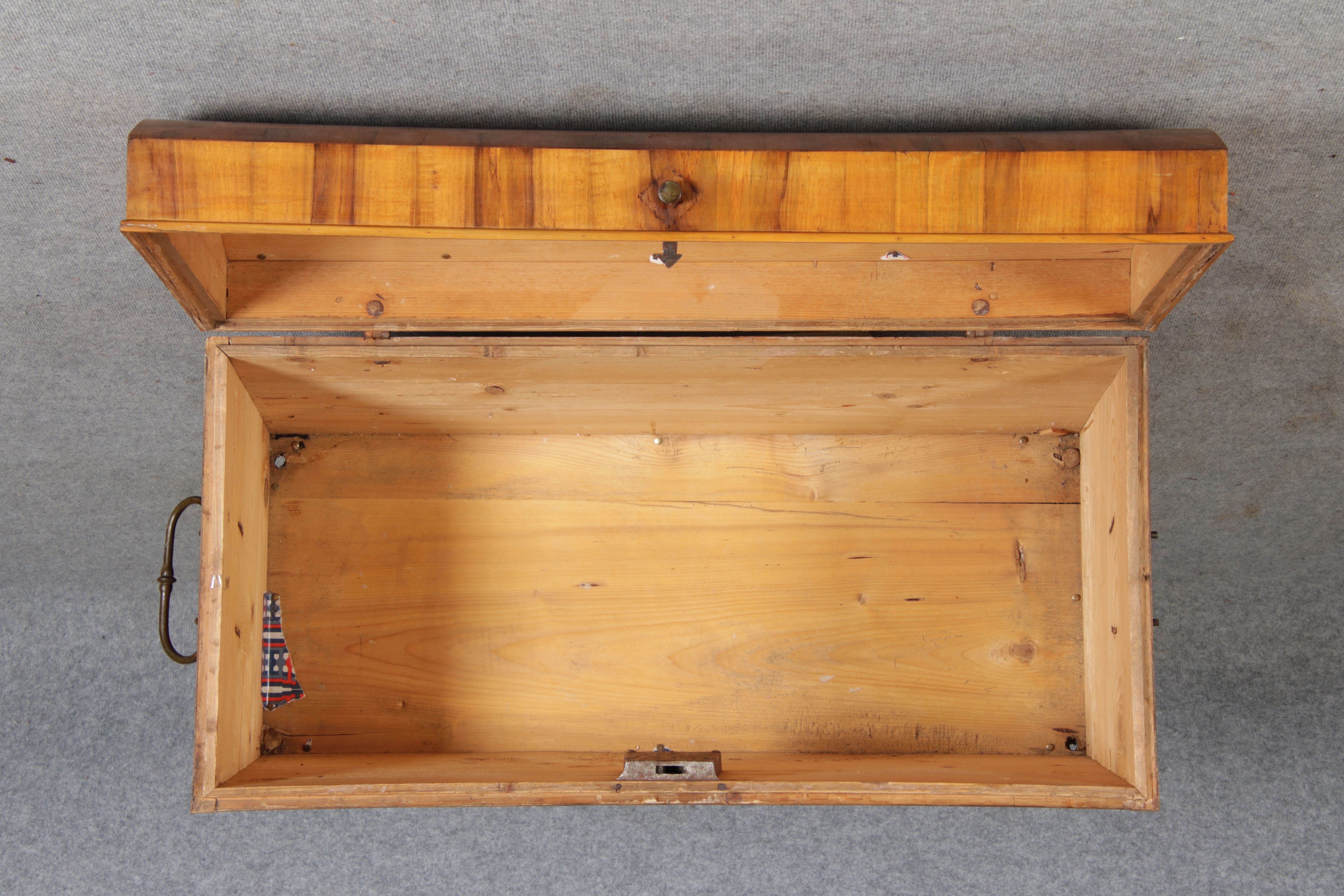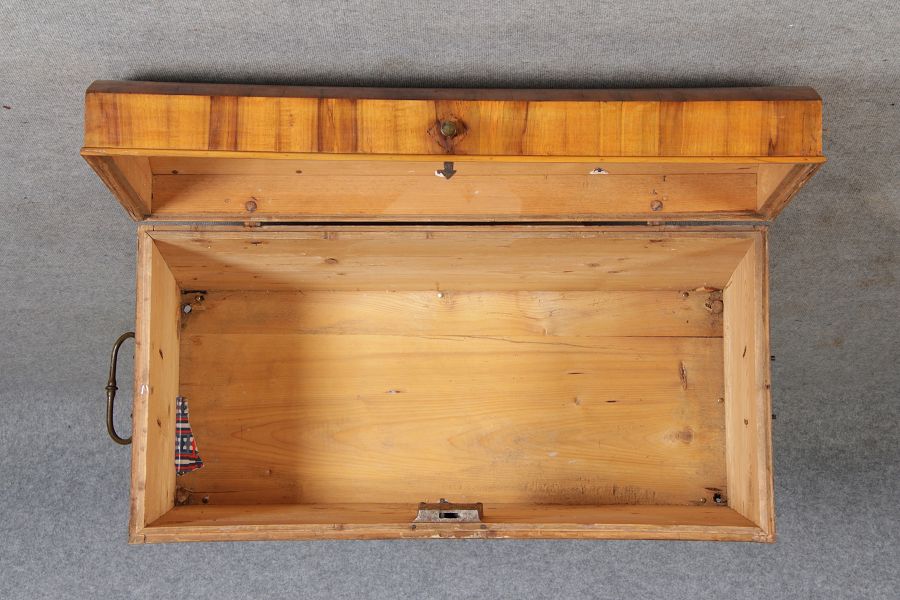 | Antike Biedermeier Truhe mit Einlegearbeiten Nussbaum