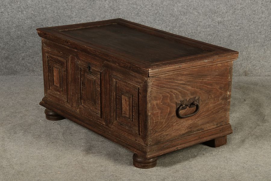 | Antike kleine Barocktruhe Eiche |