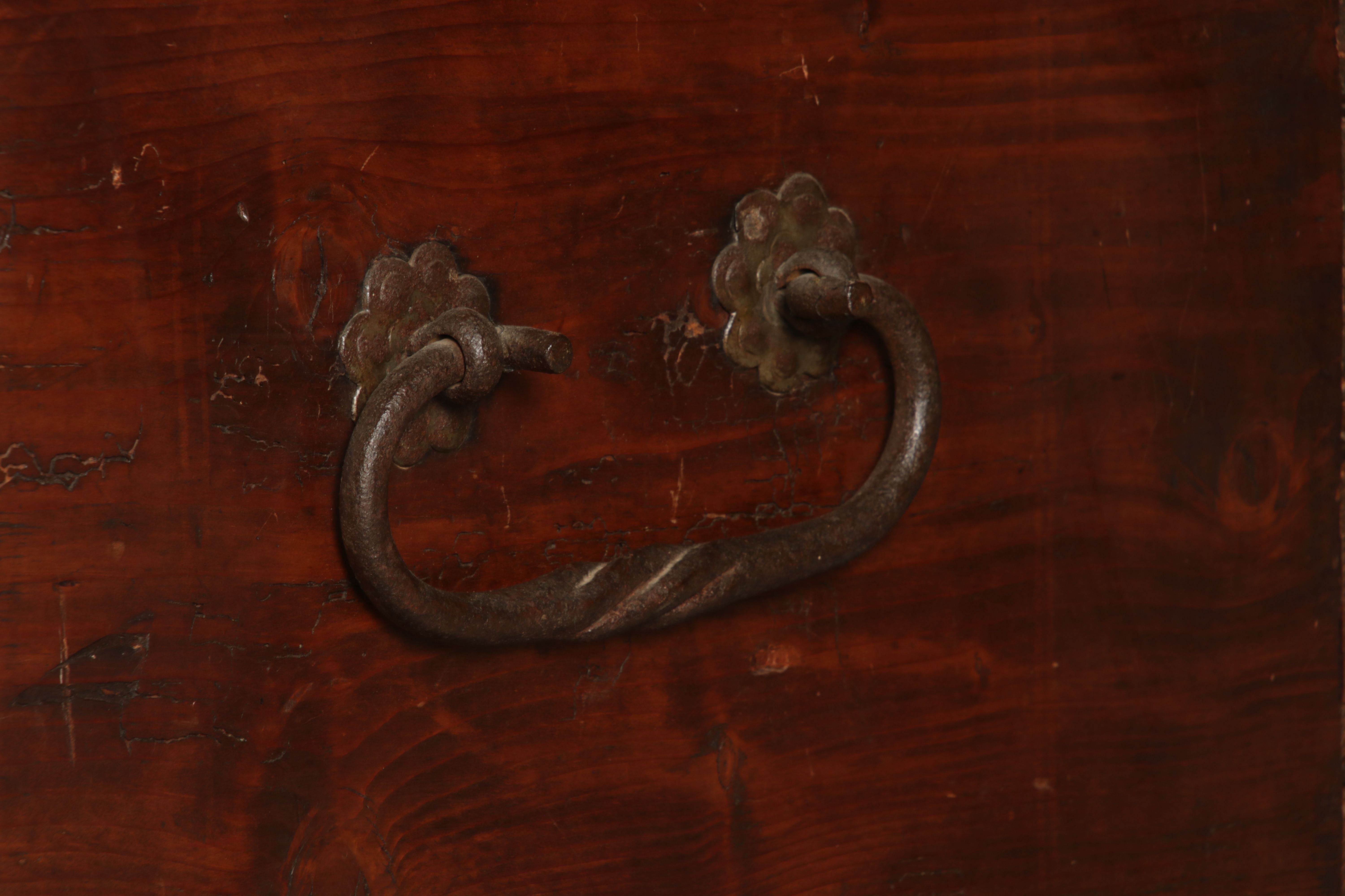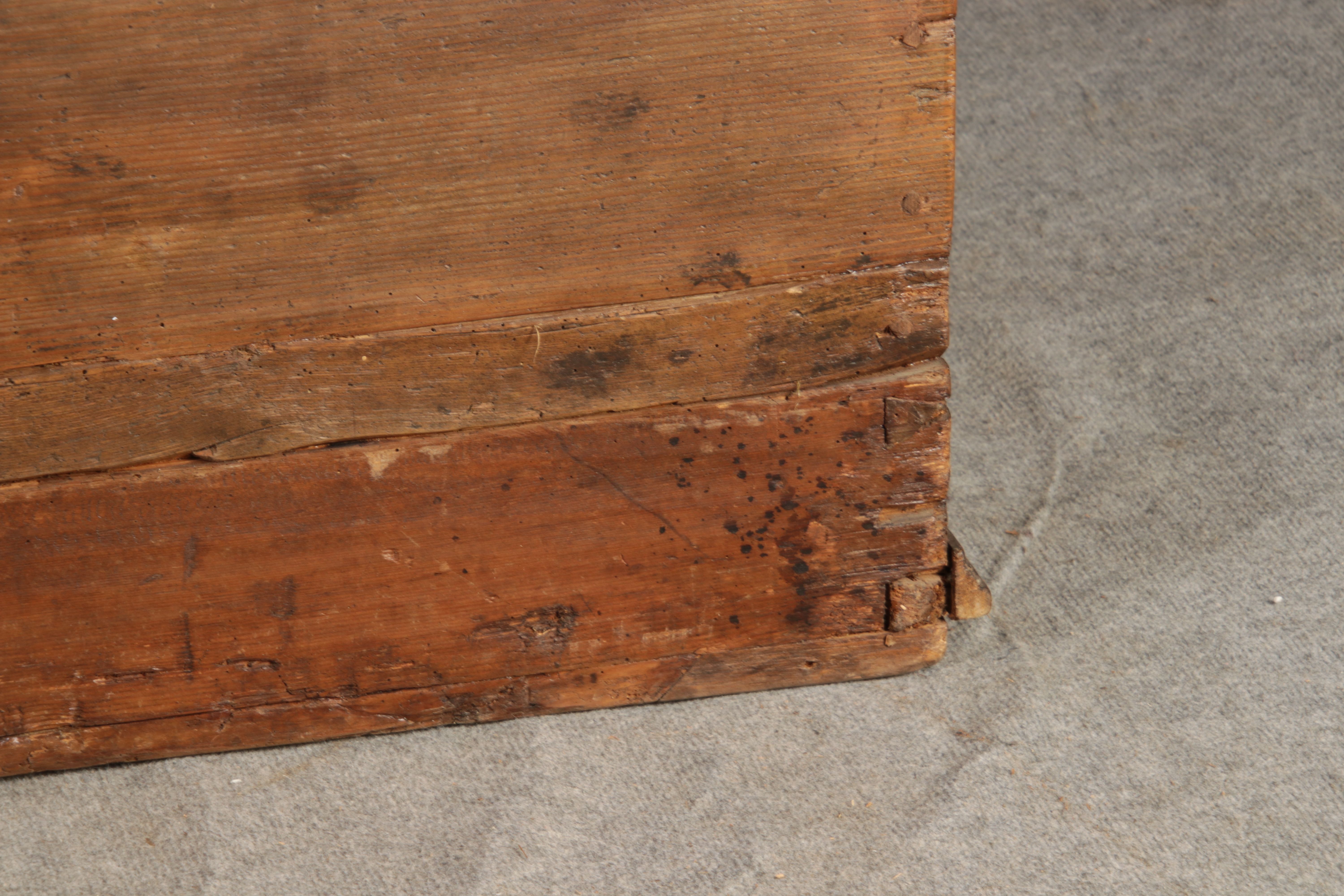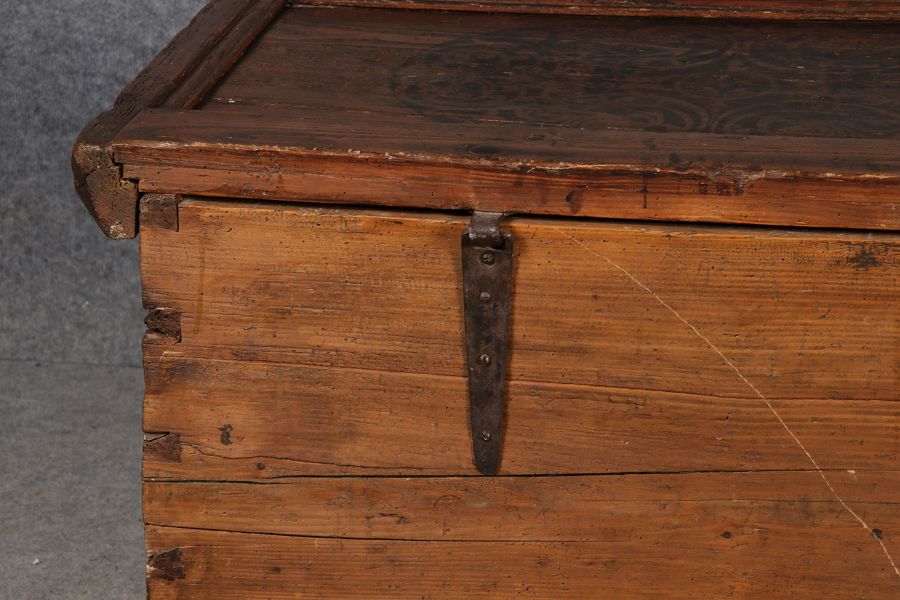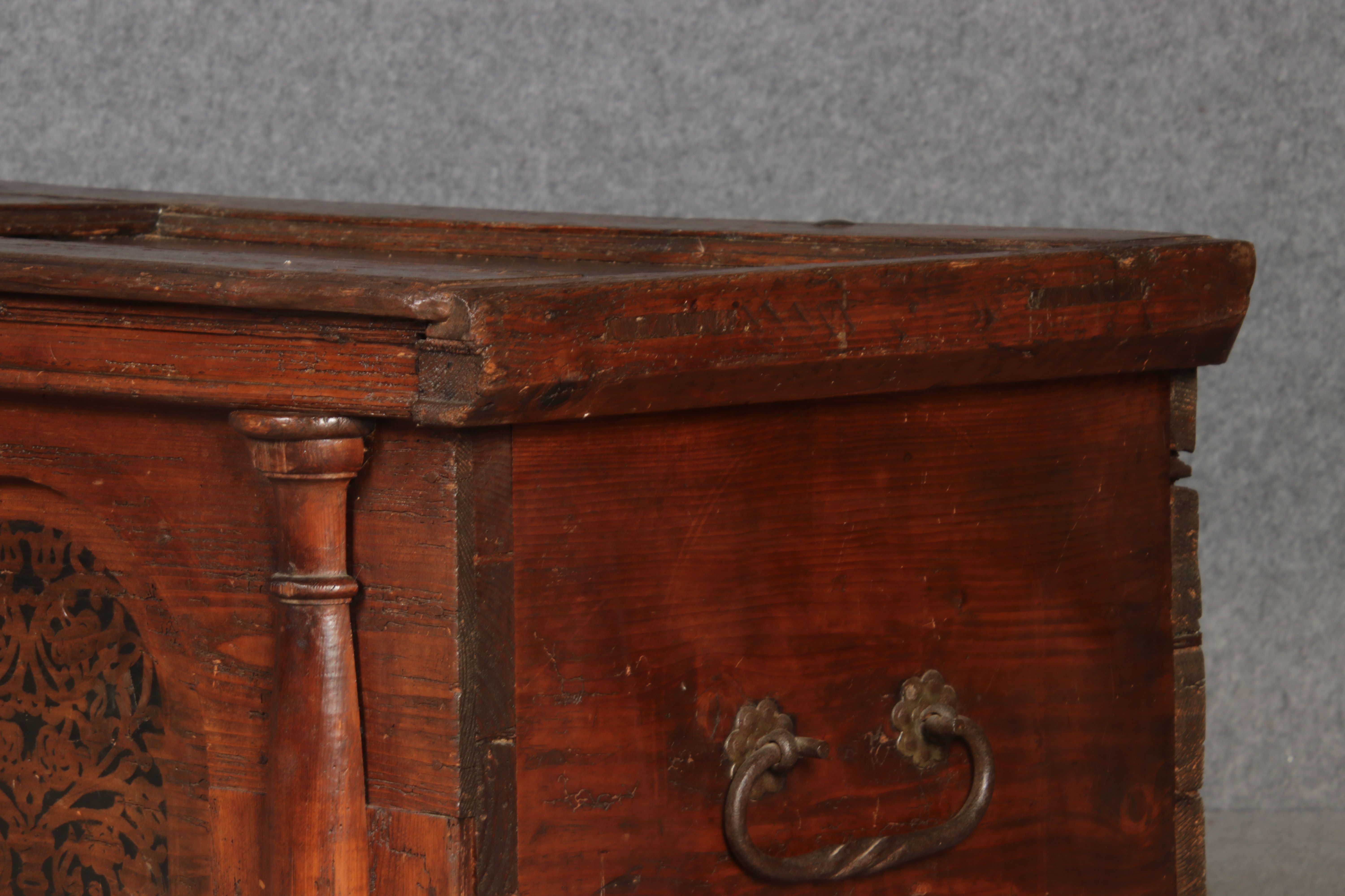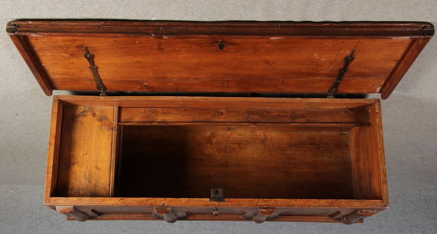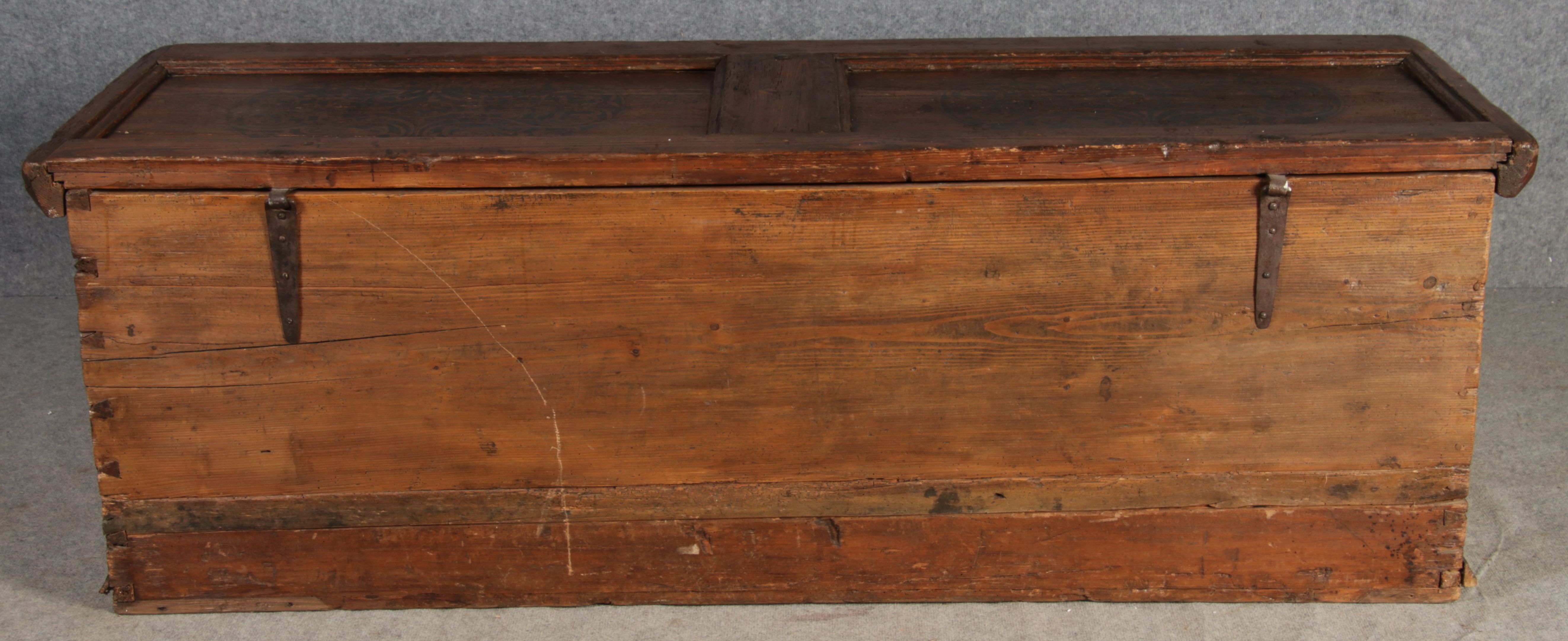 Antike 2 m lange Spät Renaissance früh Barock Truhe 17 Jh. Schwarz Malerei Eisenschloss |