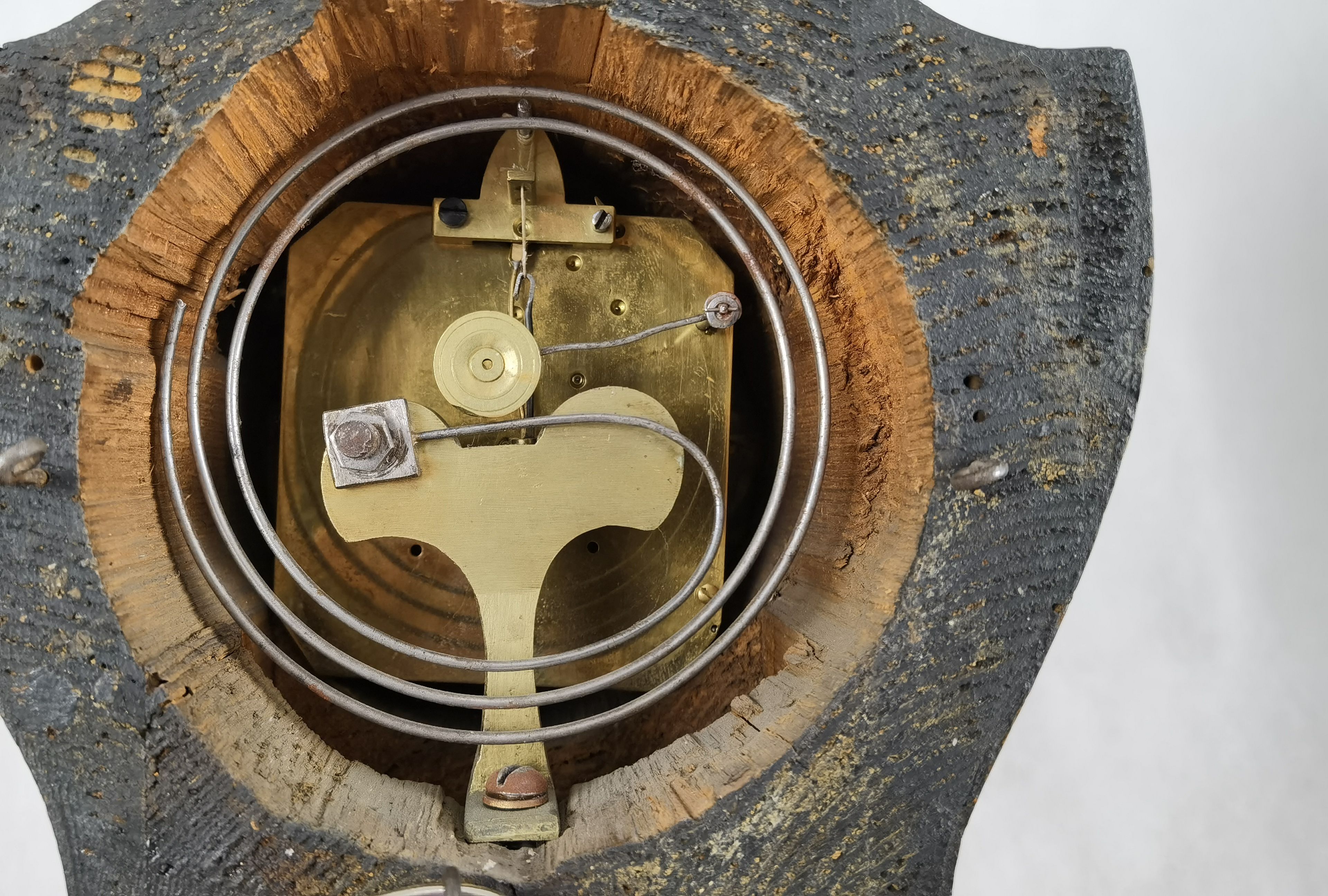 Blumenkörbchen auf dem Gehäuse. Das Uhrwerk hat Fadenaufhängung. |
