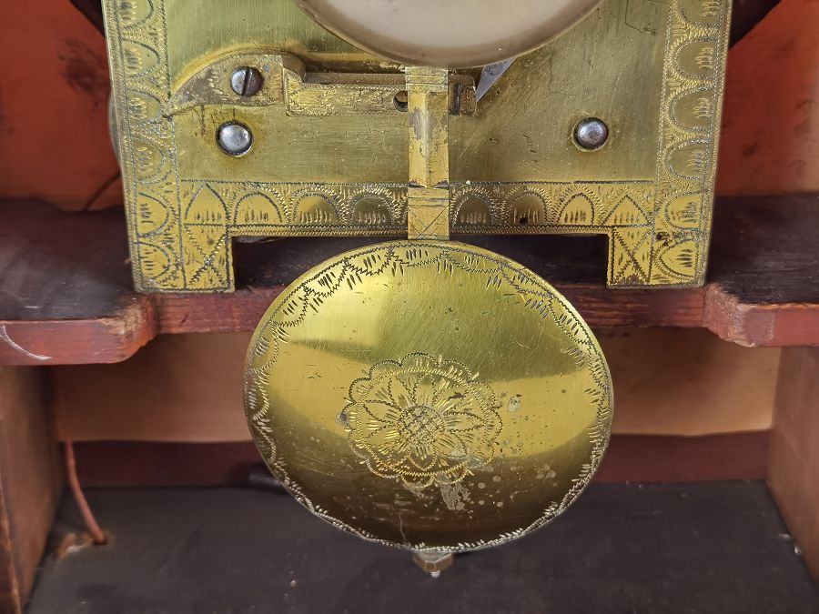 Uhren Spezifikationen Art der Uhr Pendüle Kamin- Uhr Tisch- Uhr Alter und Herkunft Alter ist um 1820 und die Herkunft ist England London Gehäuse Material Messing Holz Mahagoni Masse Uhr Höhe ca. 53 cm, Breite ca. 30 cm, Tiefe ca. 17 cm Pendel- Aufhängung Pendelfeder Schlagwerk 1/1 Schlag auf Glocke mit Repetition Nachtmodus Zustand Gehäuse Guter Zustand mit Gebrauchsspuren, teilweise ergänzt, beschädigt, mit Fehlstellen, Schlösse fehlen. Bilder sind Bestandteil der Auktion. Zustand Uhrwerk Guter Zustand mit Gebrauchsspuren. Uhrwerk läuft einwandfrei. Bilder sind Bestandteil der Auktion. |