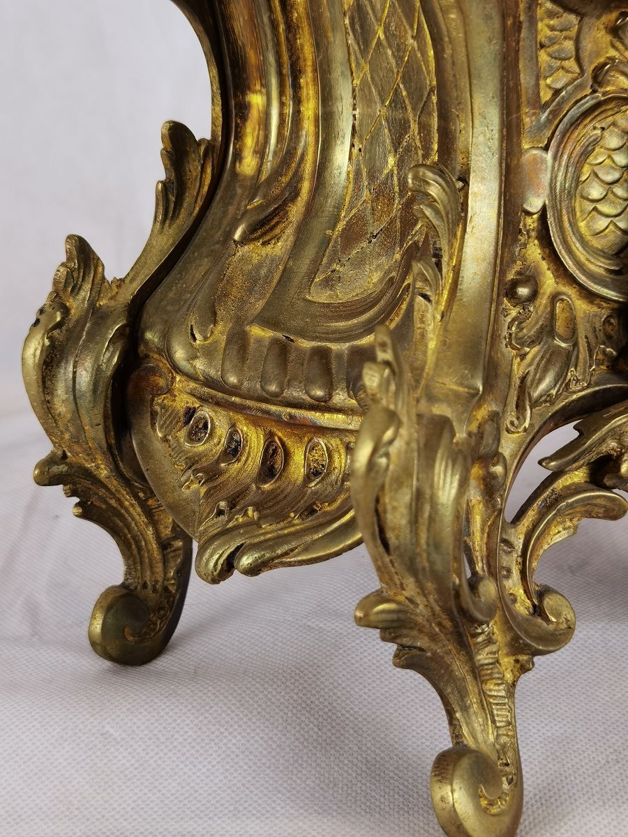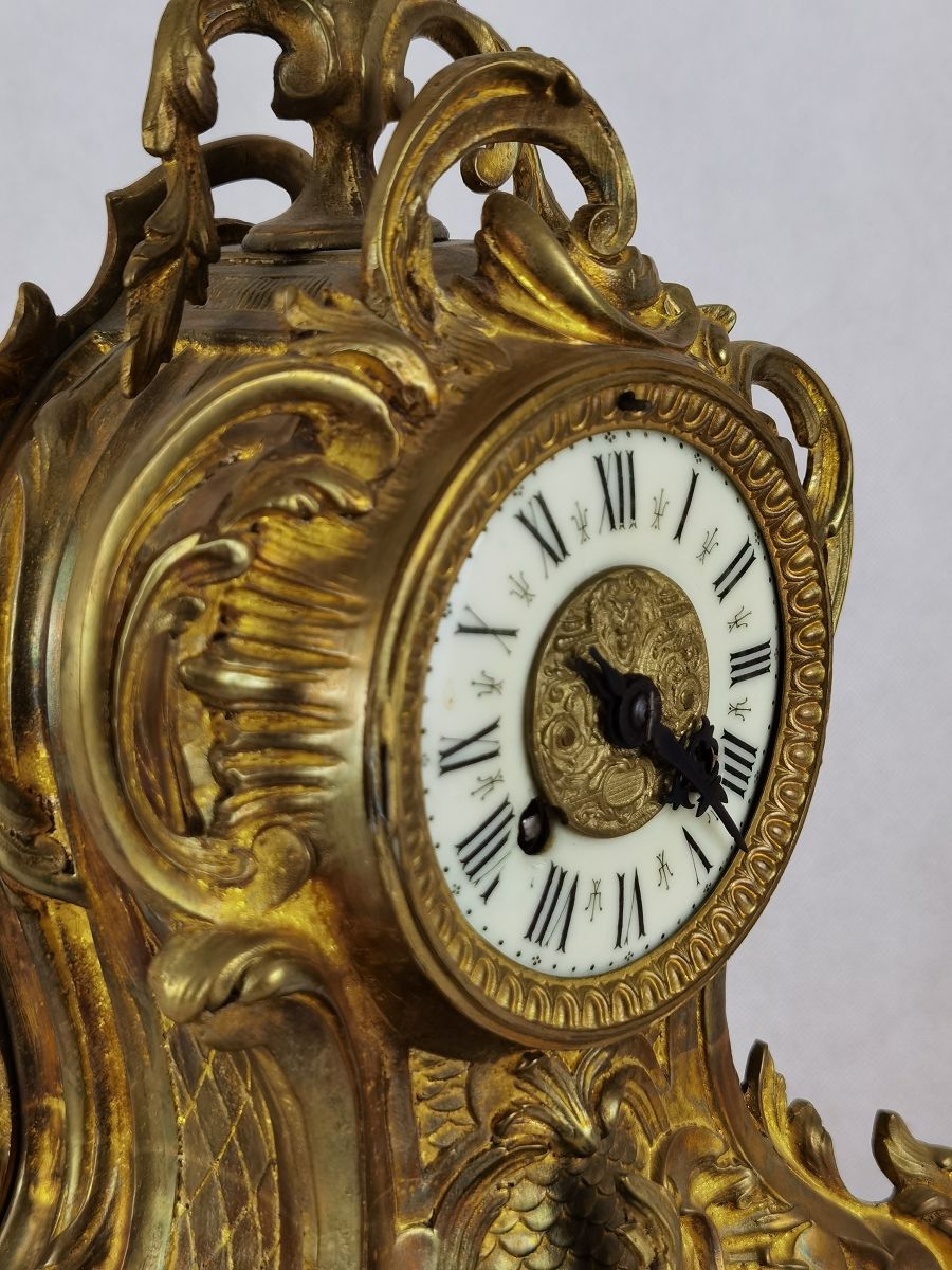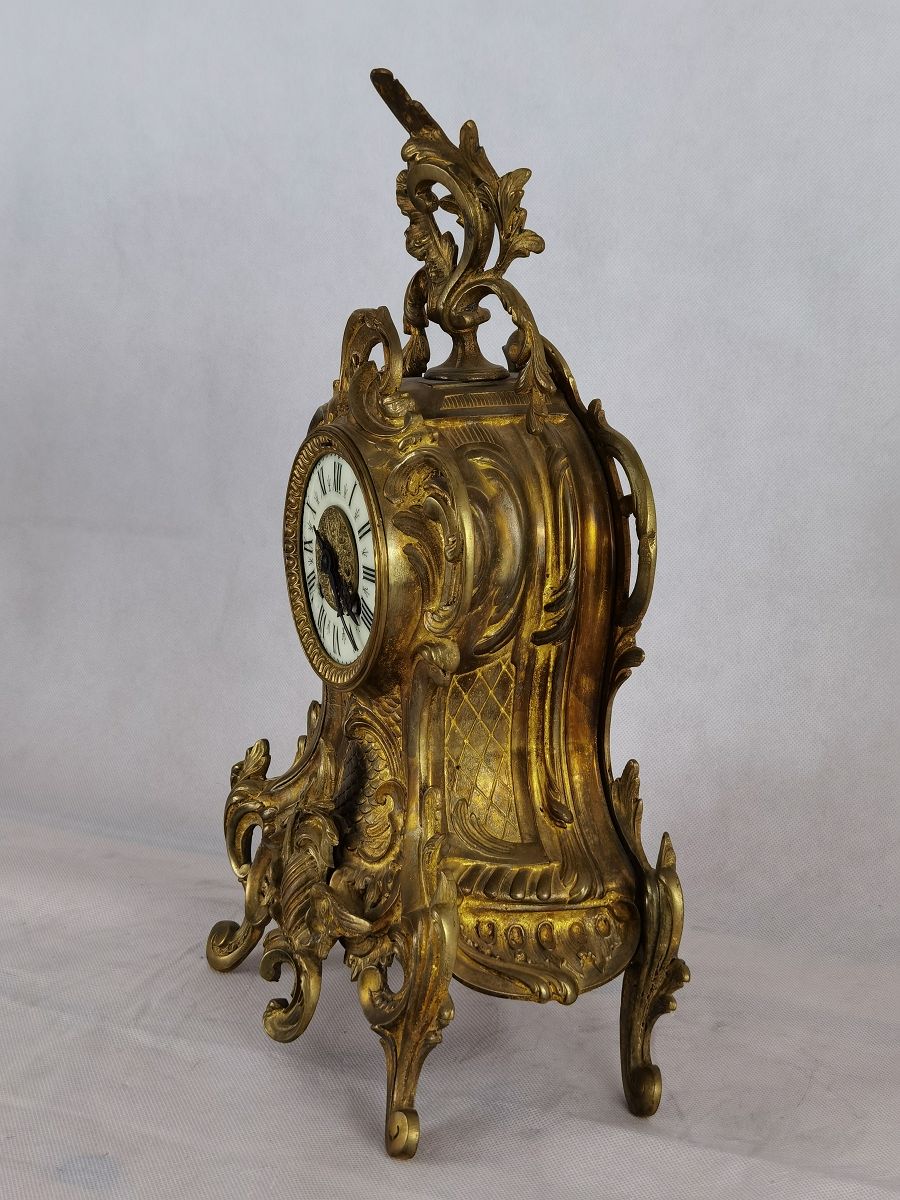 Für XXL Bild hier klicken1 Uhren Spezifikationen Art der Uhr Wanduhr Pendüle Kamin- Uhr Tisch- Uhr Alter und Herkunft Alter Wahrscheinlich um 1855 und die Herkunft ist Frankreich Gehäuse Material Messing Bronze Masse Uhr Höhe ca. 38 cm, Breite ca. 22,5 cm, Tiefe ca. 12 cm Masse Beisteller Höhe ca. 35 cm, Breite ca. 19,5 cm, Tiefe ca. 19,5 cm Material Uhrwerk Messing Eisen Silber Holz Pendel- Aufhängung Pendelfeder Hemmung und Gewichte Ankerhemmung Schlagwerk 1/1 1/2 Schlag auf Glocke Zustand Gehäuse Guter Zustand mit Gebrauchsspuren. Bilder sind Bestandteil der Auktion. Zustand Uhrwerk Guter Zustand mit Gebrauchsspuren. Uhrwerk läuft, jedoch ohne Garantie. Bilder sind Bestandteil der Auktion. |