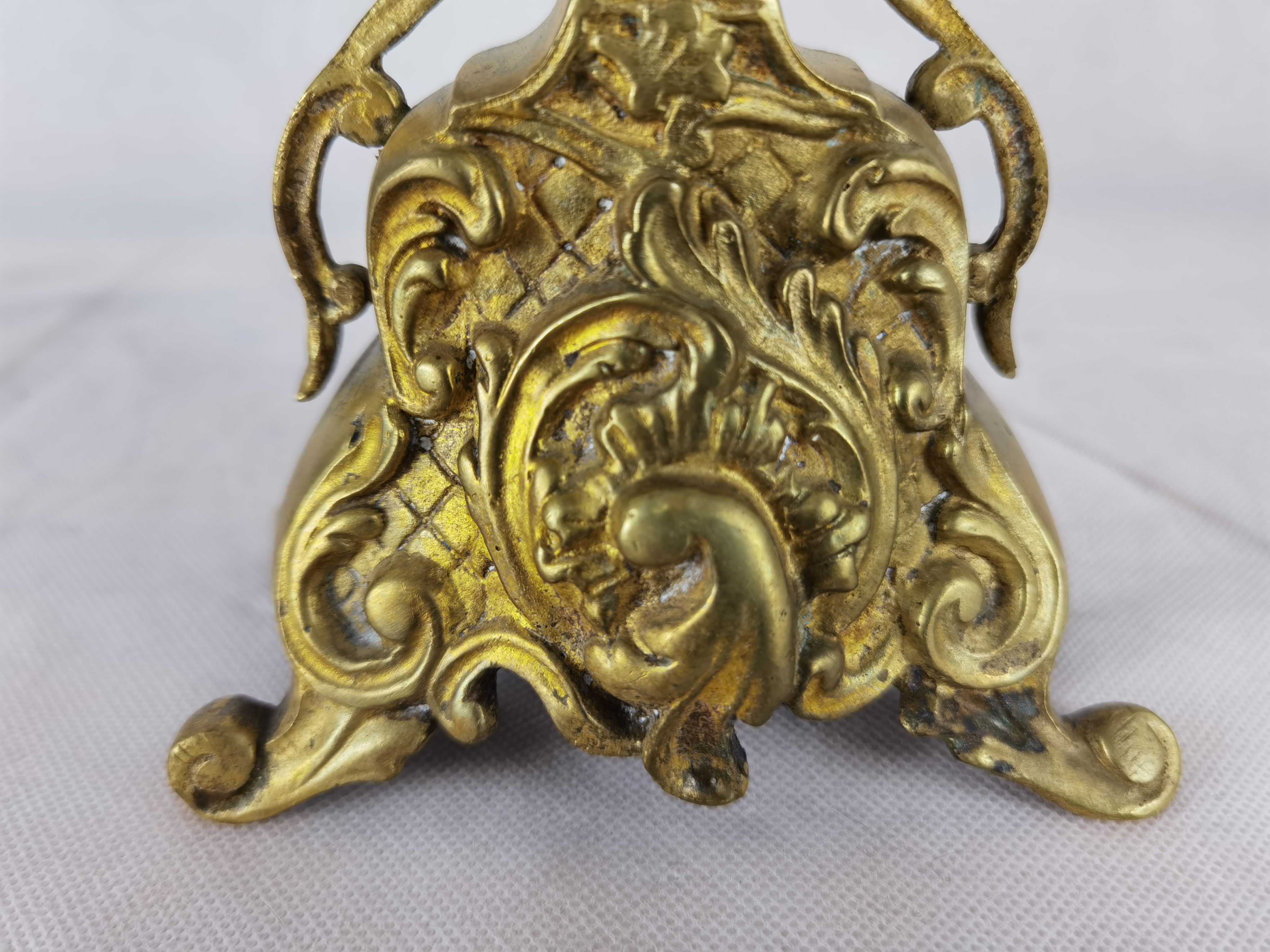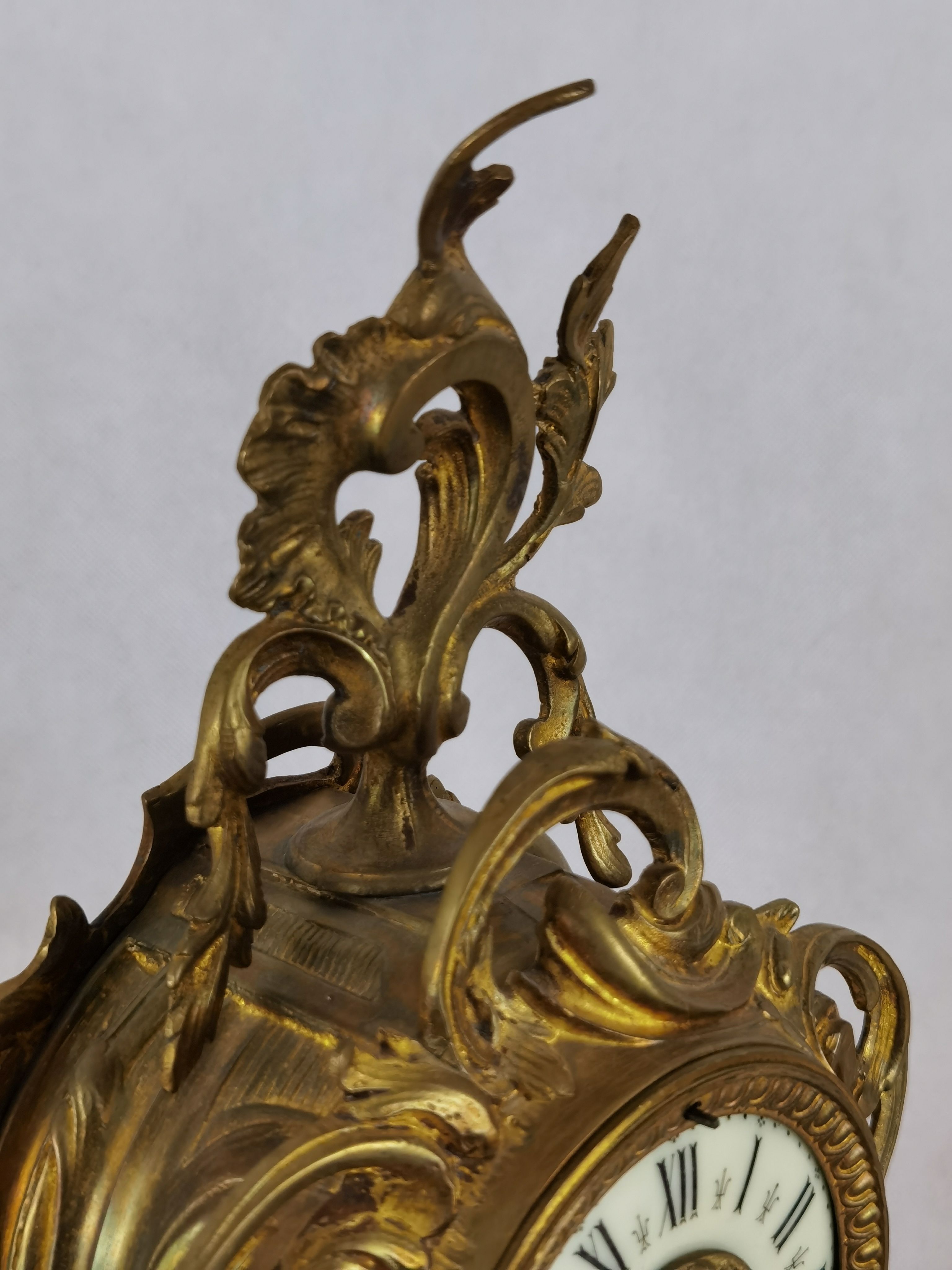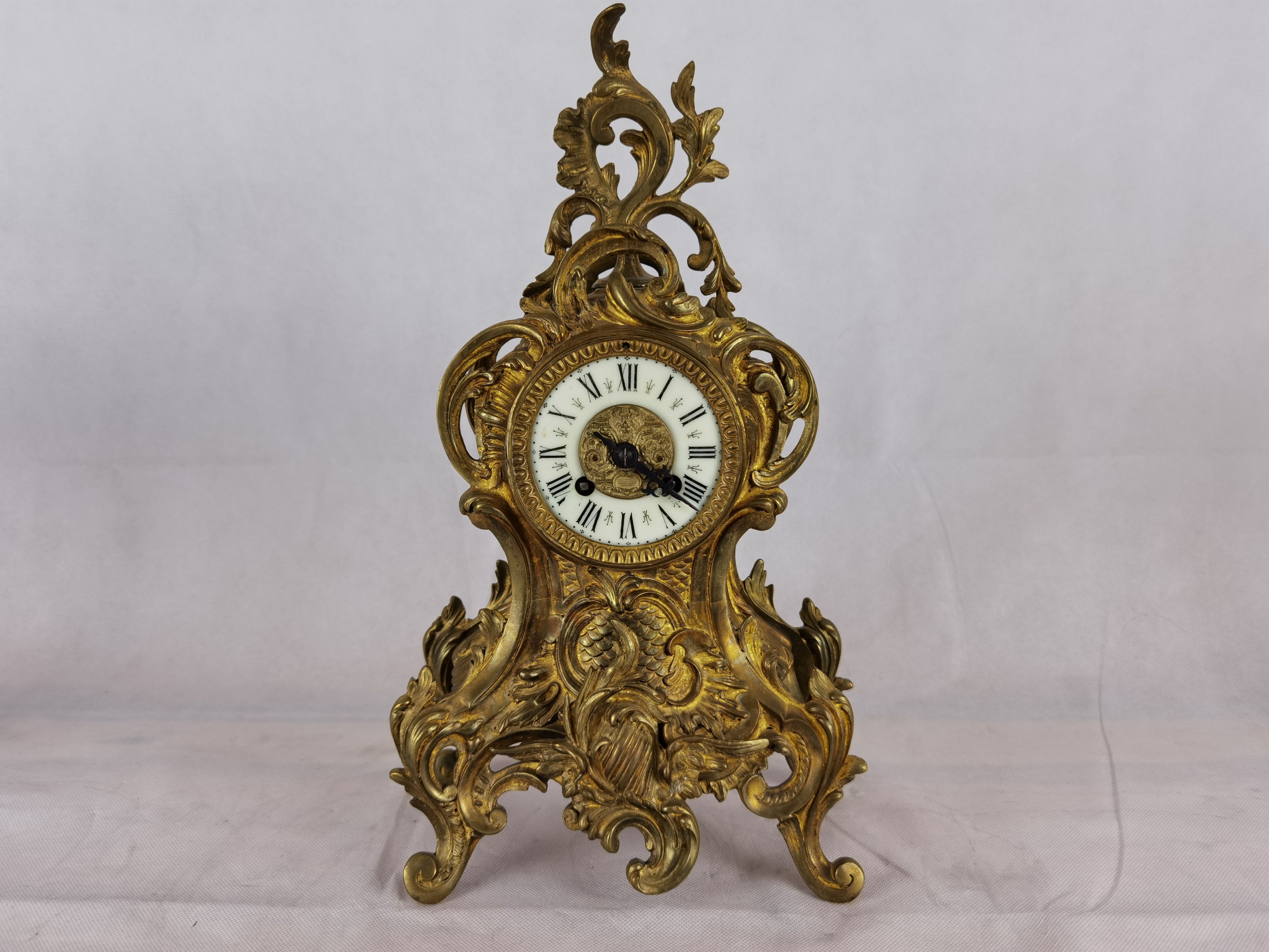 Für XXL Bild hier klicken1 Uhren Spezifikationen Art der Uhr Wanduhr Pendüle Kamin- Uhr Tisch- Uhr Alter und Herkunft Alter Wahrscheinlich um 1855 und die Herkunft ist Frankreich Gehäuse Material Messing Bronze Masse Uhr Höhe ca. 38 cm, Breite ca. 22,5 cm, Tiefe ca. 12 cm Masse Beisteller Höhe ca. 35 cm, Breite ca. 19,5 cm, Tiefe ca. 19,5 cm Material Uhrwerk Messing Eisen Silber Holz Pendel- Aufhängung Pendelfeder Hemmung und Gewichte Ankerhemmung Schlagwerk 1/1 1/2 Schlag auf Glocke Zustand Gehäuse Guter Zustand mit Gebrauchsspuren. Bilder sind Bestandteil der Auktion. Zustand Uhrwerk Guter Zustand mit Gebrauchsspuren. Uhrwerk läuft, jedoch ohne Garantie. Bilder sind Bestandteil der Auktion. |